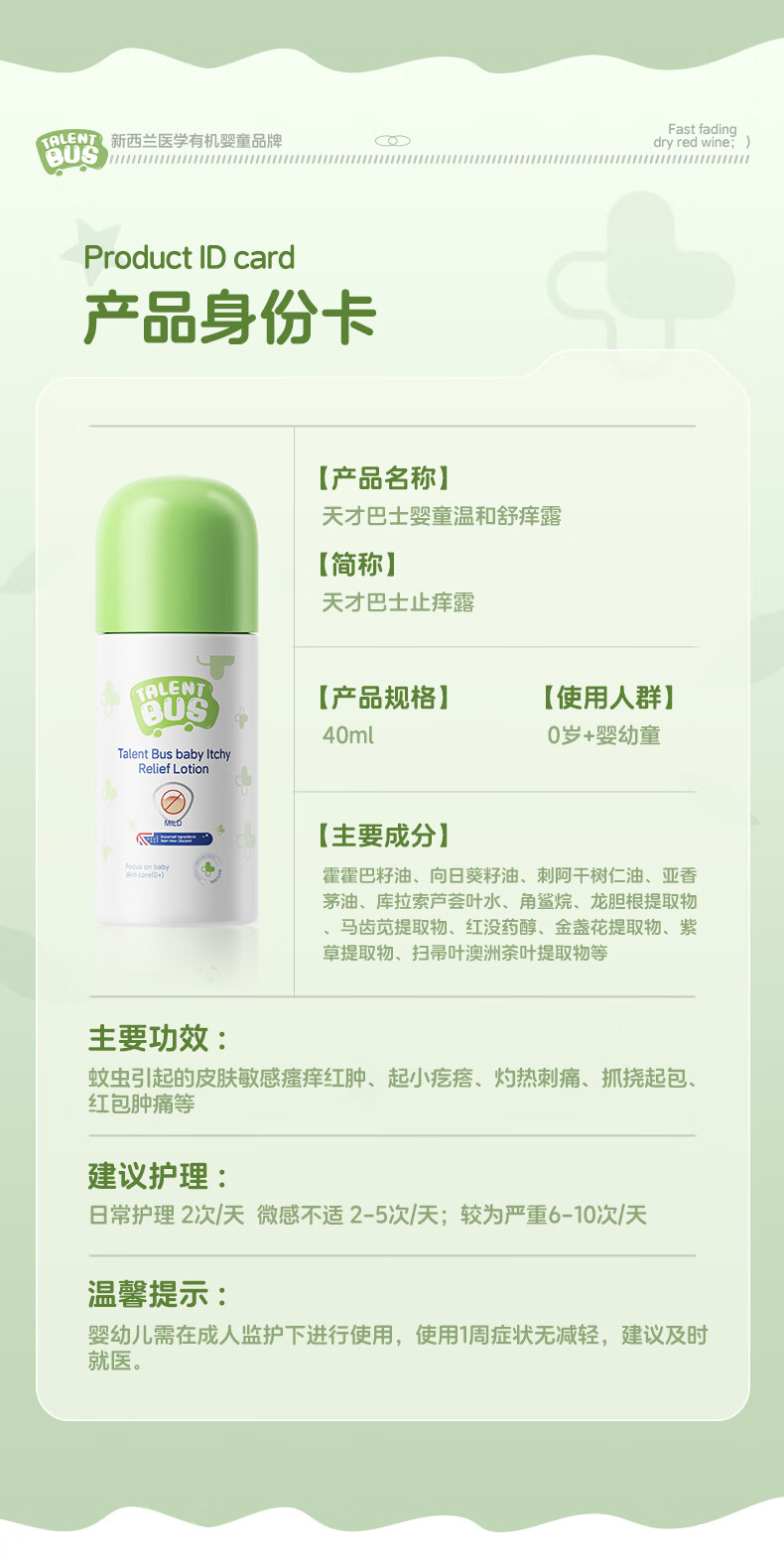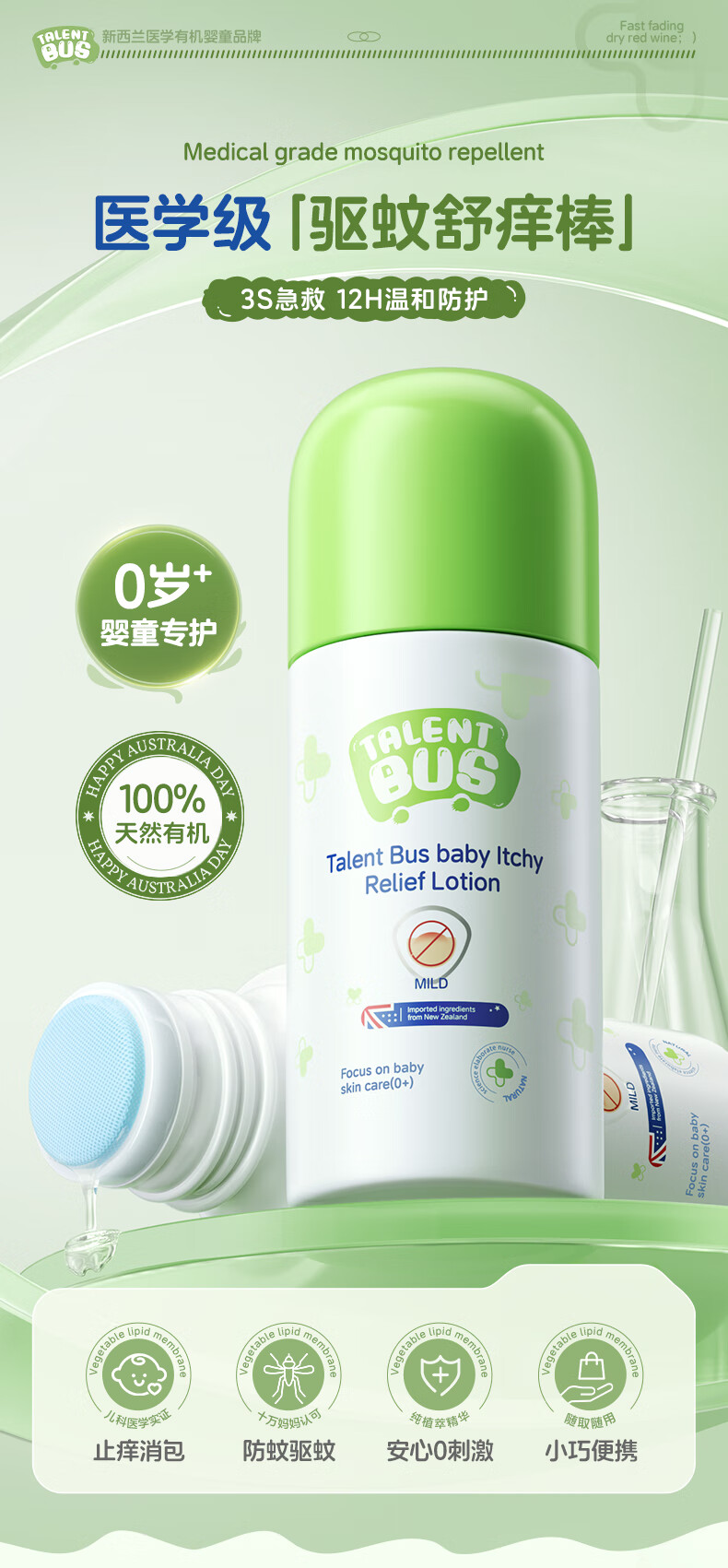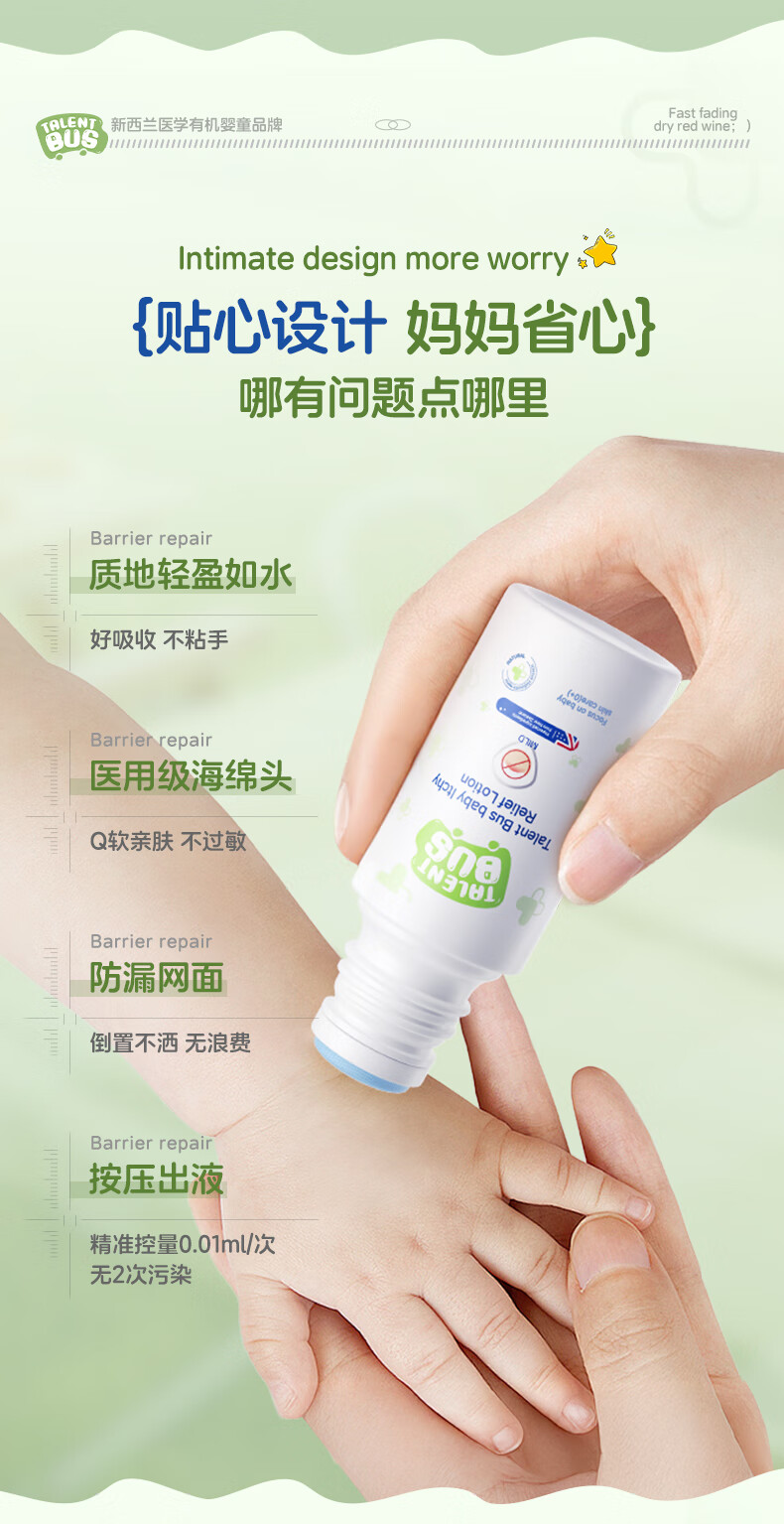 天才巴士 TALENT BUS紫草膏止痒露非滚珠防蚊虫叮咬舒缓消肿母婴专用防基孔肯雅热40ml