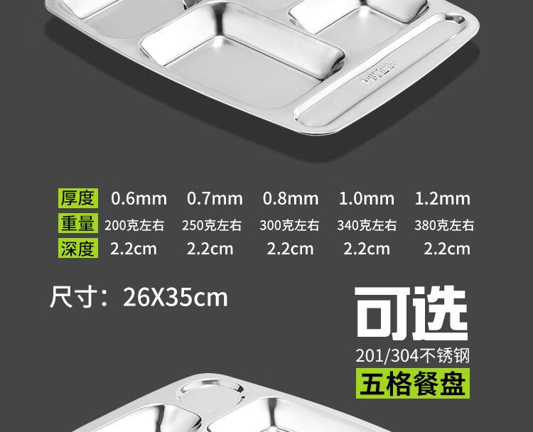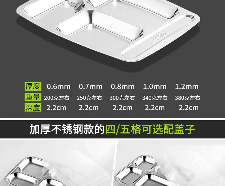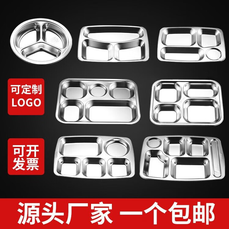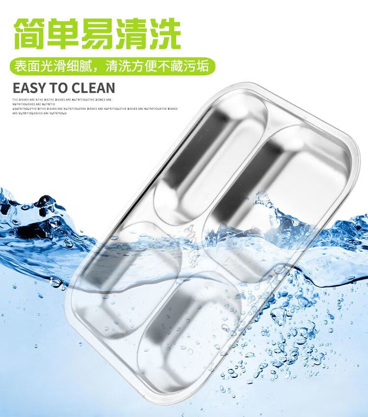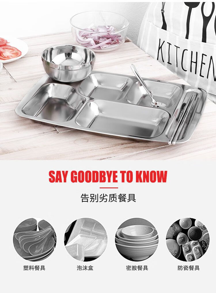 DEATKN【加厚不锈钢食堂快餐盘】分格餐盘儿童幼儿园学生成人快餐盘餐具 小三格加厚120g