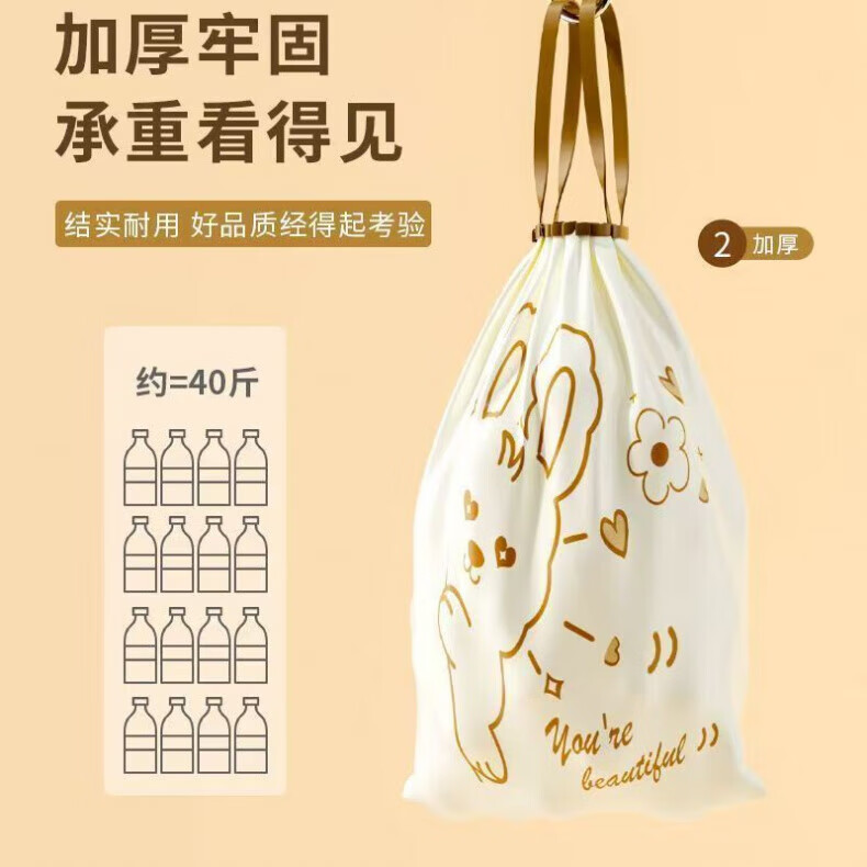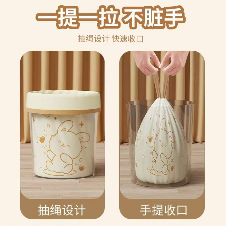 DEATKN德国抽绳式兔子印花抽绳垃圾袋加厚手提厨房宿舍大号塑料袋提拉收 1卷-偷看兔抽绳款