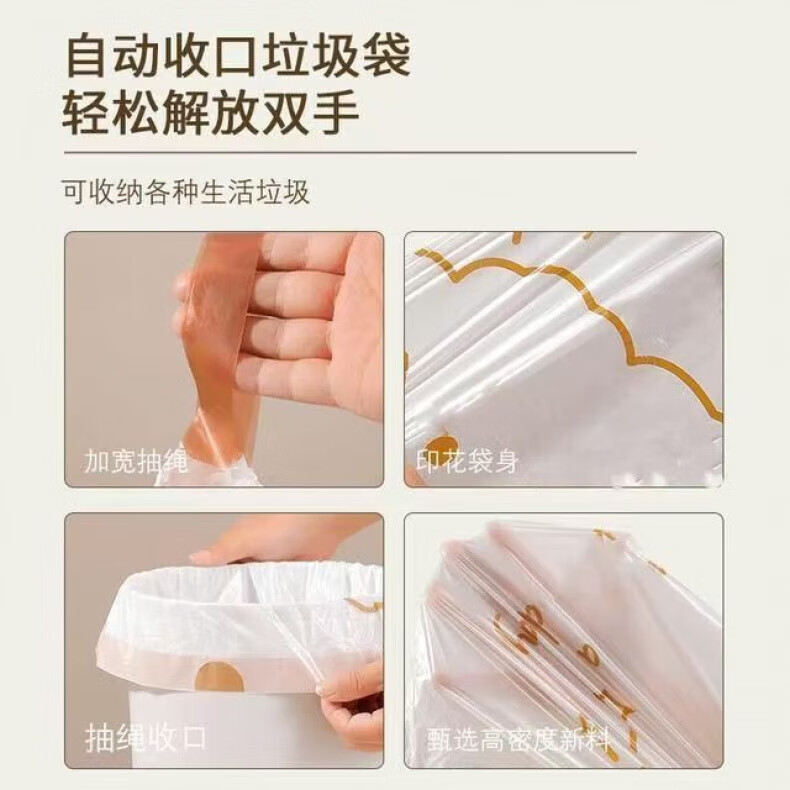 e洁 自动收口垃圾袋加厚家用手提式不脏手 45cm*50cm 1.0丝3卷共168只 白色