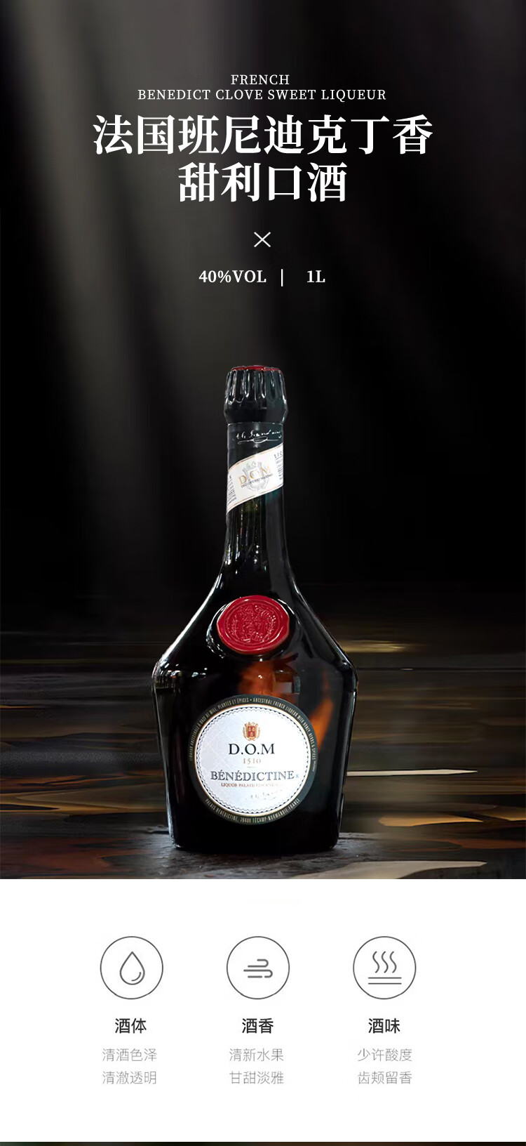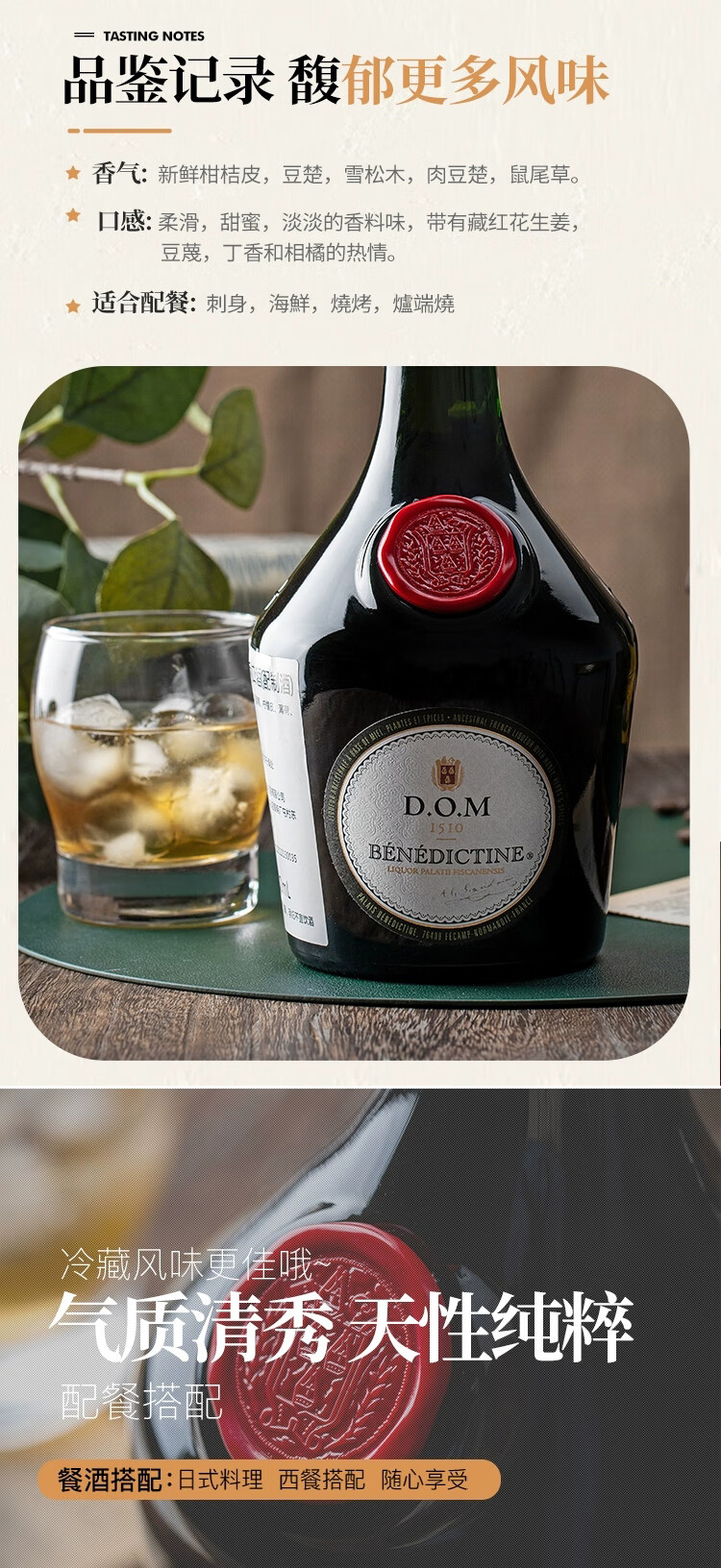 廊酒法国班尼迪克丁香甜利口酒40%vol 1L