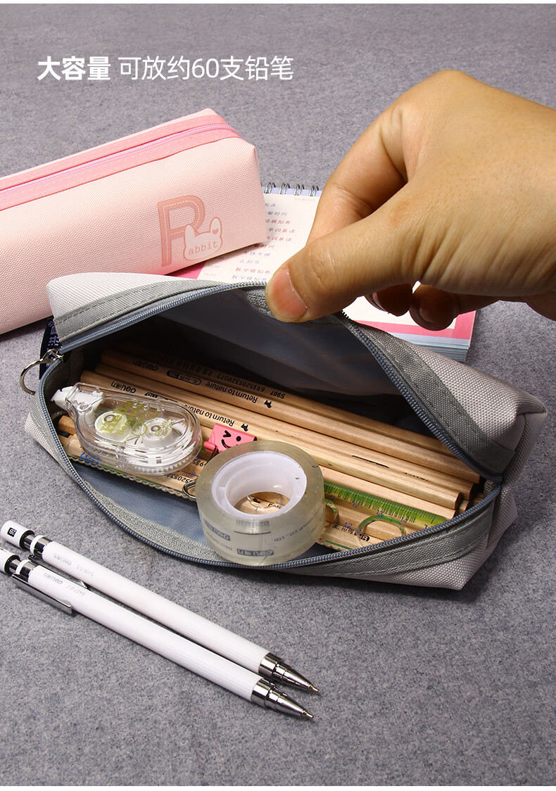 DEATKN日本笔袋大容量女高中生文具盒铅笔盒帆布韩版ins日系简约多功能初中生男孩子小学生文具袋铅笔袋 7964蓝色