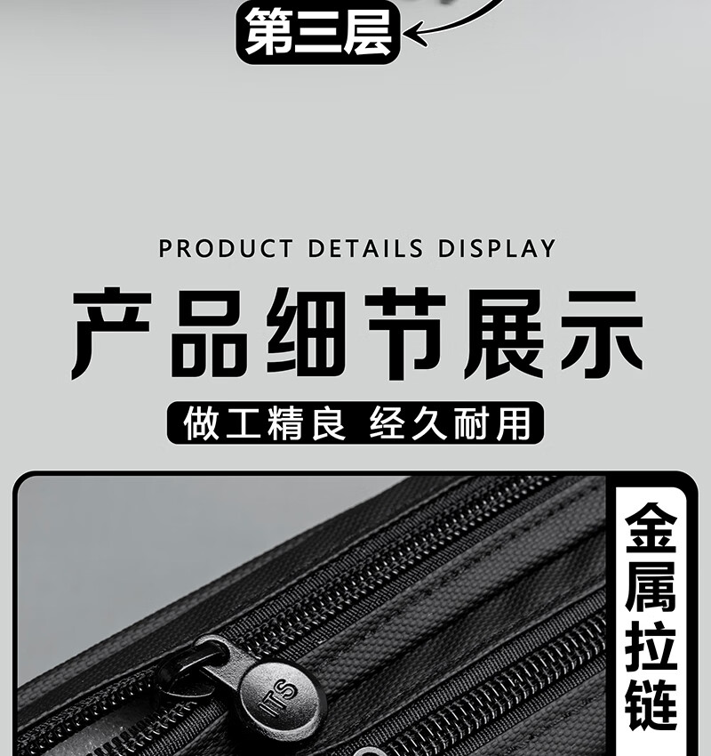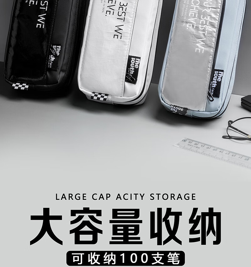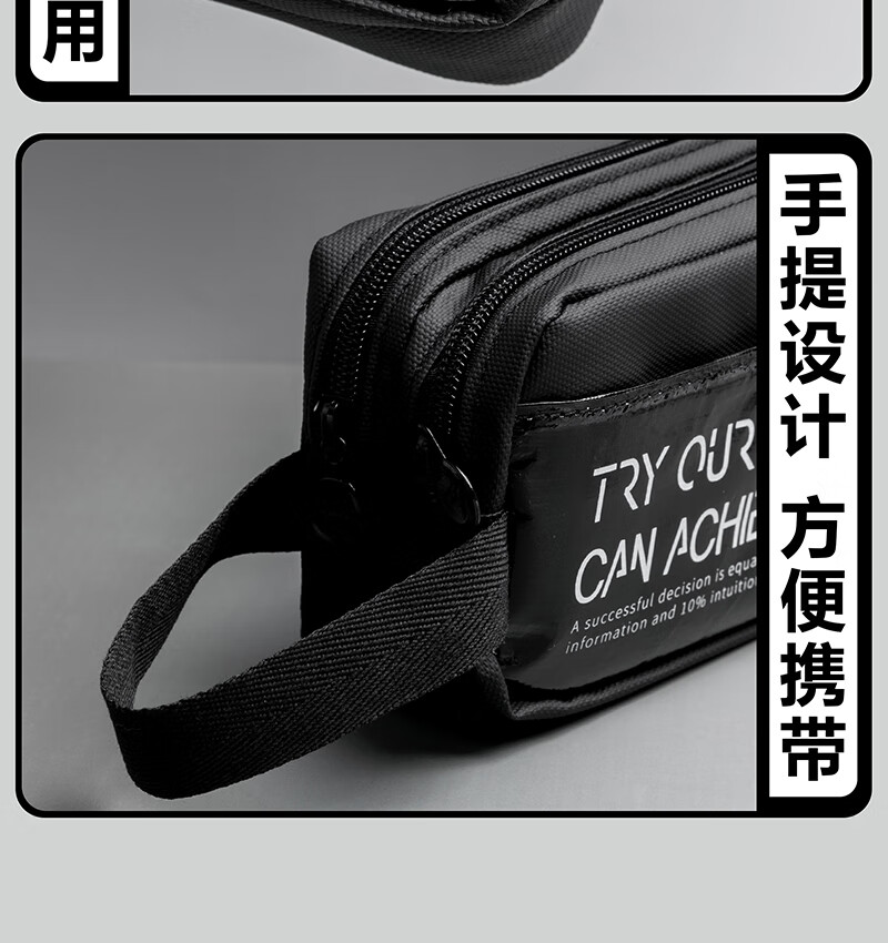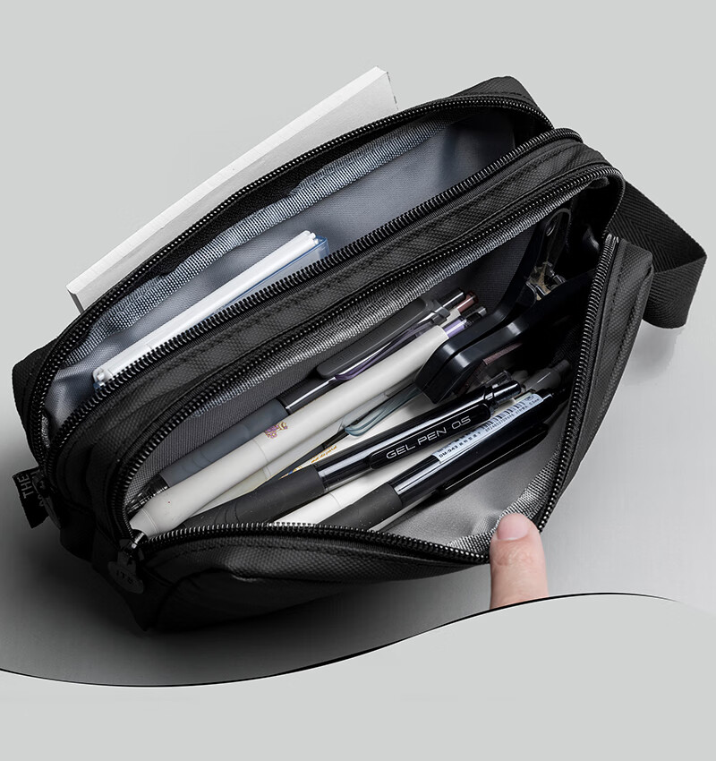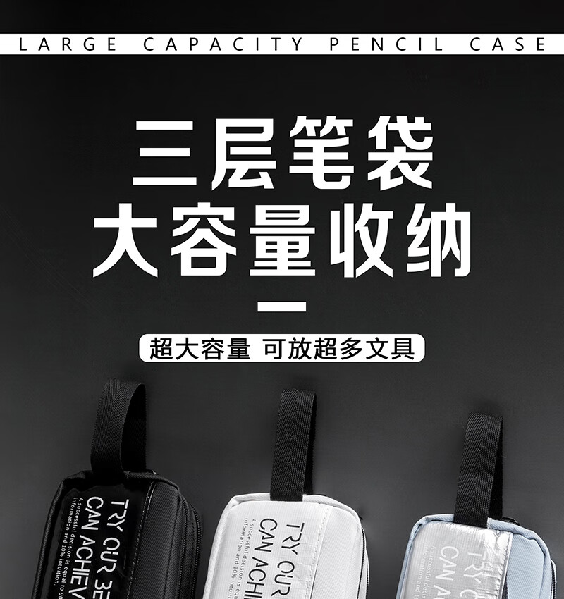 DEATKN日本帅气大容量笔袋文具盒男女孩款2025新款小学生铅笔盒黑科技网红帆布初中高中女生高颜值ins风 励志酷黑【三层大容量】