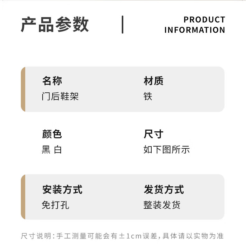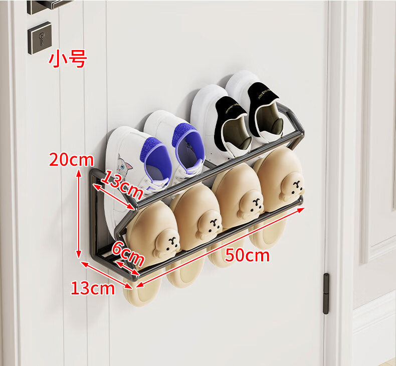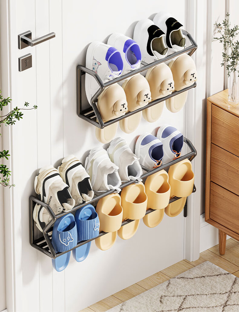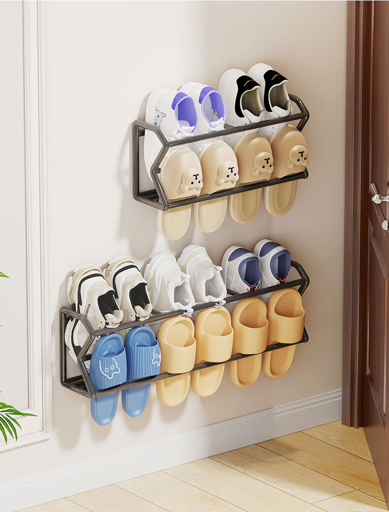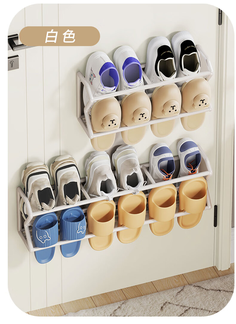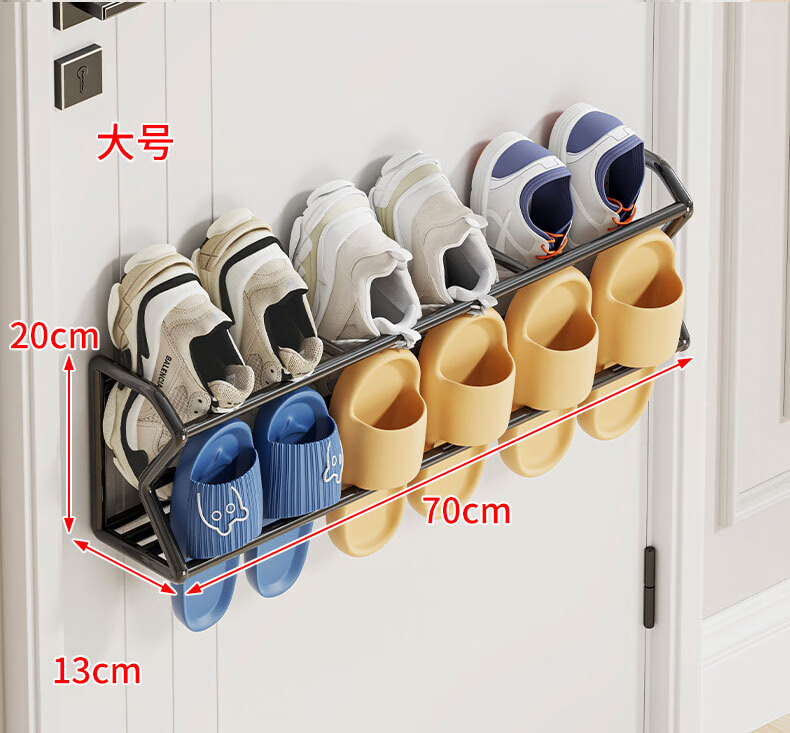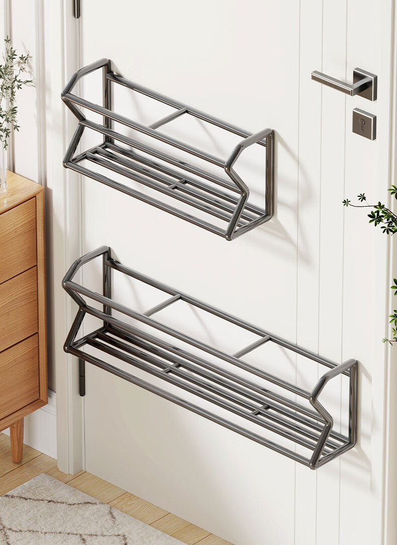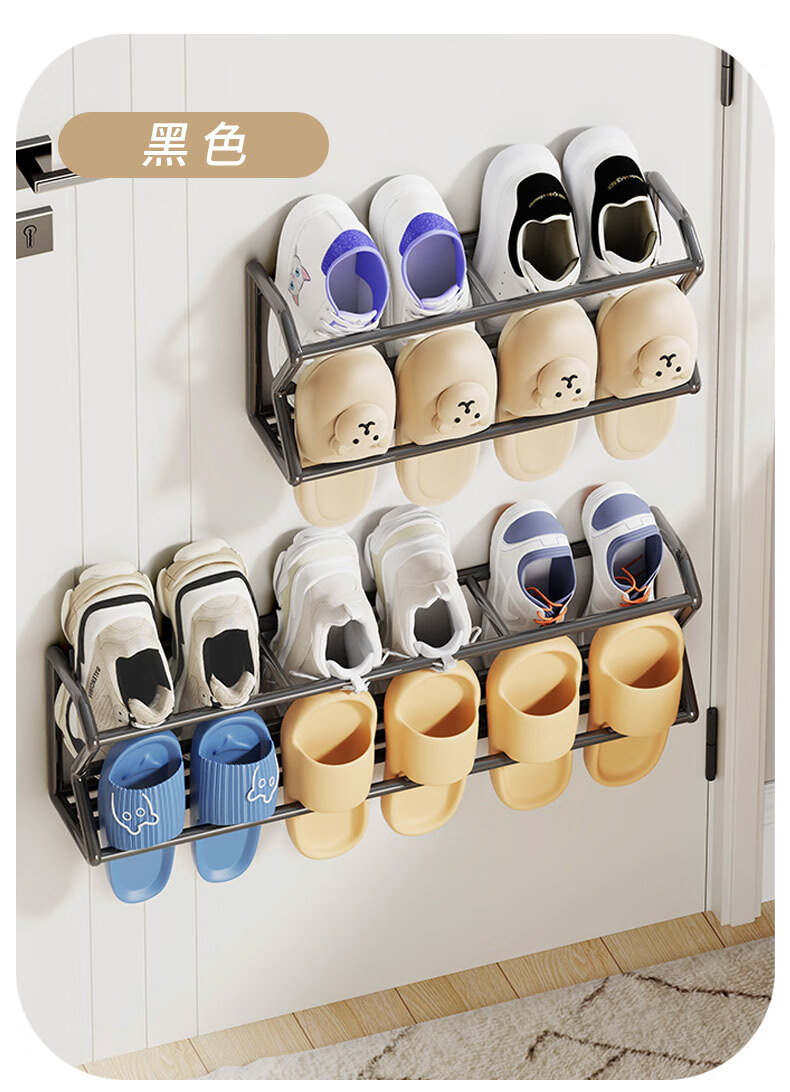 木格格免打孔门后鞋架家用门口卫生间浴室壁挂式拖鞋架简易鞋子收纳神器 黑色大号鞋架