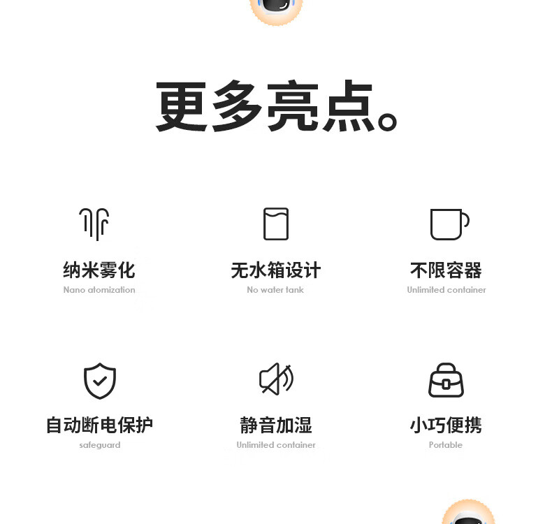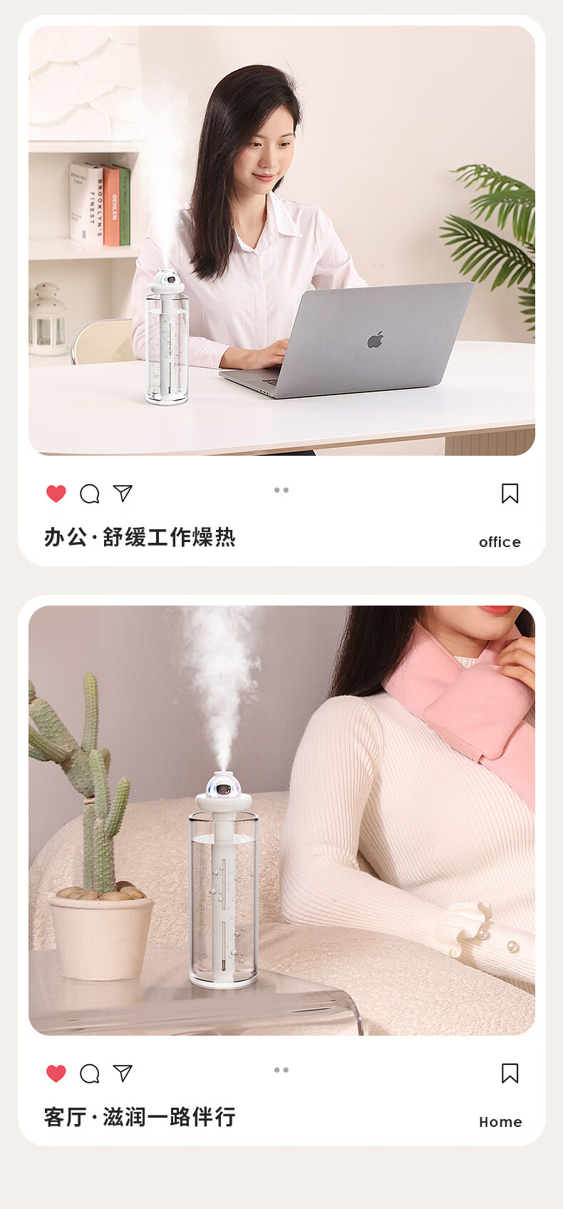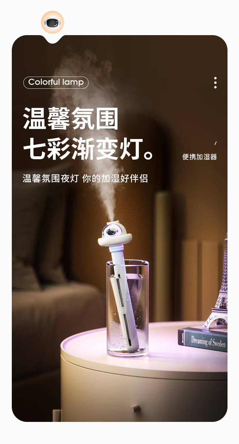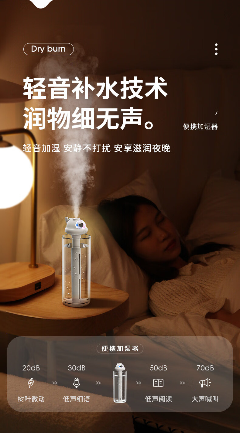 贺物加湿器迷你卧室婴儿家用便携小型无线空气低噪加湿桌面喷雾补水床头大容量加湿 【充电款-白色】缓解空气干燥