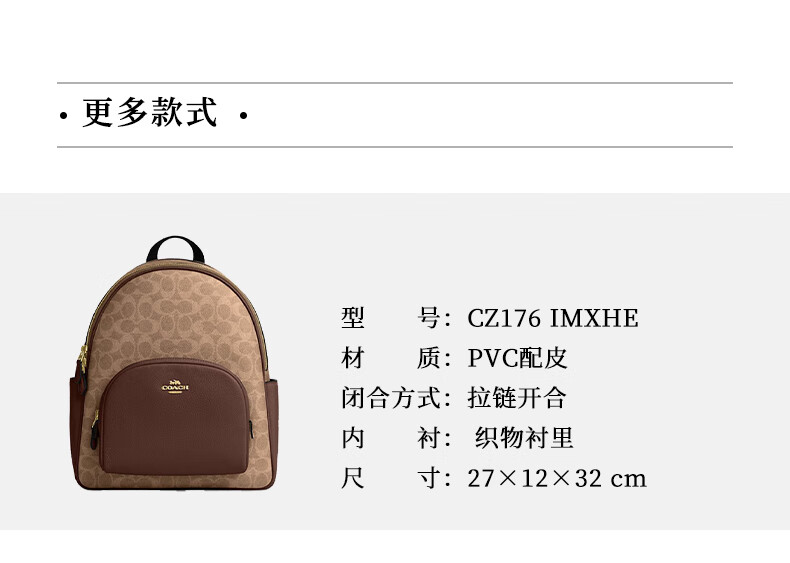 蔻驰(COACH)女包 COURT 双肩包书包背包 CZ176IMXAQ 胡桃木色/黑色生日礼物