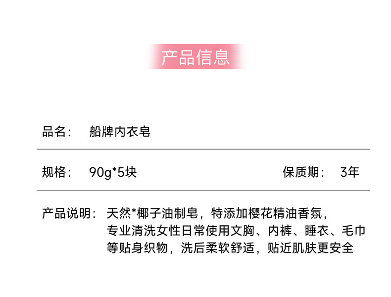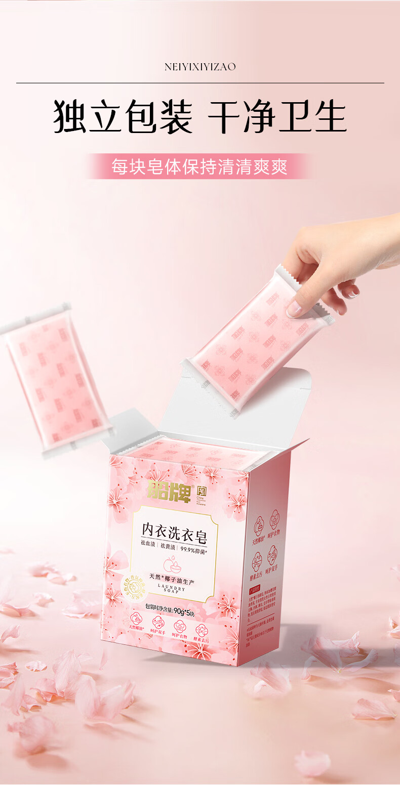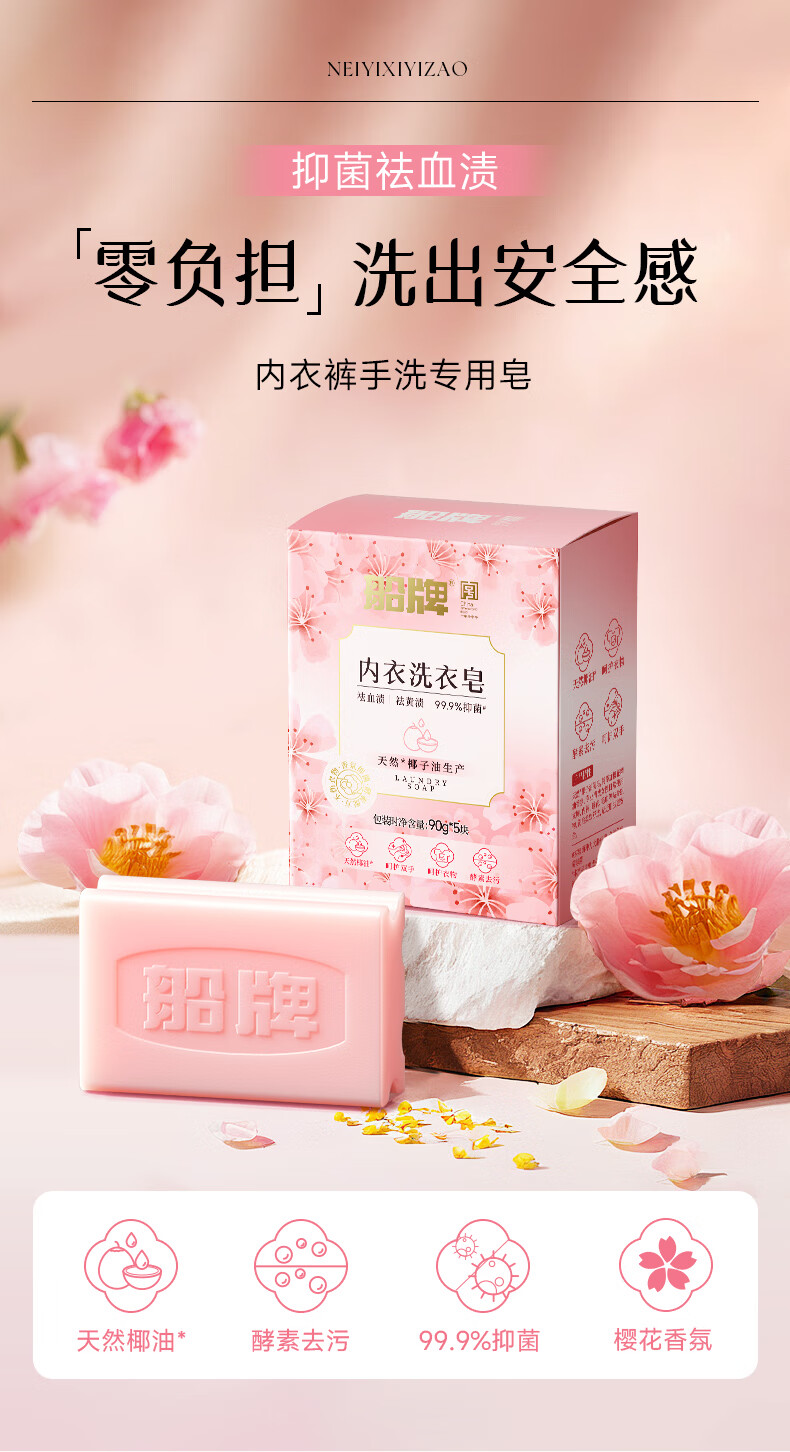 船牌内衣皂女士内裤专用90g*5块 除螨抑菌去黄去血渍内衣洗衣皂肥皂 【90*5块】