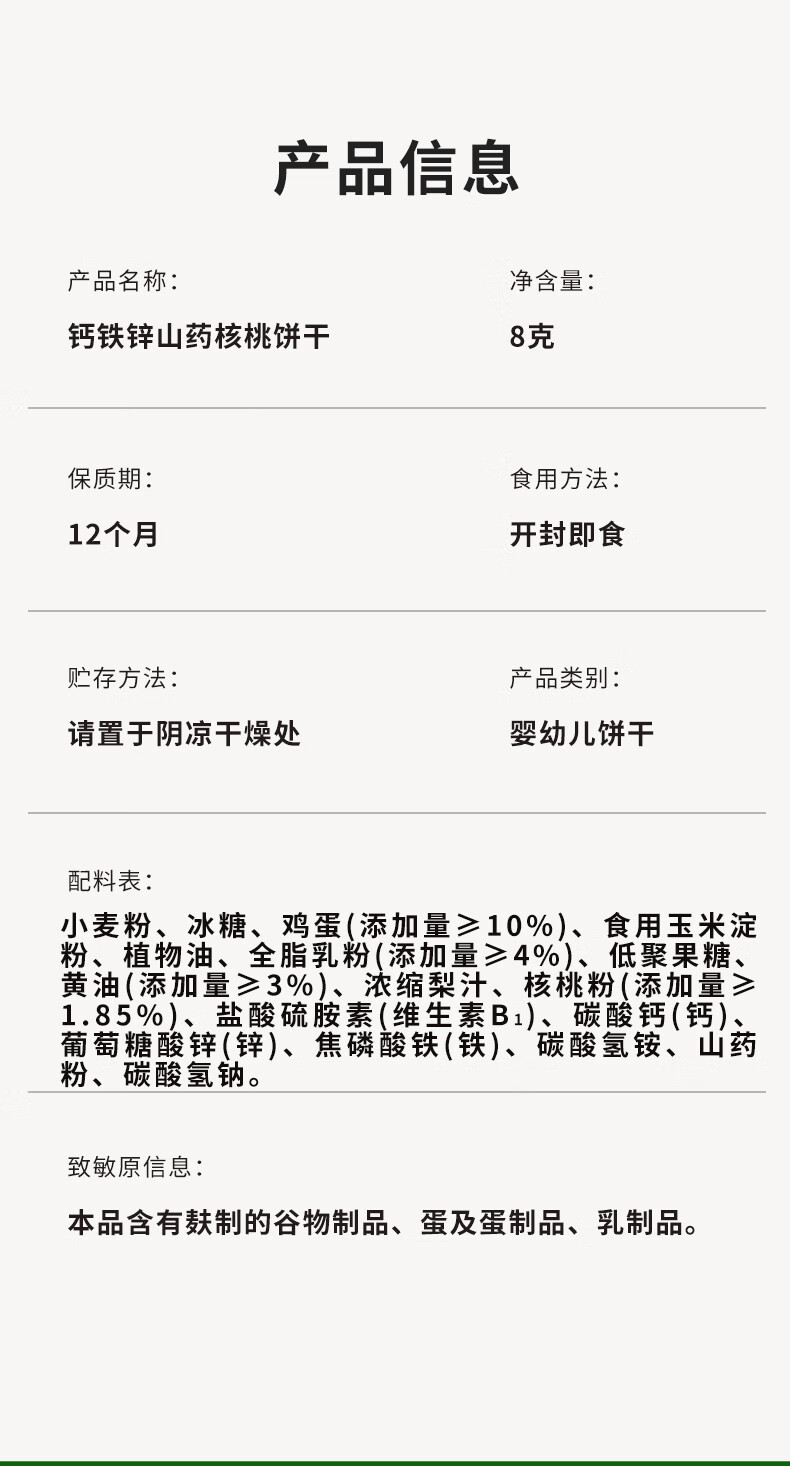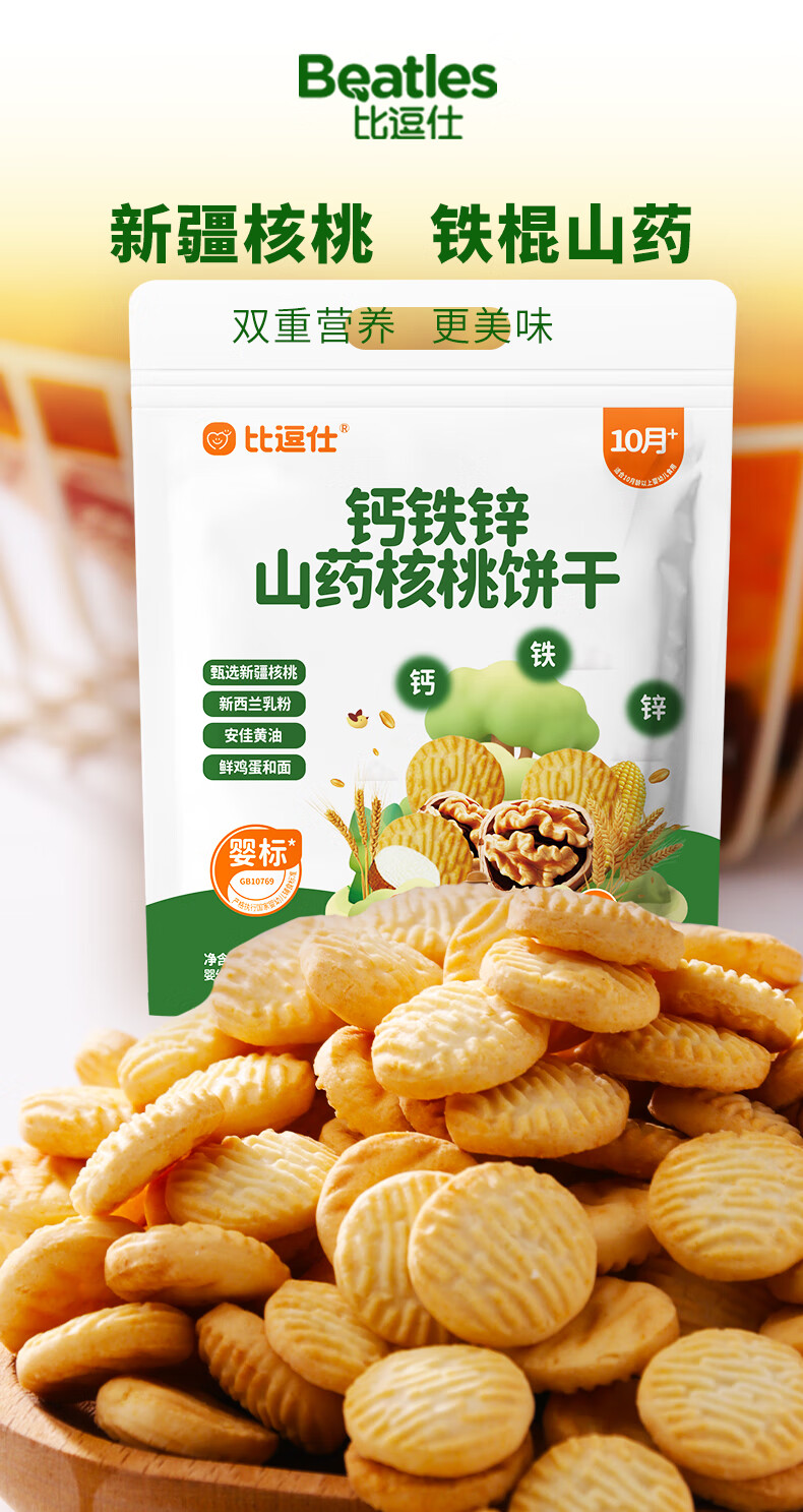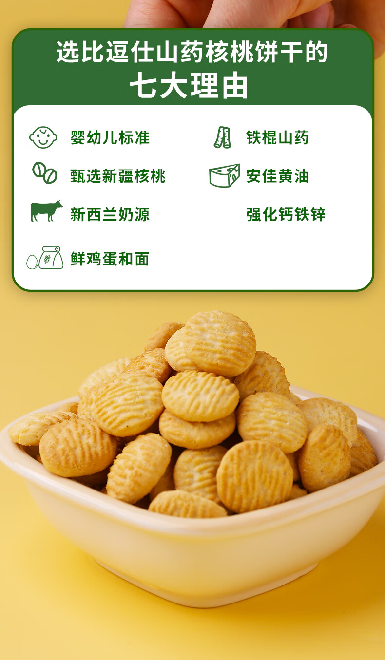 比逗仕钙铁锌山药核桃饼干维生素B1婴幼儿宝宝辅食儿童零食10月+ 性价比8g*40包