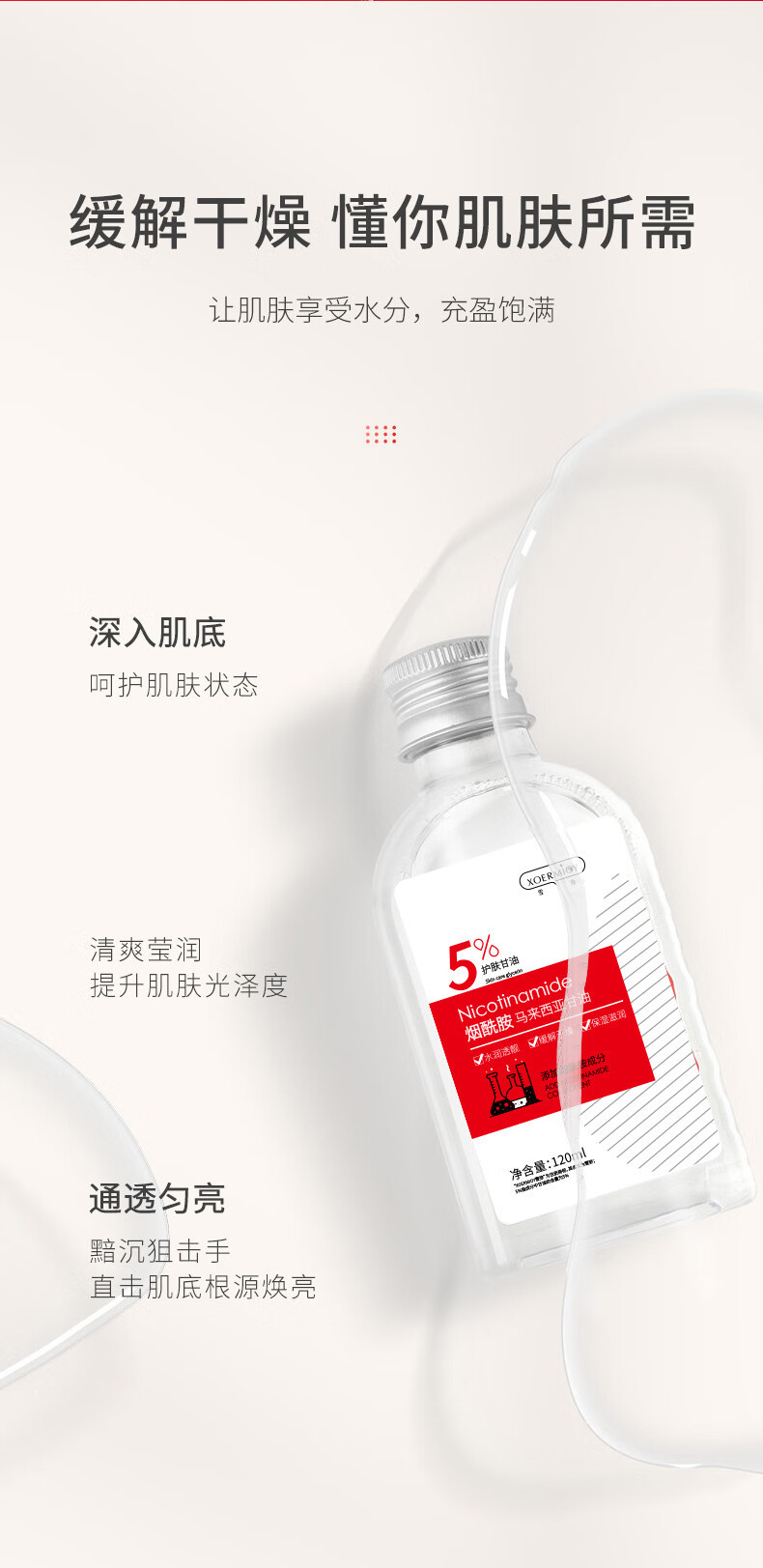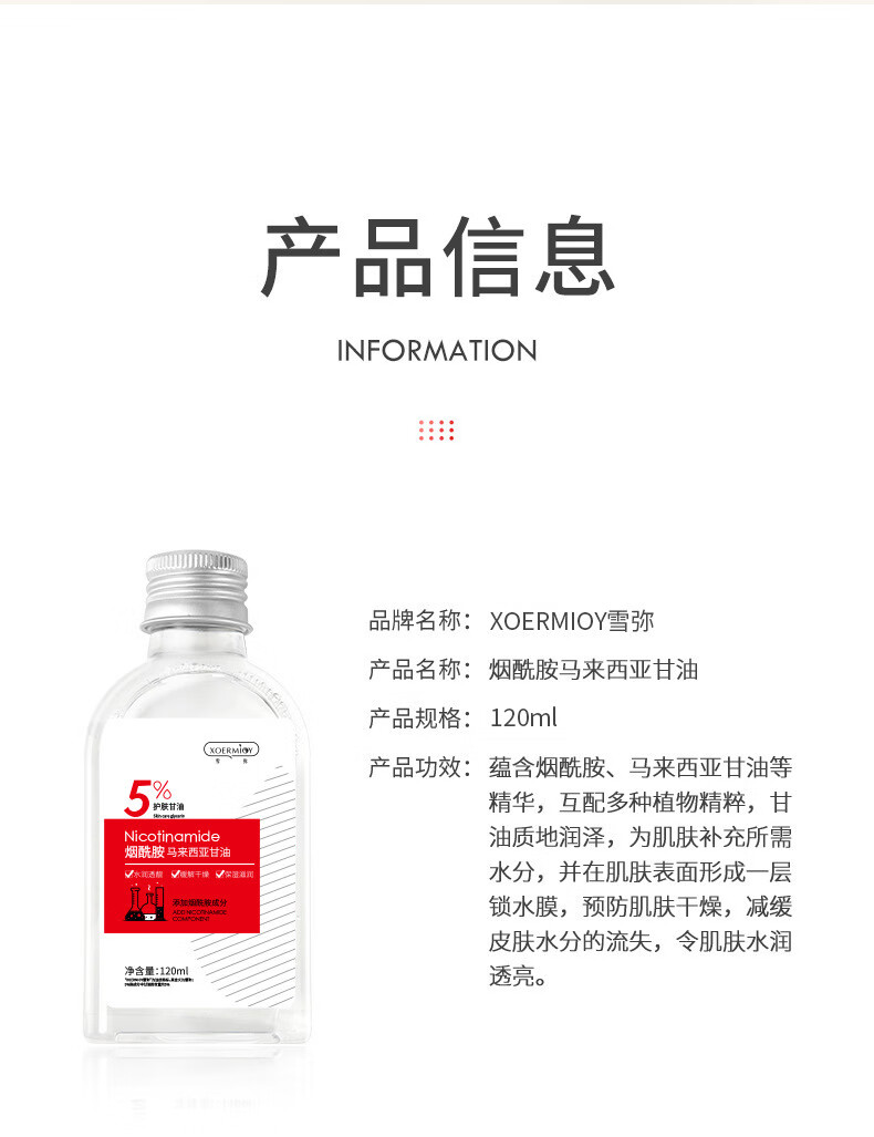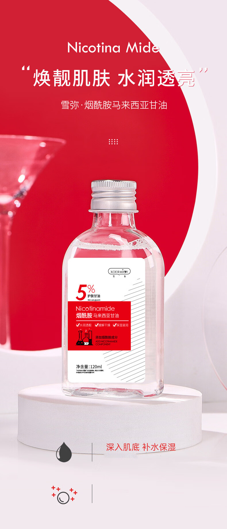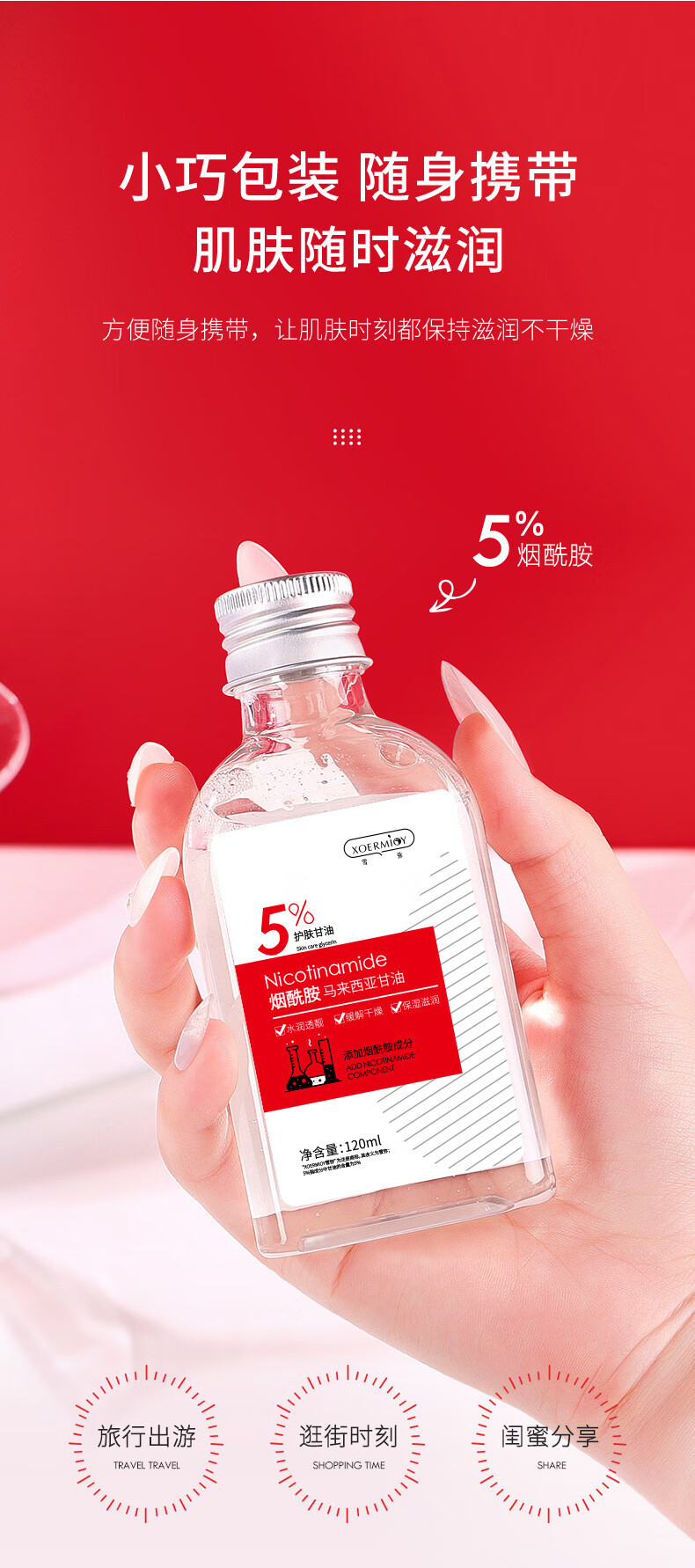 GINBI烟酰胺马来西亚甘油精华油滋润保湿男女全身可用防干裂粗糙不油腻 马来西亚甘油120mlx3瓶