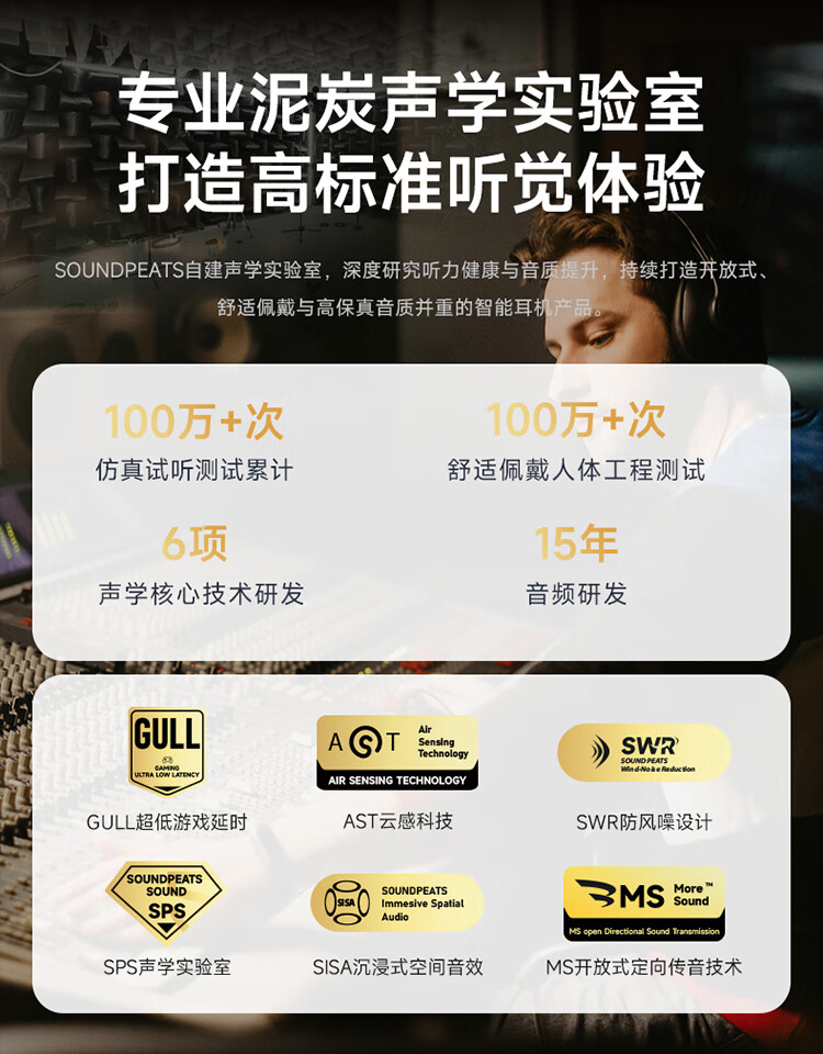 泥炭(SoundPEATS)C30 降噪蓝牙耳机 通勤必备无线耳机 智能感知佩戴 CCAW超轻音圈金标认证音质蓝牙耳机