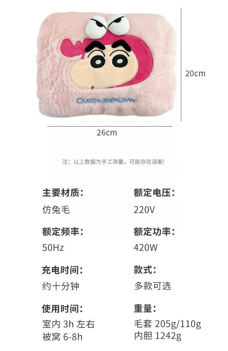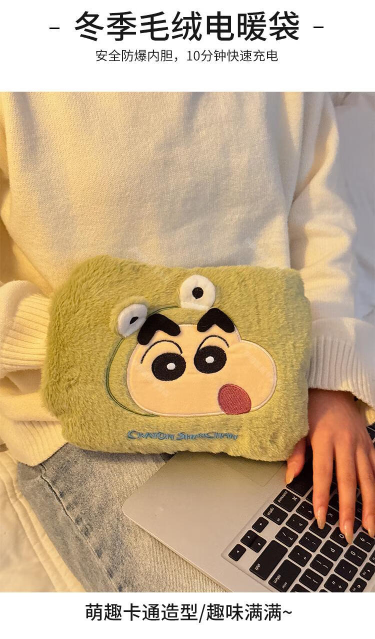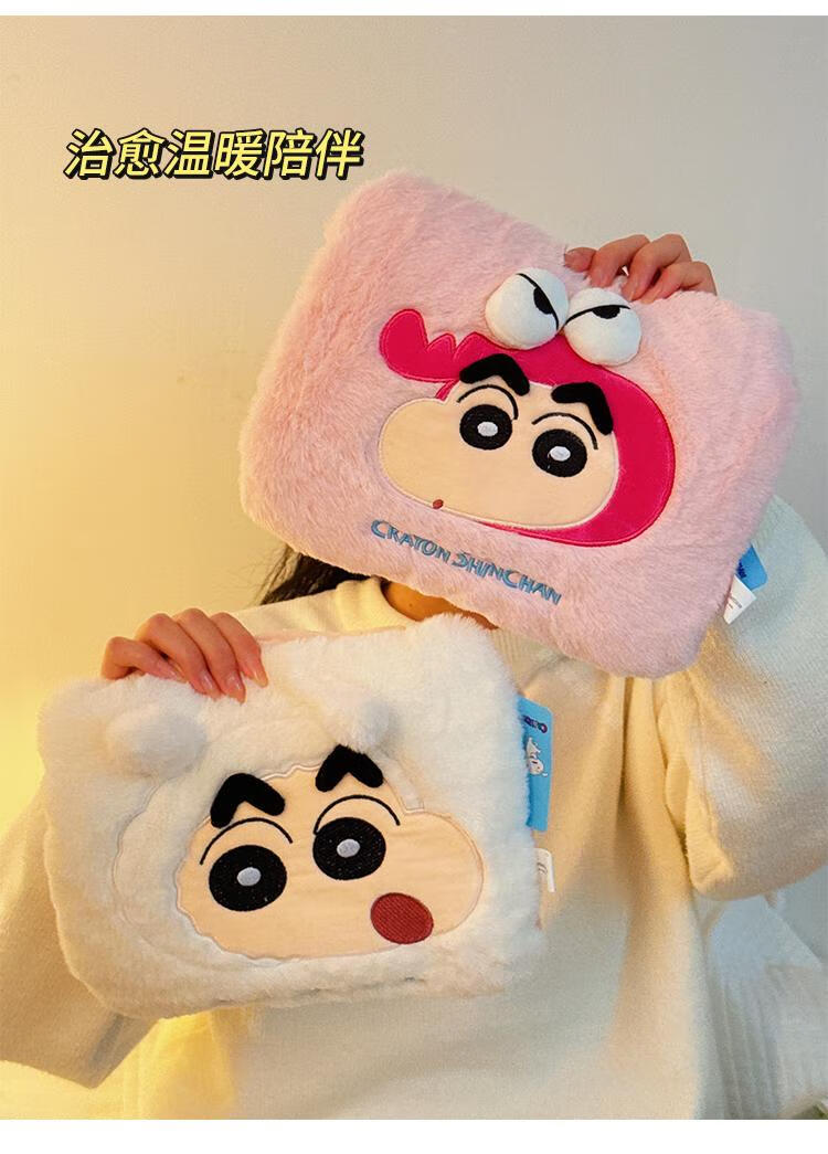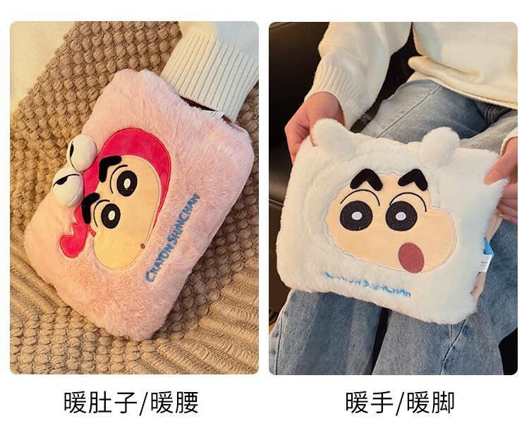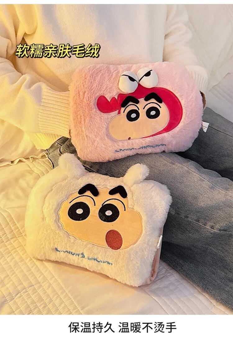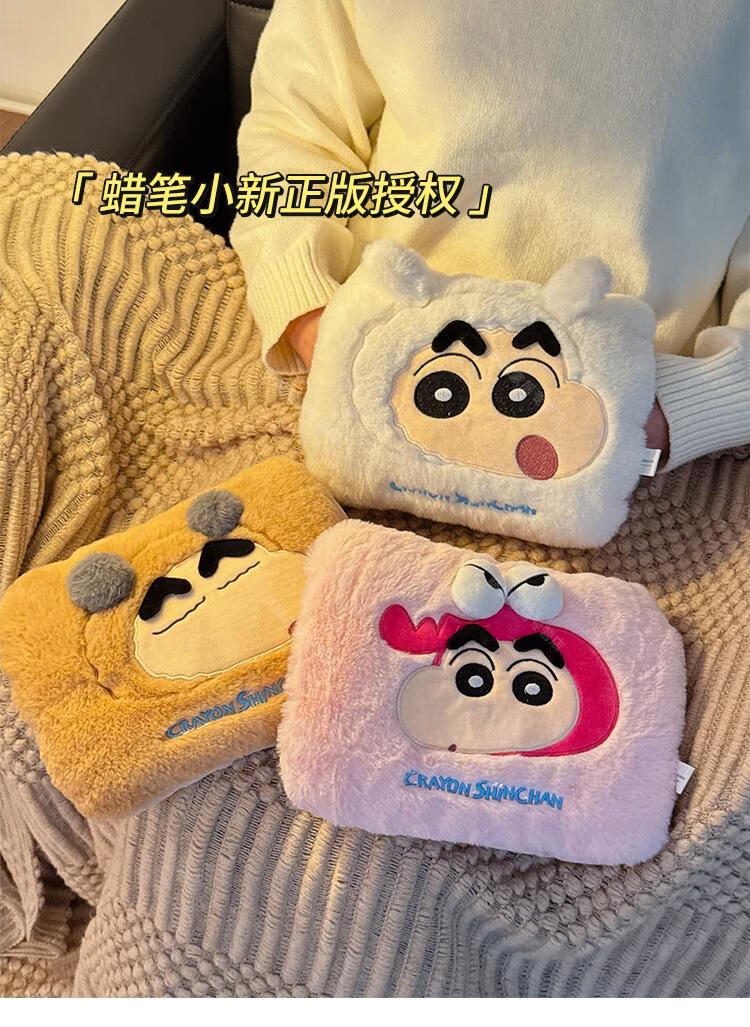 WCZ高端蜡笔小新热水袋充电款暖手宝冬季女生用暖宝宝被窝专用暖水袋 蜡笔小新-卡其色