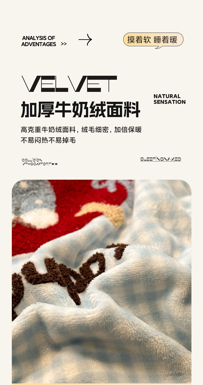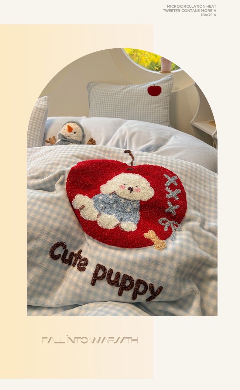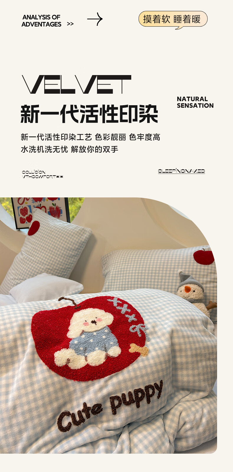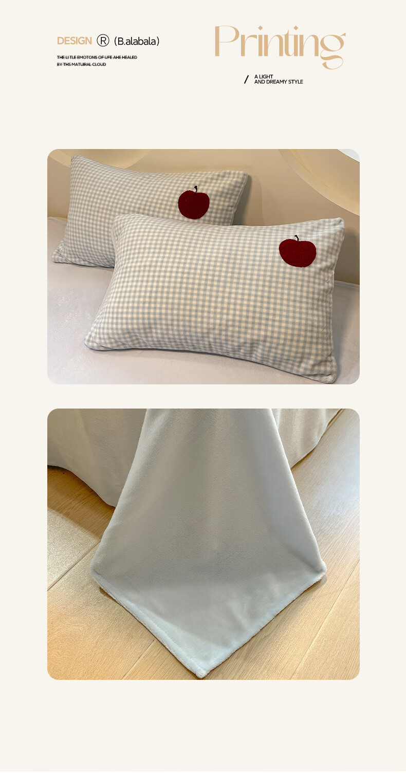 苏萱秋冬季苹果狗毛巾绣牛奶绒四件套加厚珊瑚绒面被套三件套床上床品 蓝格苹果狗 1.8m 床单款 四件套-被套200x230cm