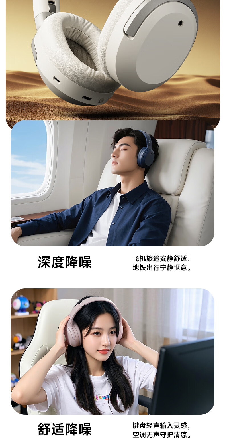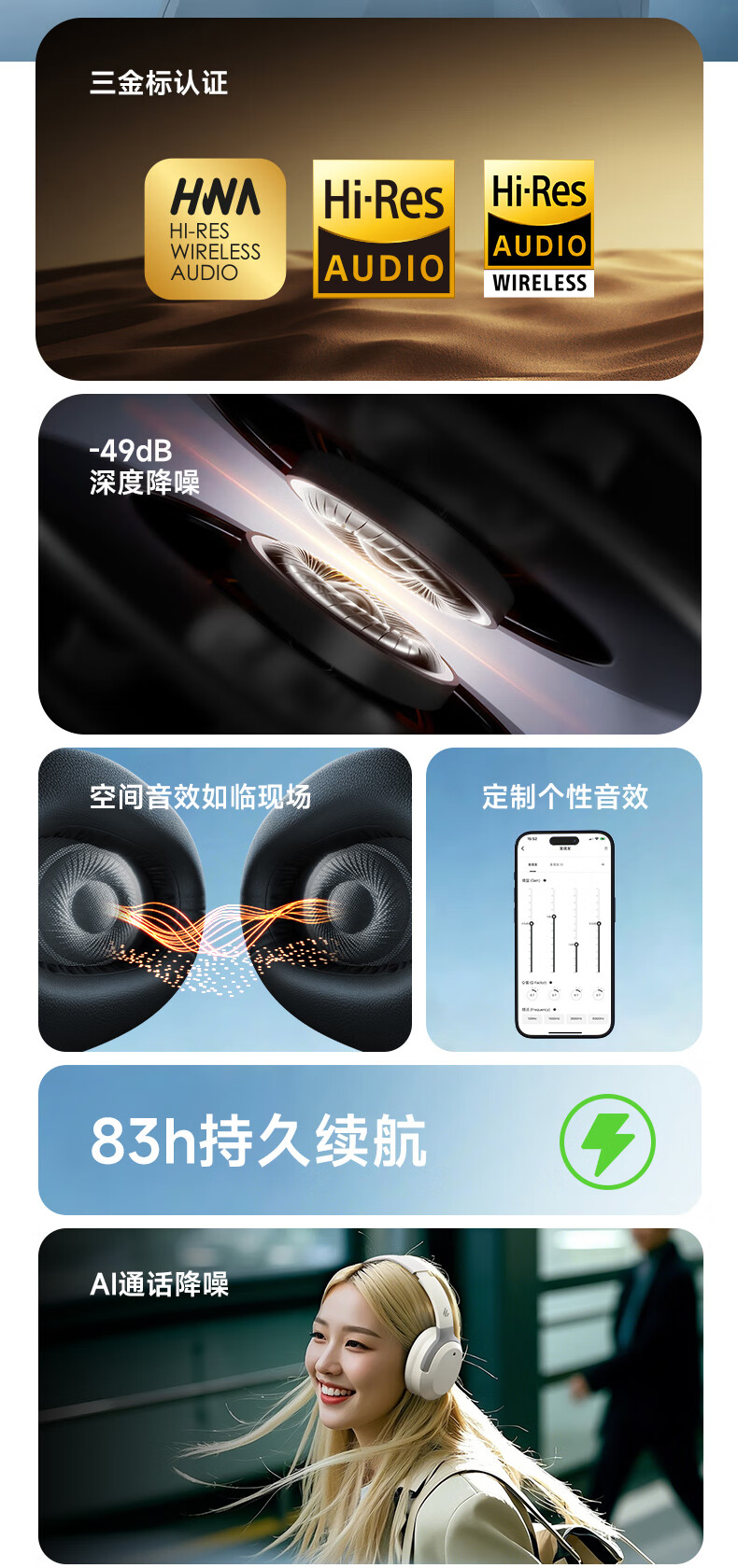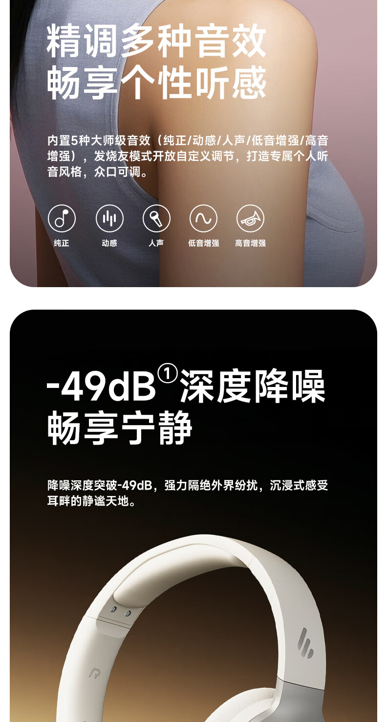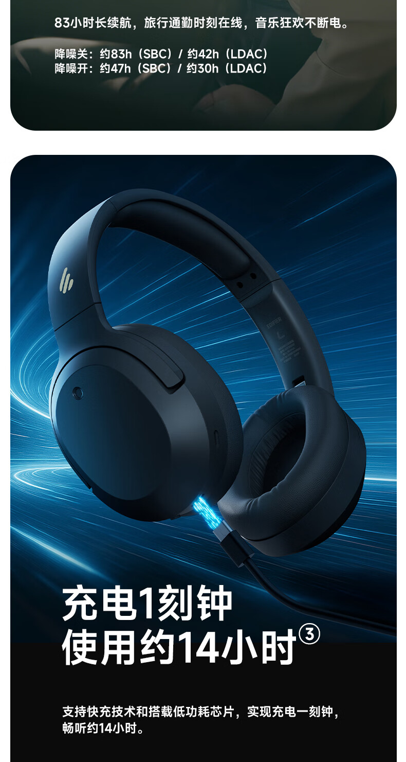 漫步者(EDIFIER)W820NB三金标版 头戴式主动降噪蓝牙耳机 手机电脑笔记本耳机 83小时续航 皓月银