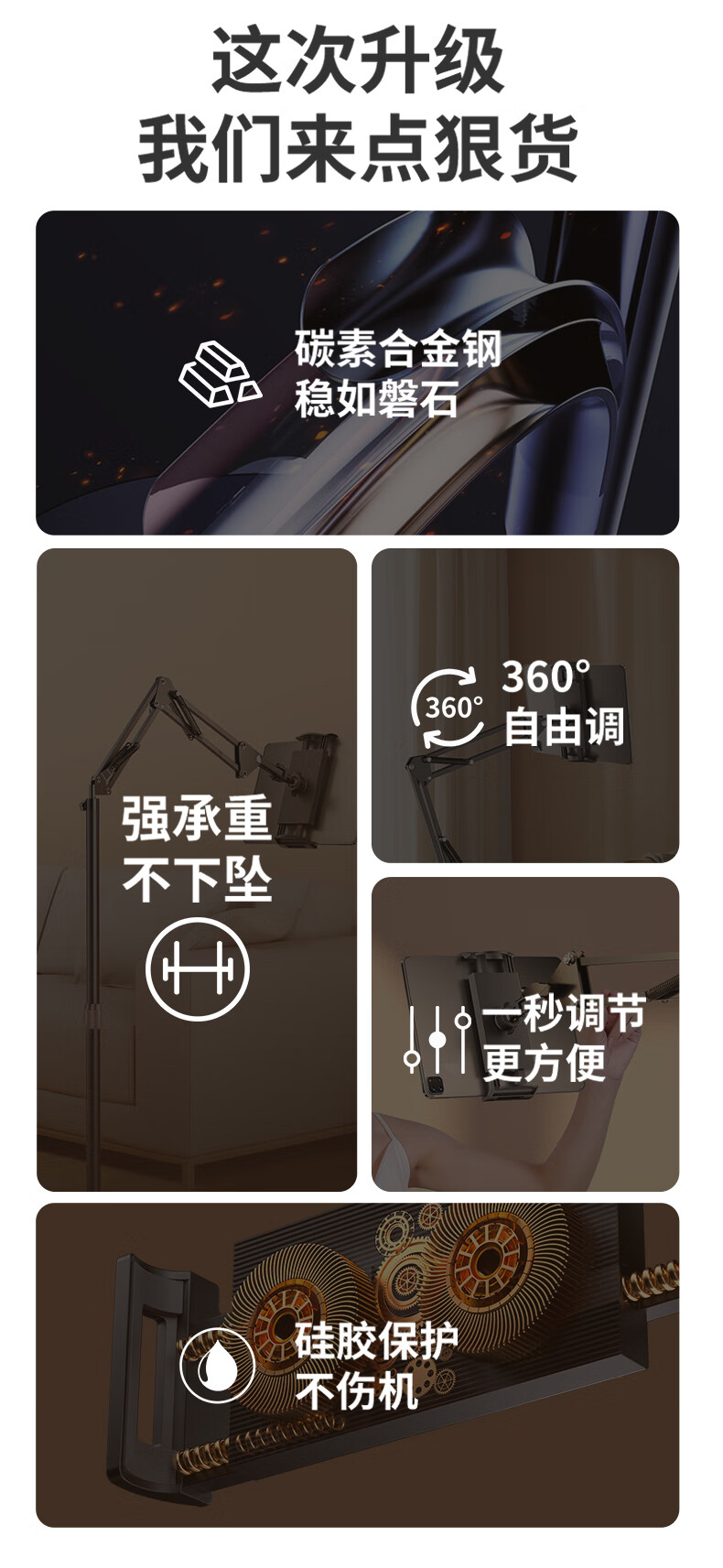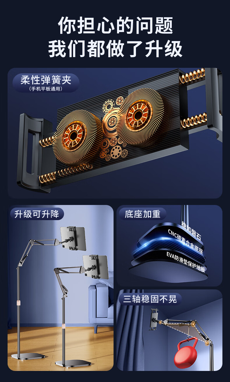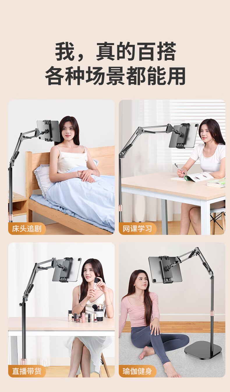 硕图平板支架落地iPad手机支架懒人支架网课钢琴追剧悬臂伸缩架子直播俯拍追剧考研复试视频拍摄设备