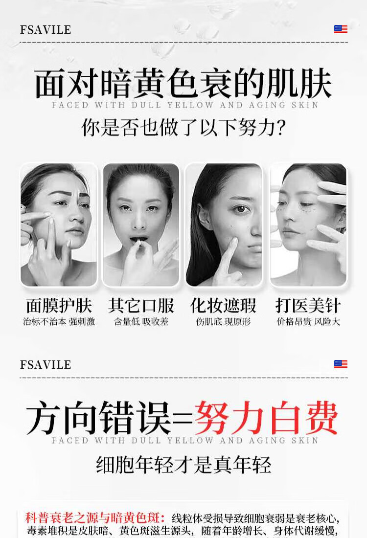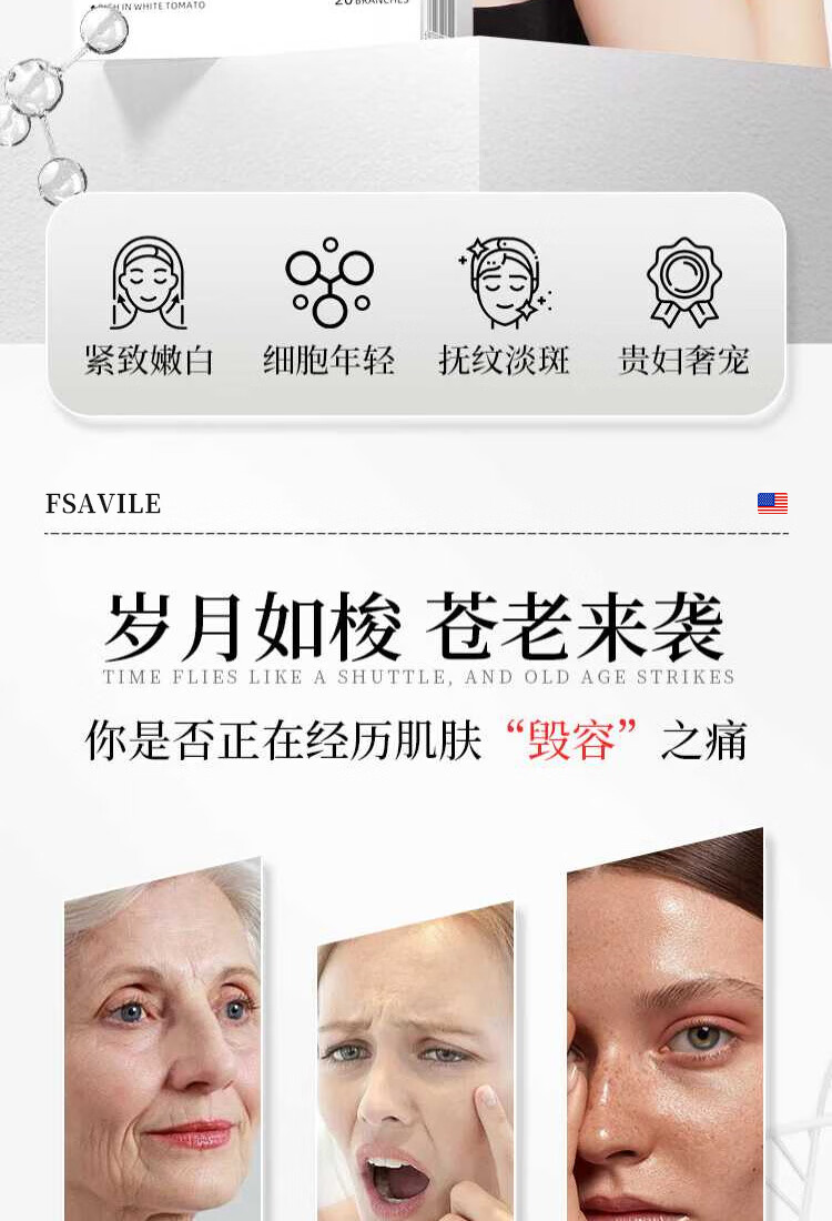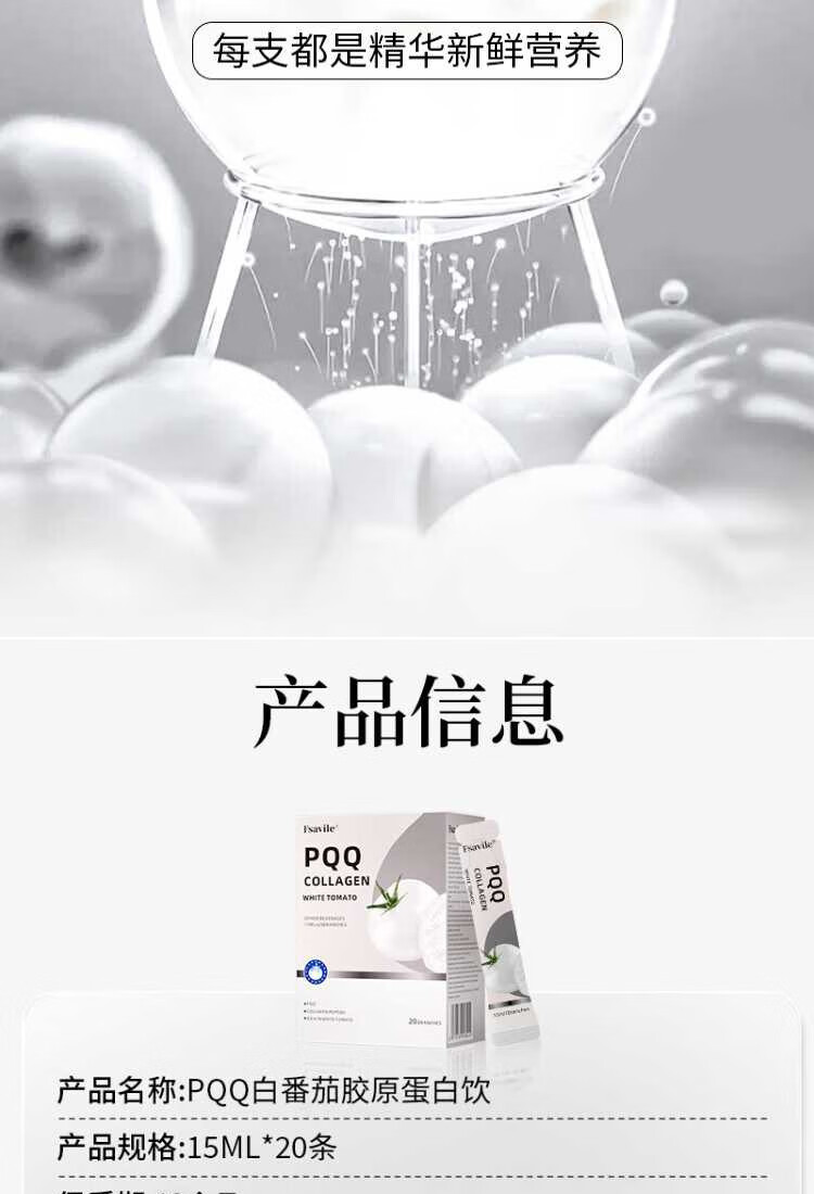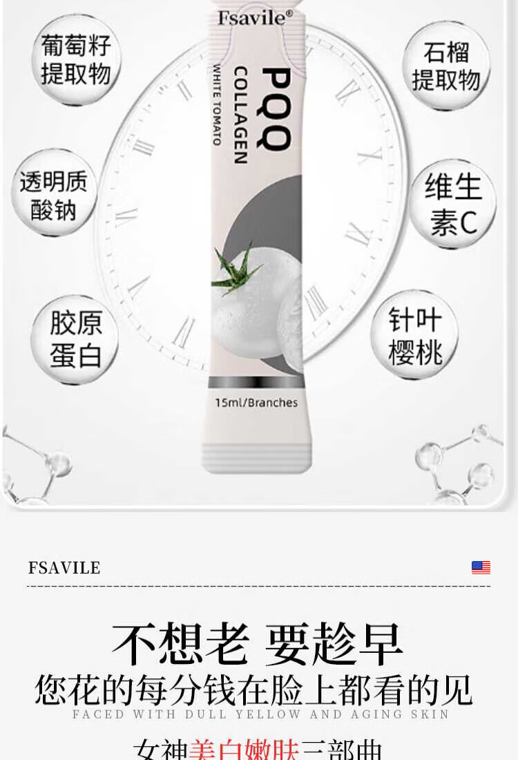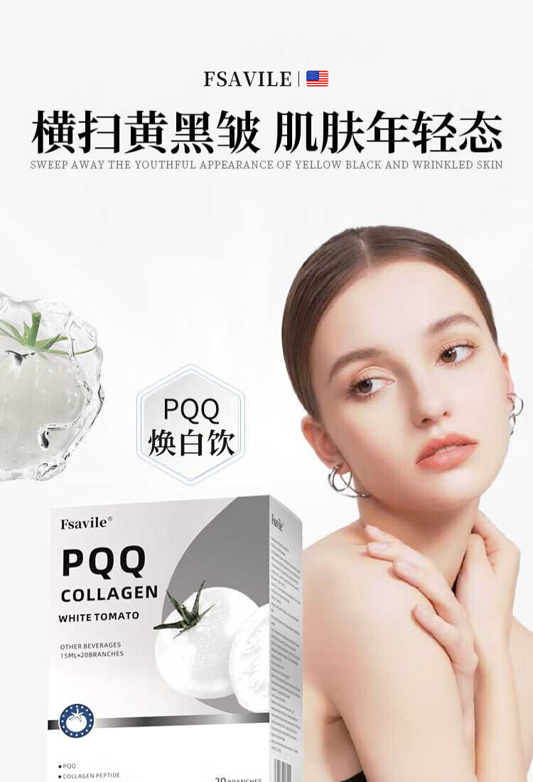 FSAVILE白番茄pqq胶原蛋白肽高纯度亚精胺线粒体焕颜美氧化1盒