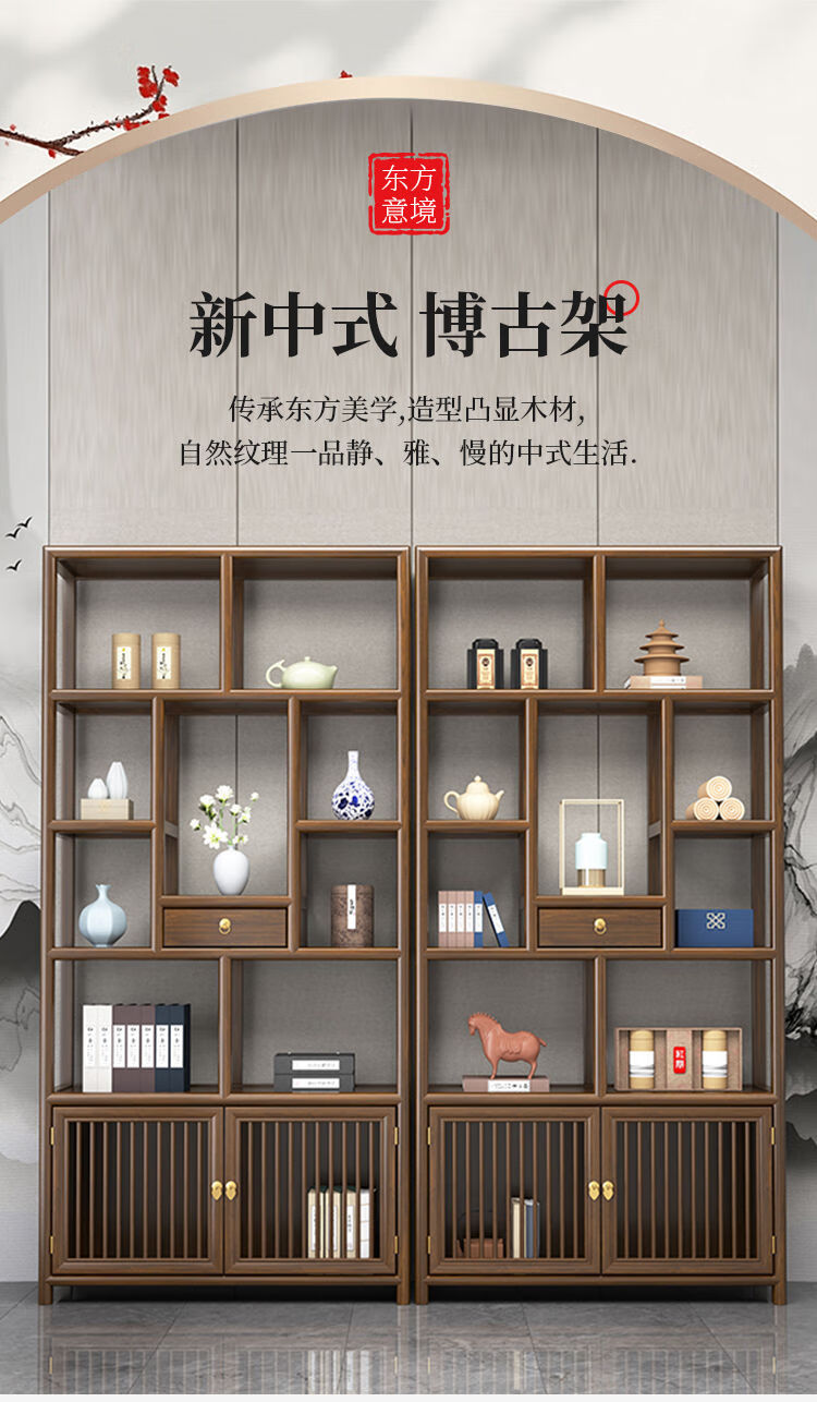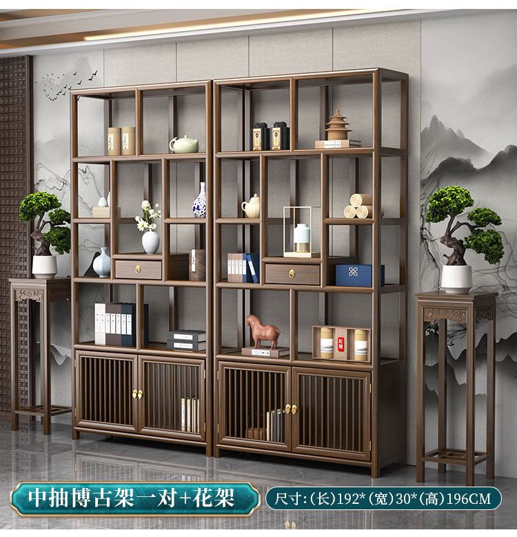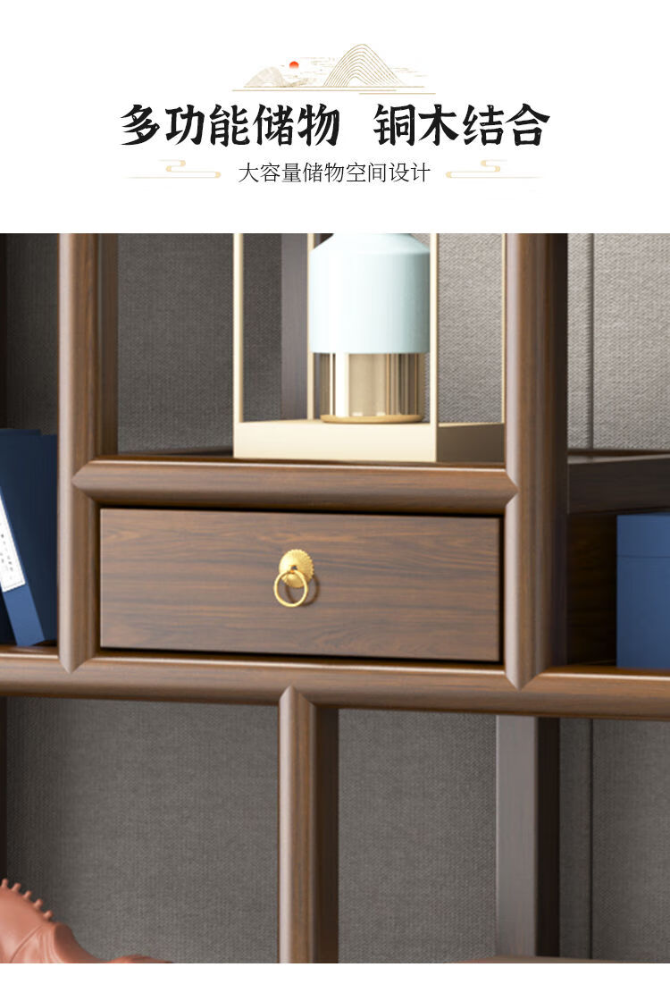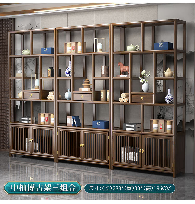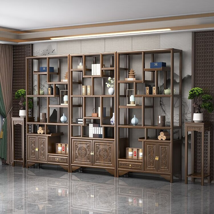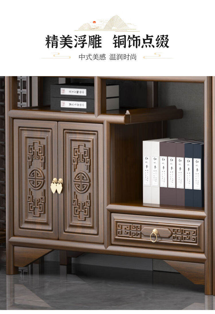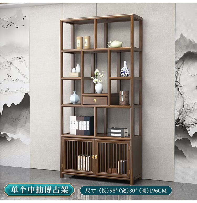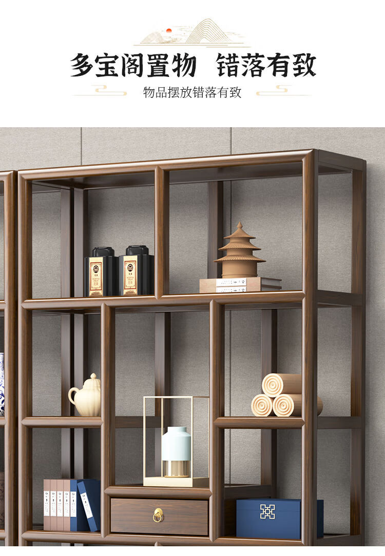 倘然之家胡桃色博古架实木中式茶柜置物架榆木隔断摆件办公室茶叶柜展示柜 单个中抽博古架