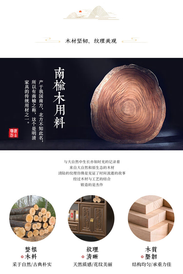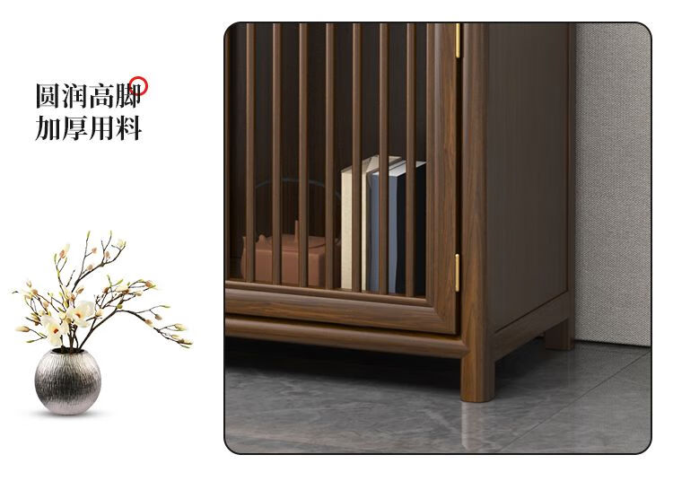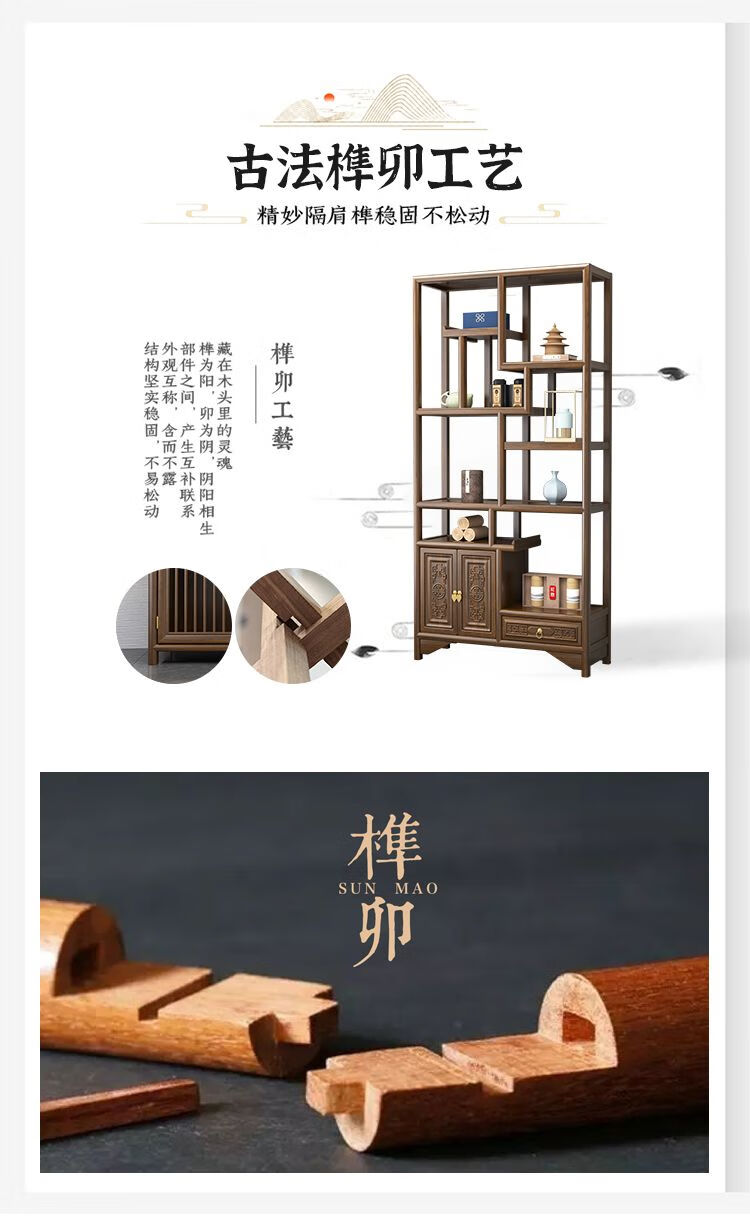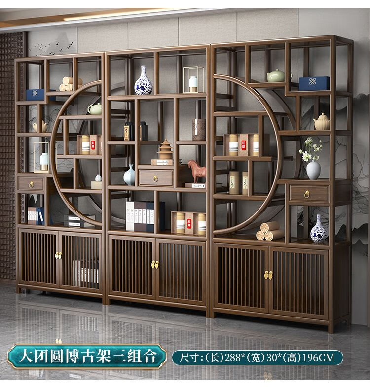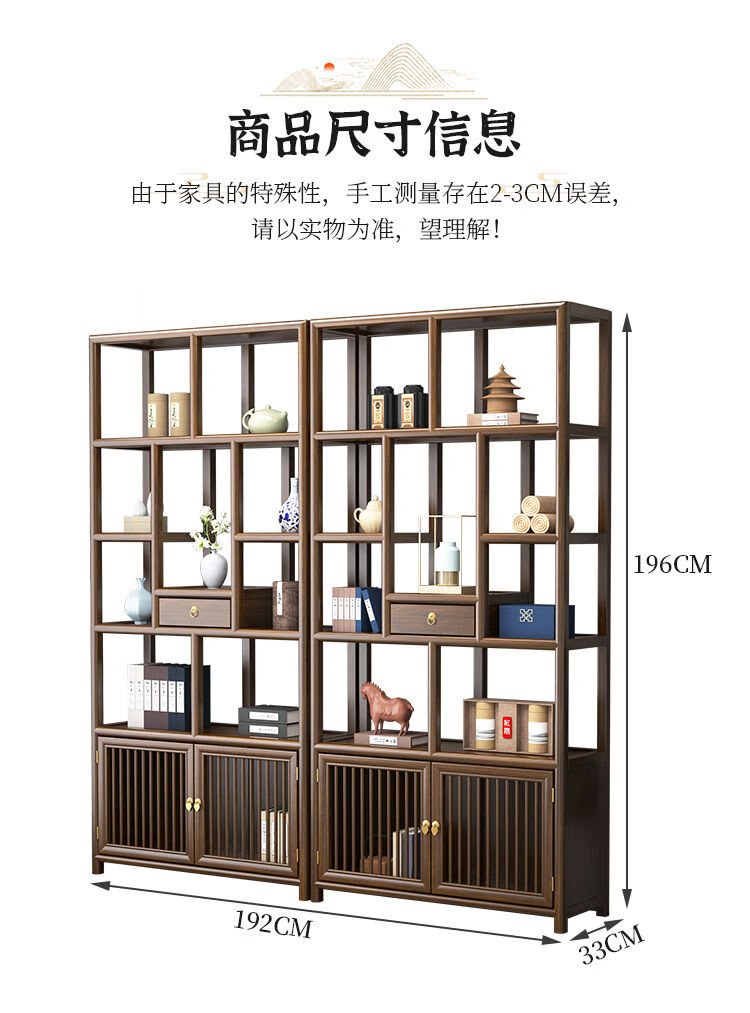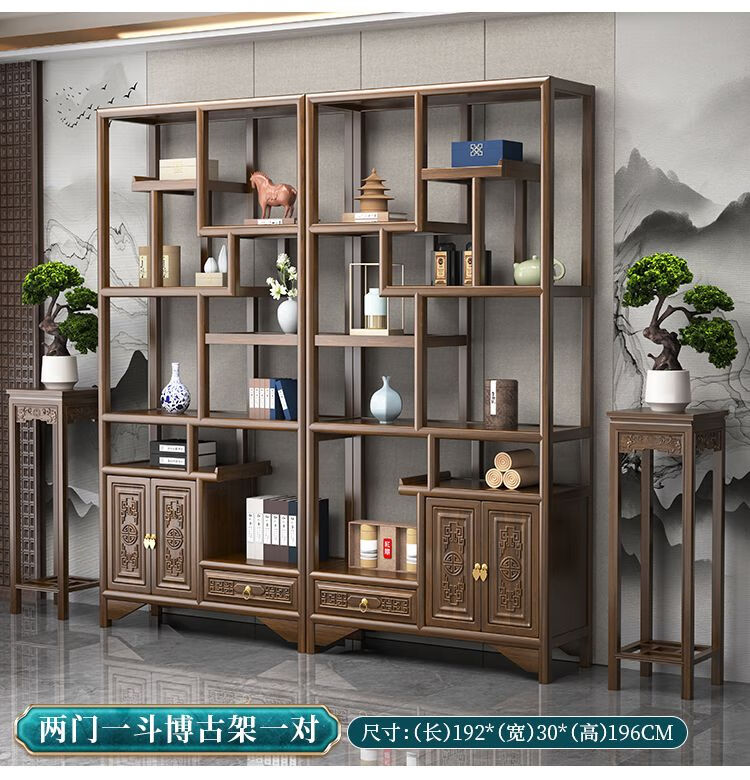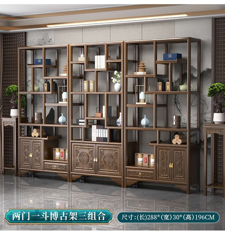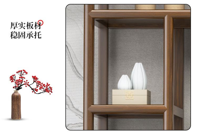 倘然之家胡桃色博古架实木中式茶柜置物架榆木隔断摆件办公室茶叶柜展示柜 单个中抽博古架