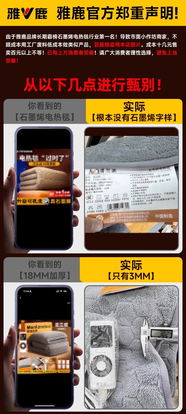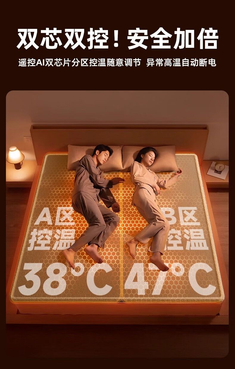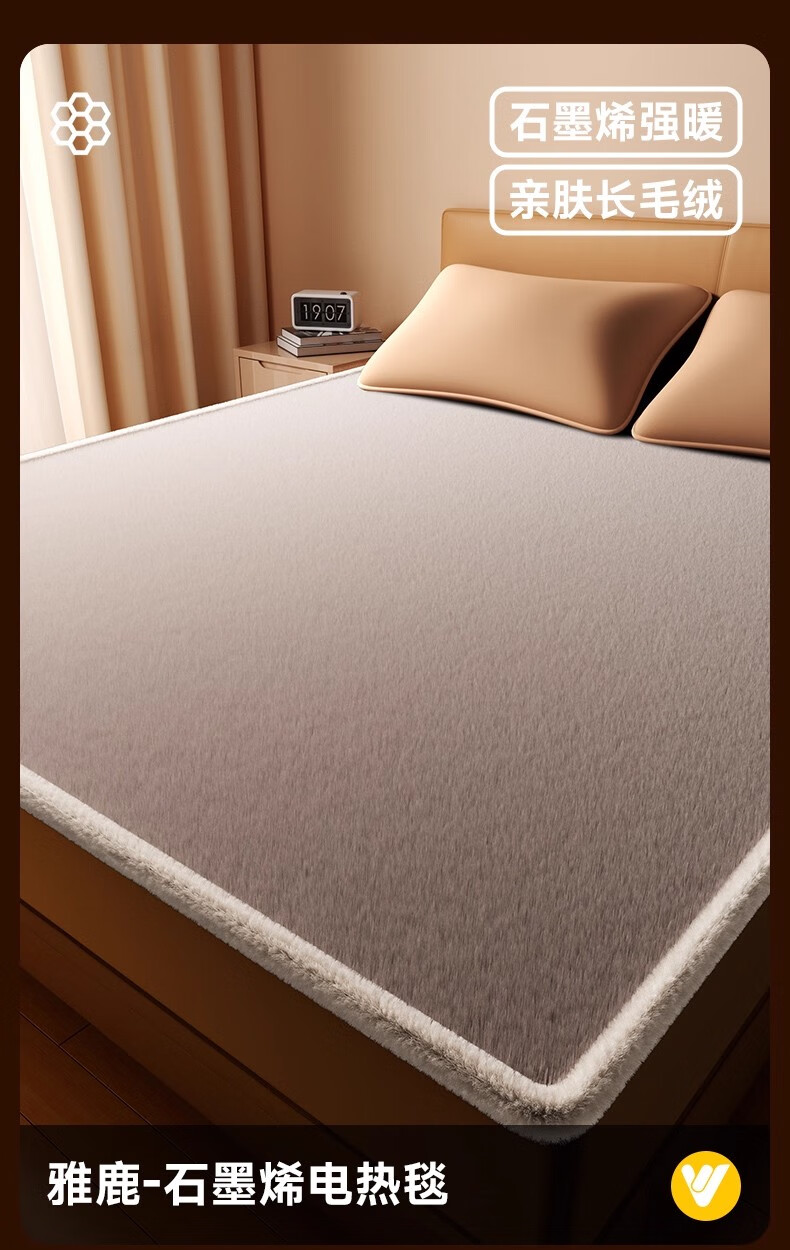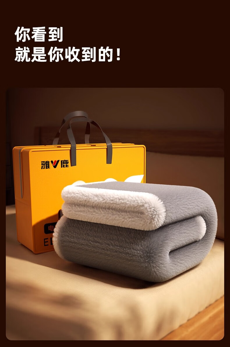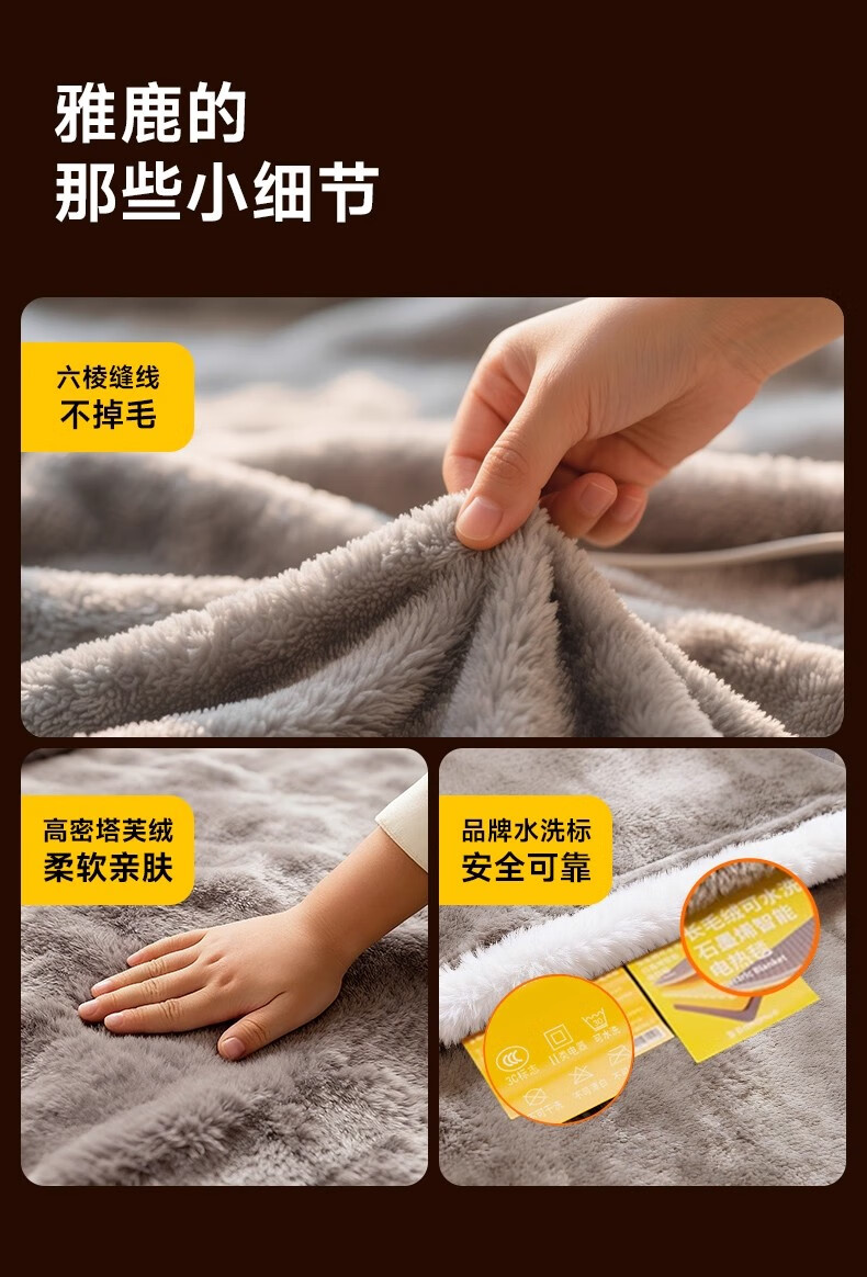 雅鹿【真机洗石墨烯】电热毯双人单人电褥子1.8x2米双温双控防水家用 可机洗丨塔夫绒【1.8*1.5m双人双控】石墨烯瞬热恒温