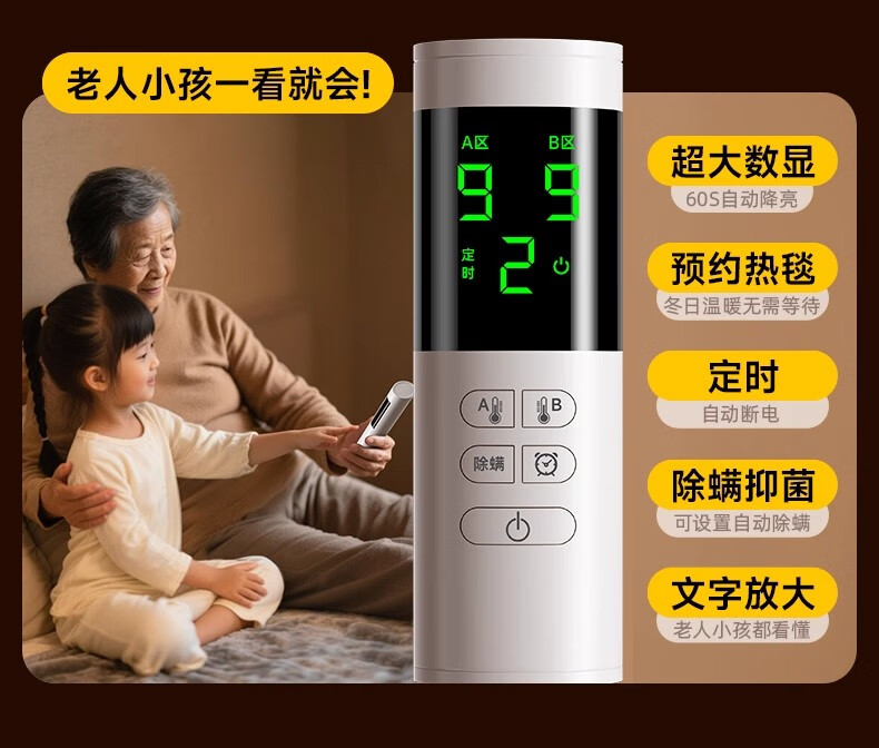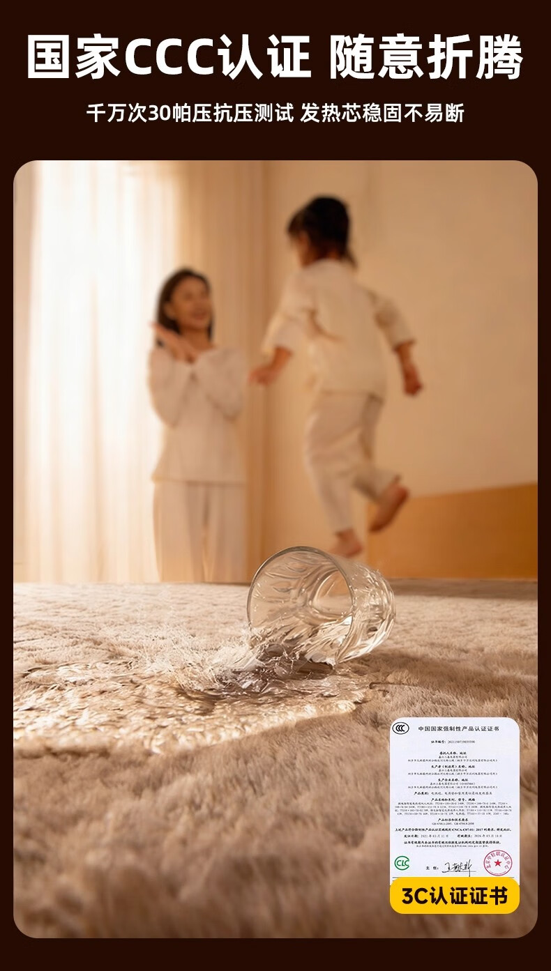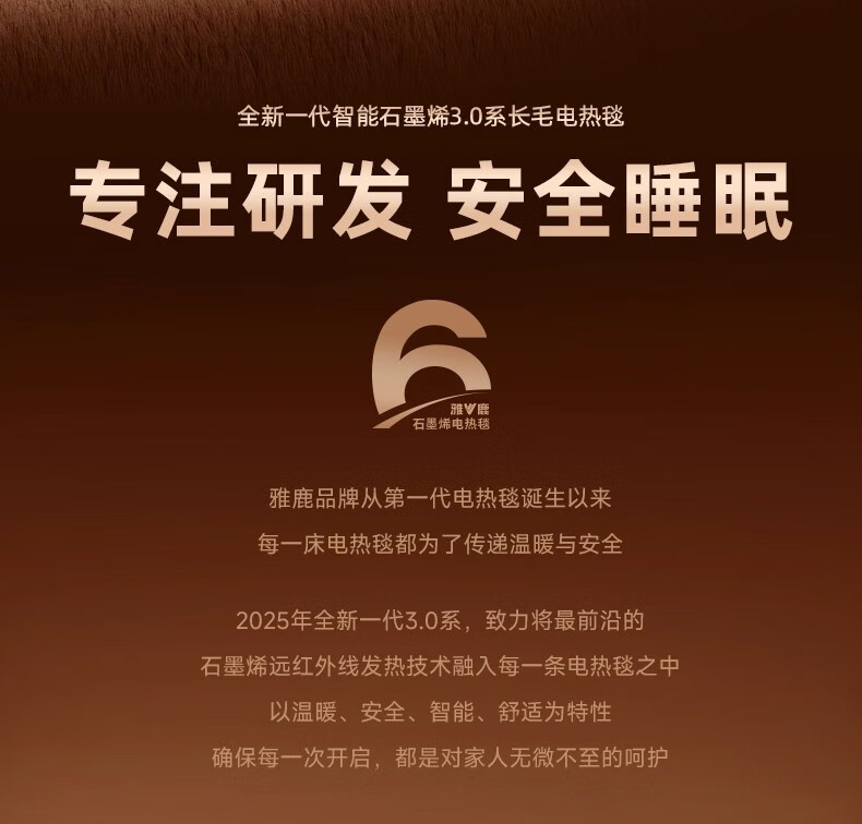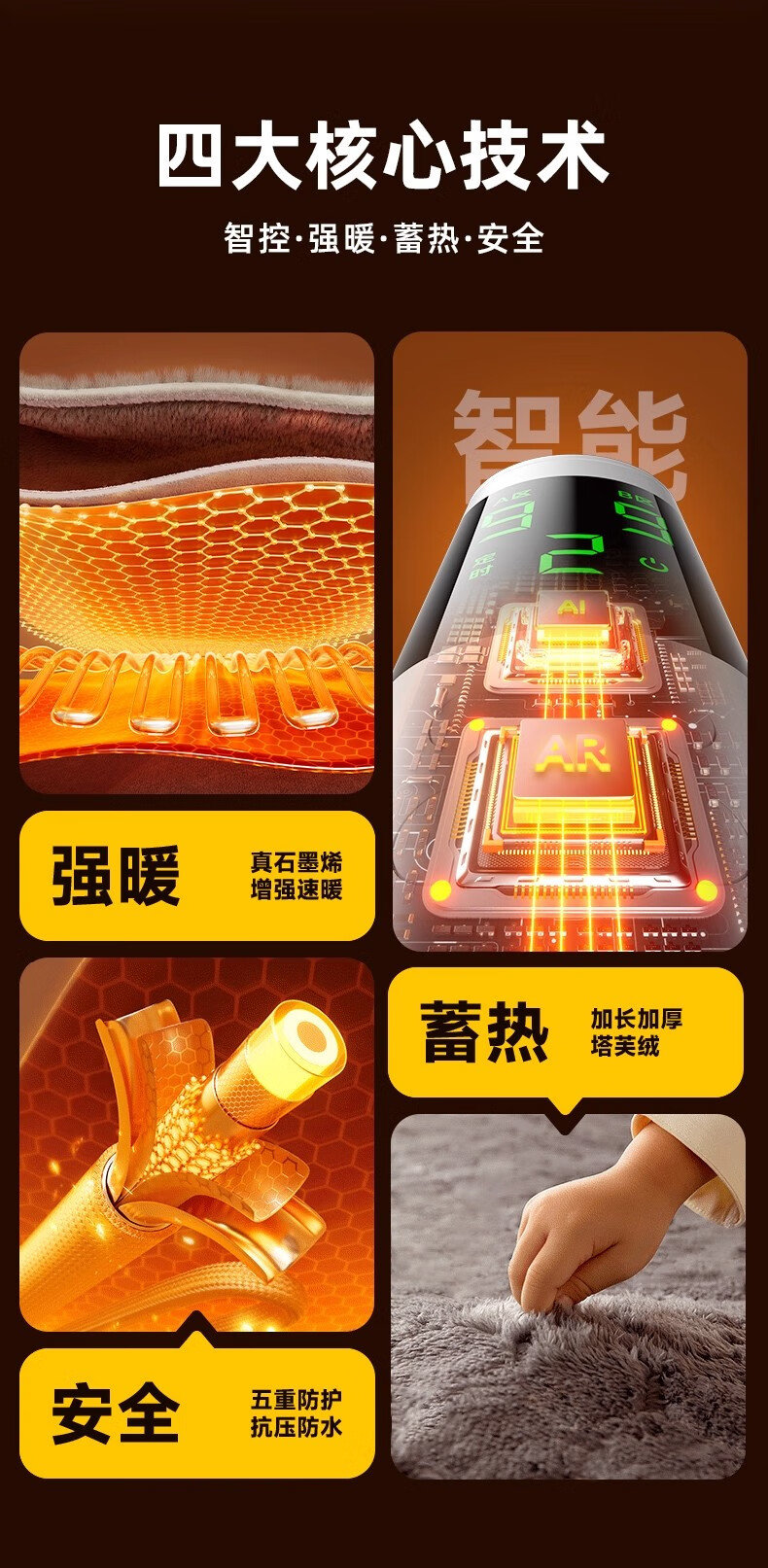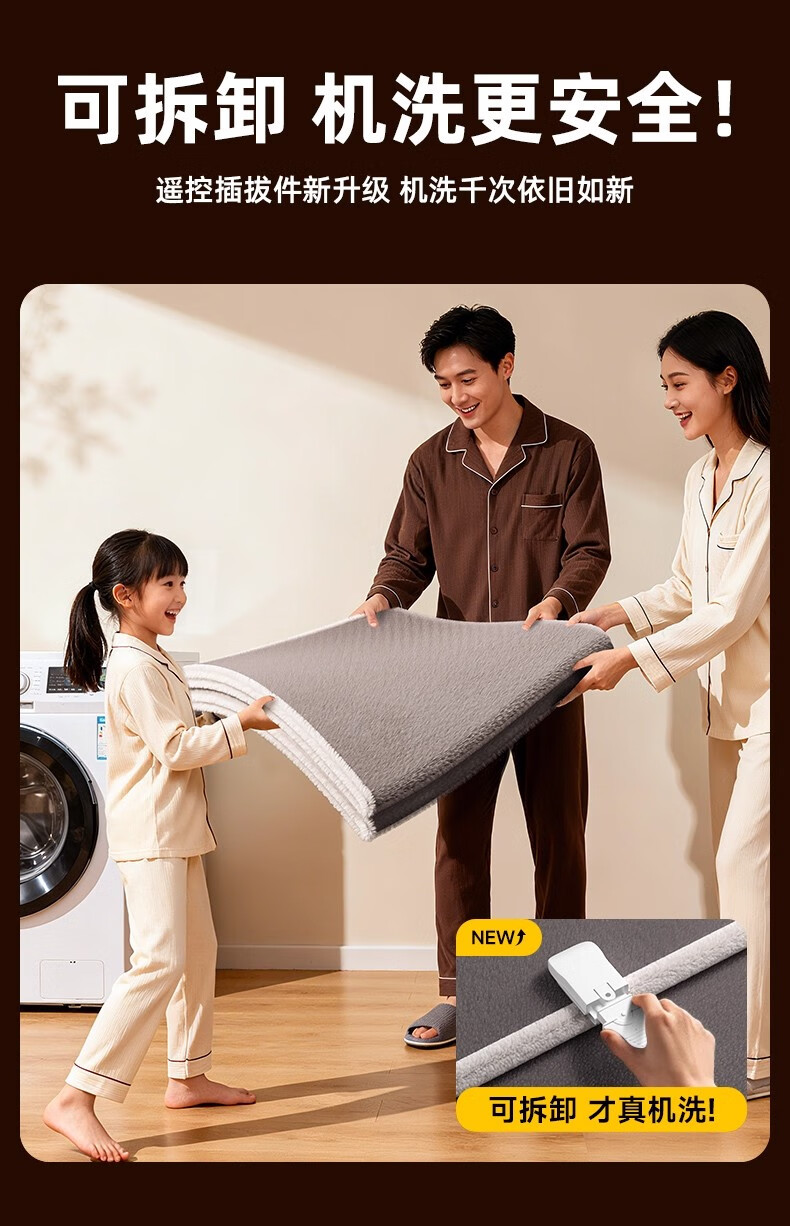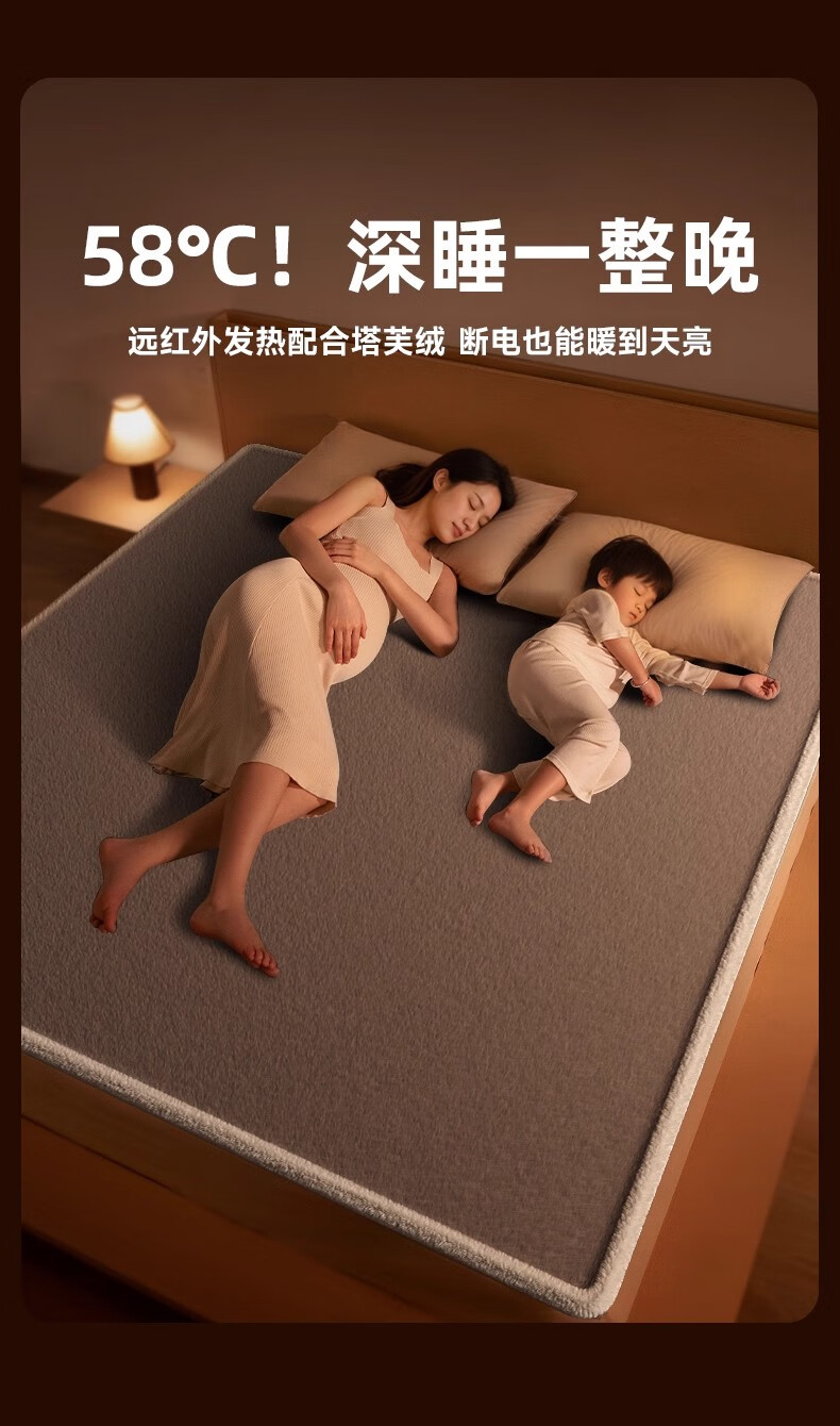 雅鹿【真机洗石墨烯】电热毯双人单人电褥子1.8x2米双温双控防水家用 可机洗丨塔夫绒【1.8*1.5m双人双控】石墨烯瞬热恒温