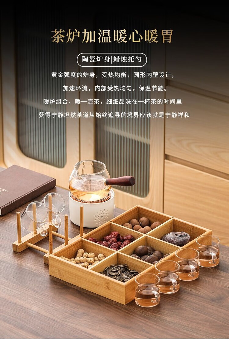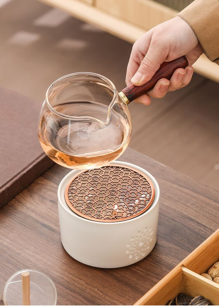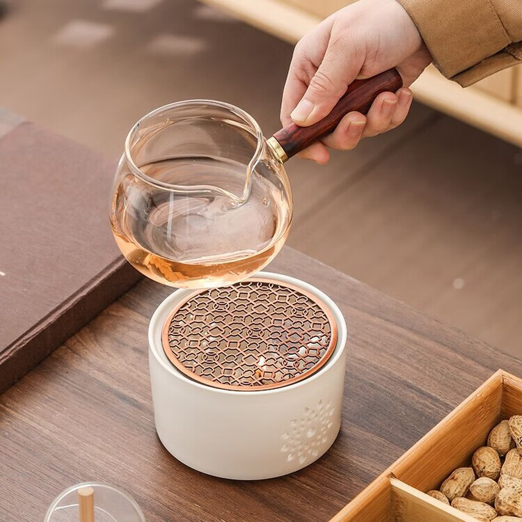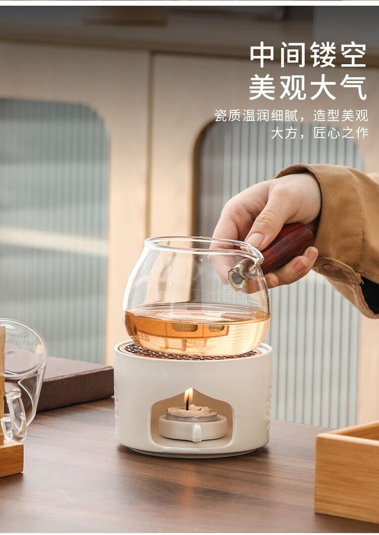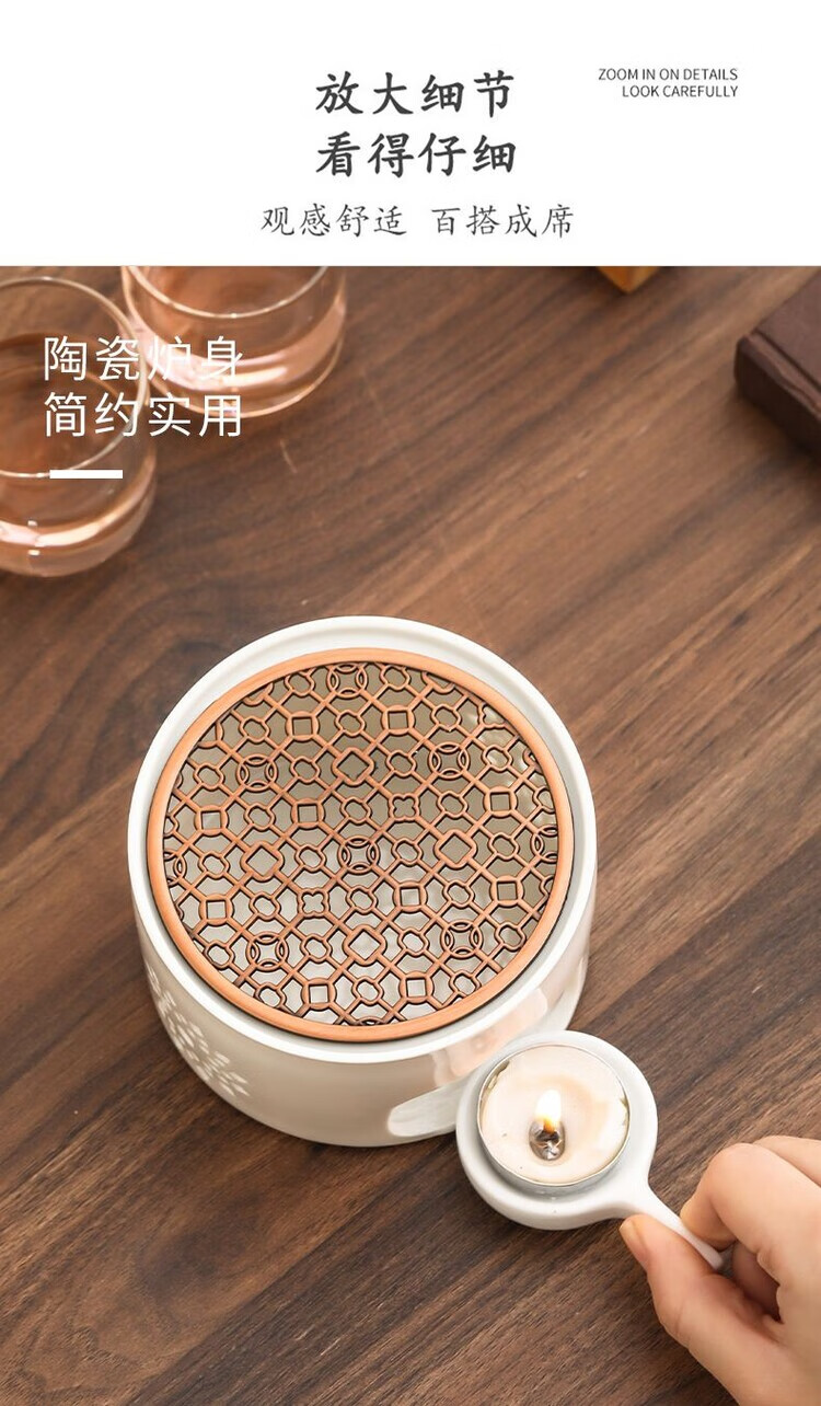 花沐禧日式蜡烛煮茶炉套装温茶炉底座明火烤橘子炉热茶暖茶加热炉温茶器 【温茶必备】DFY玲珑温茶炉送烛托10颗蜡烛 【温茶神器】