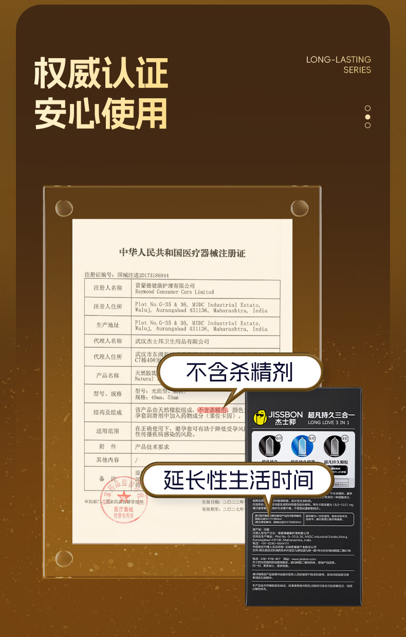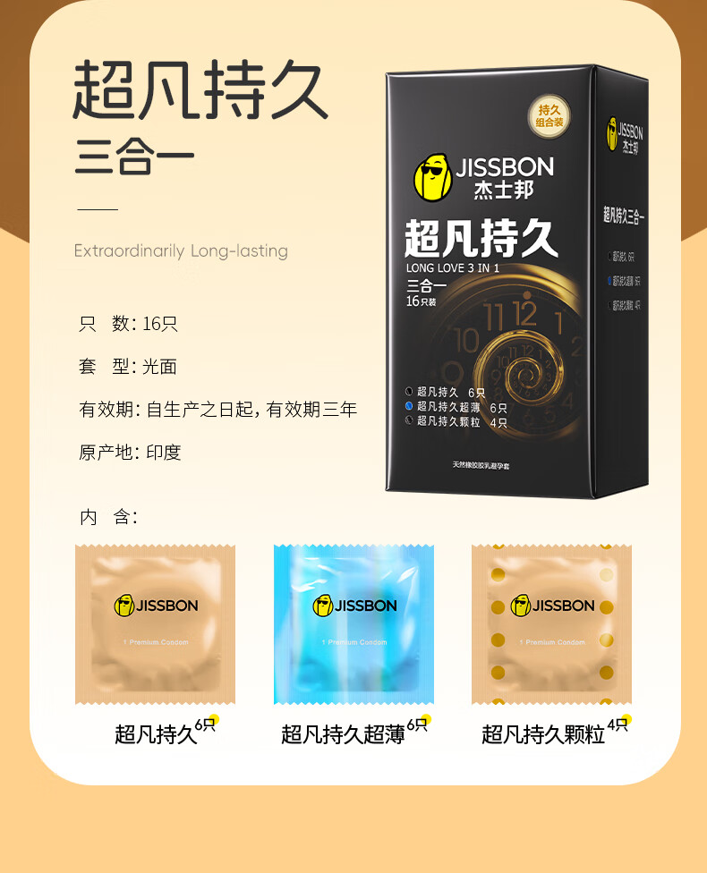 杰士邦避孕套安全套套超凡持久延时三合一16只超薄男专用防早泄敏感套