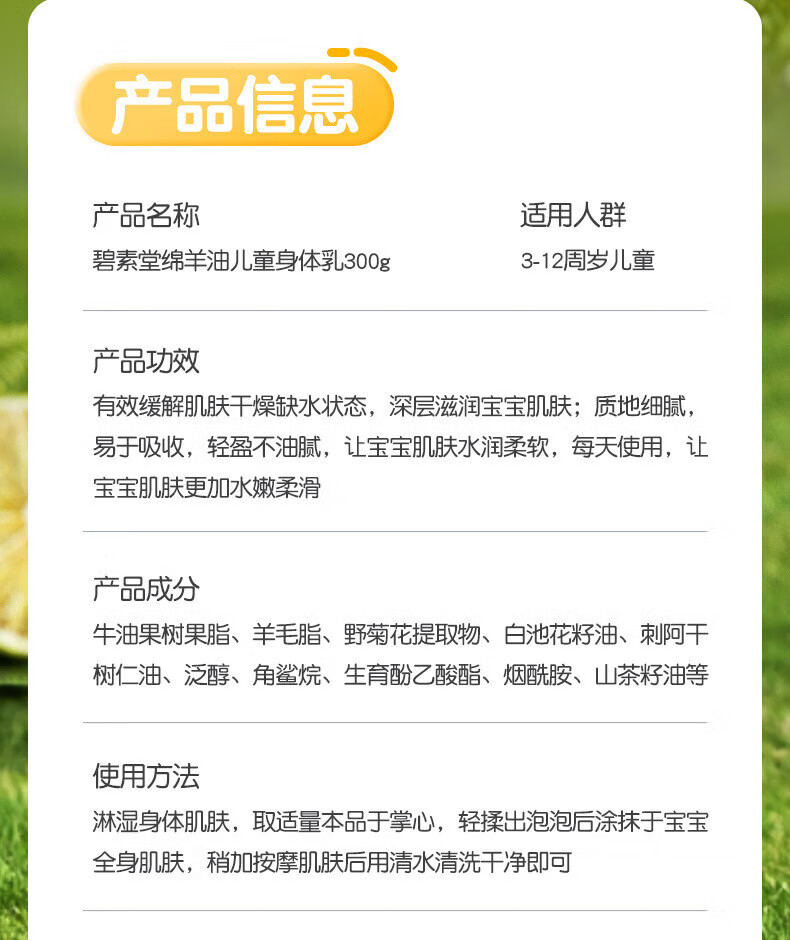碧素堂维E绵羊油身体乳500ml保湿润肤 儿润肤乳一瓶300g