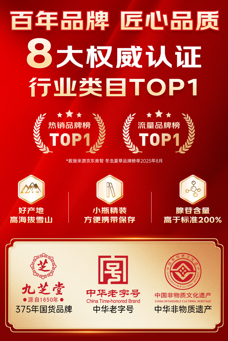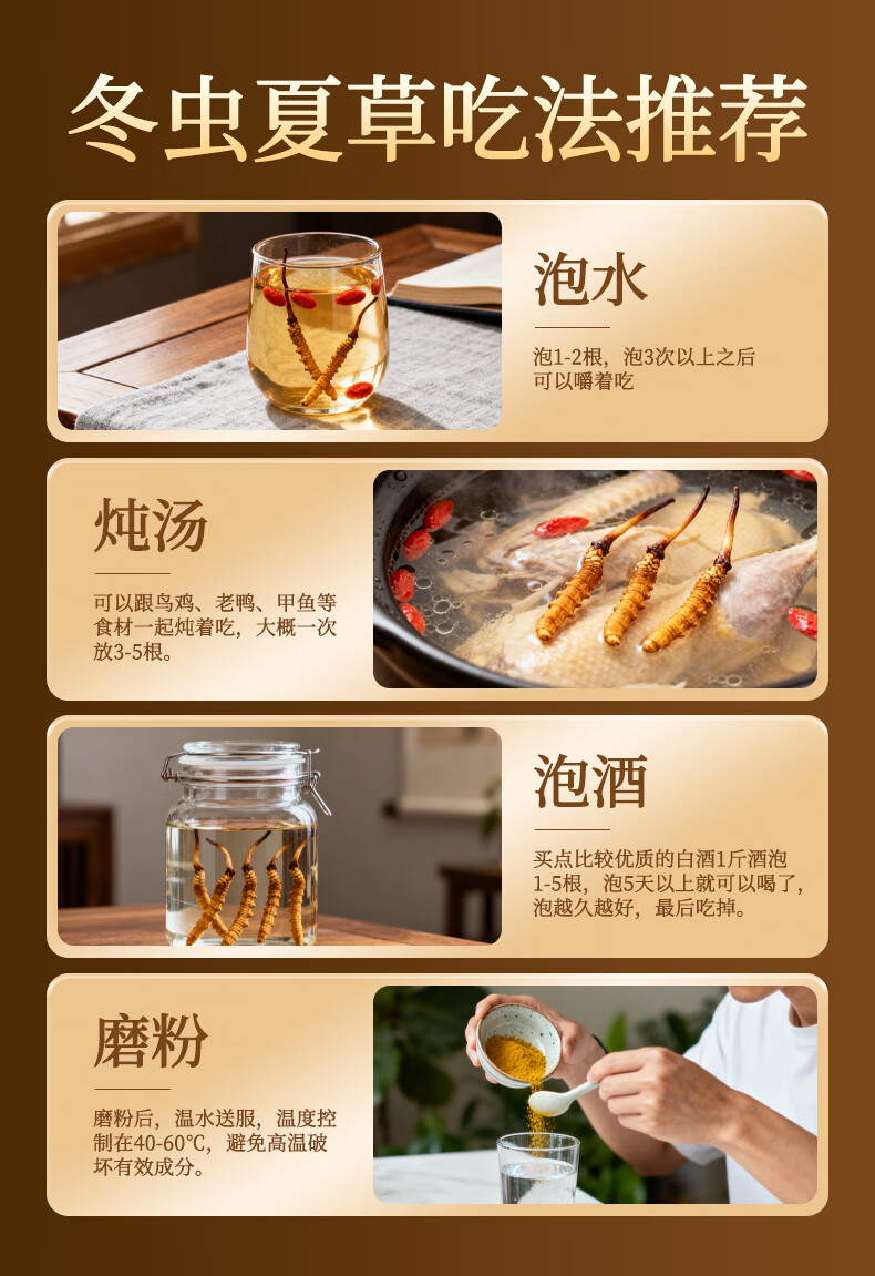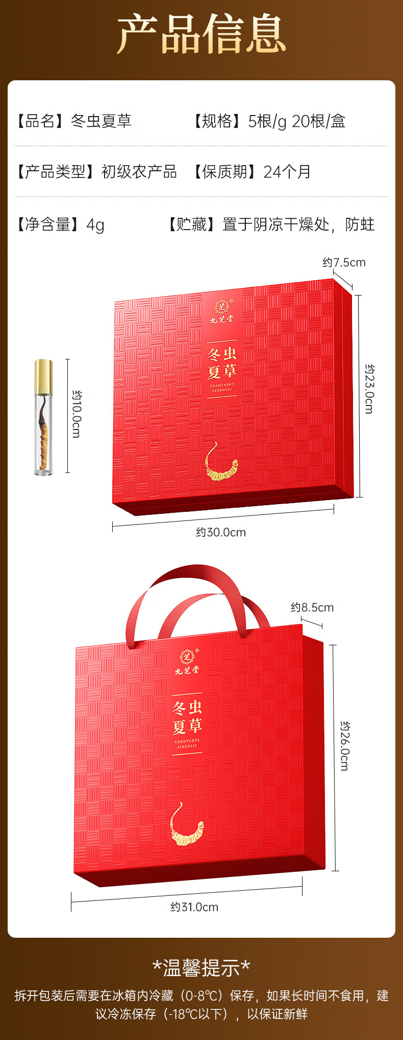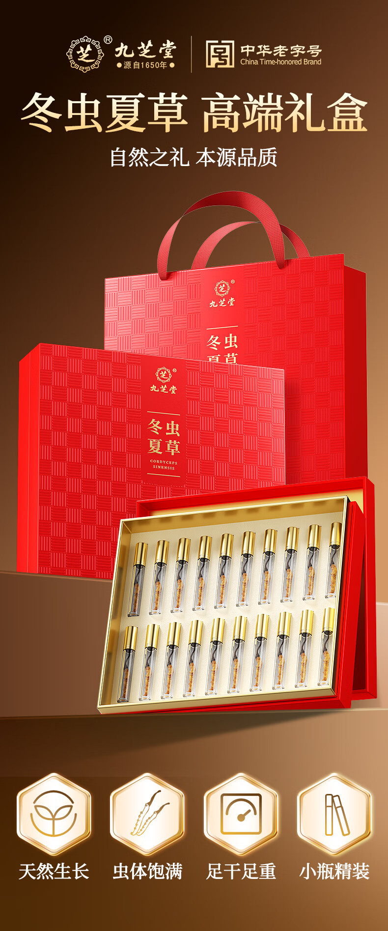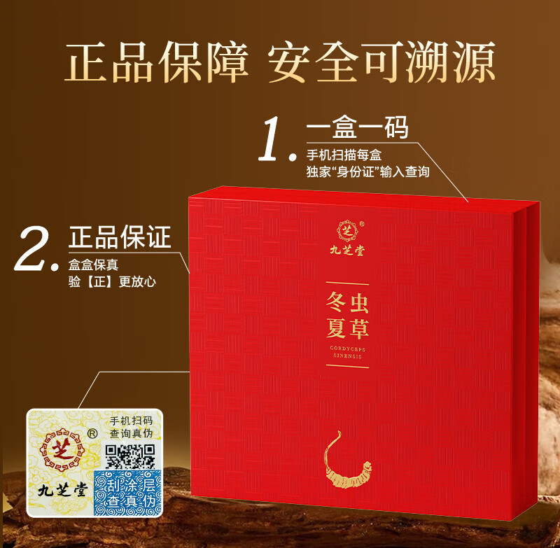 九芝堂冬虫夏草礼盒4g约4-5根/g约20根 虫草高端补品送长辈父母领导礼物
