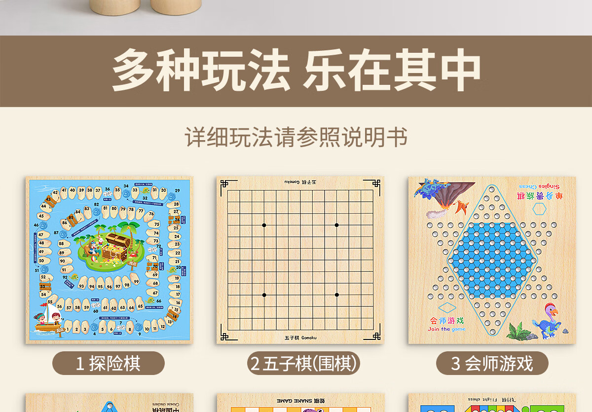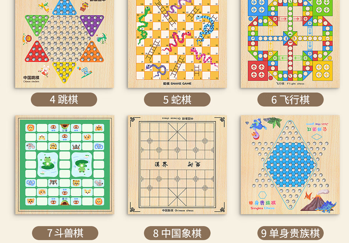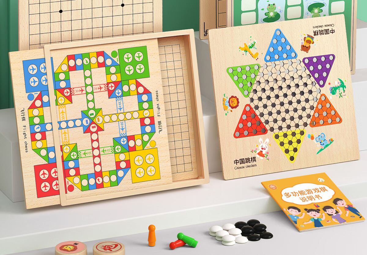 星星舟儿童跳琪六角棋多合一飞行棋成人木制小学生多功能游戏棋生日礼物 10合1多功能游戏棋