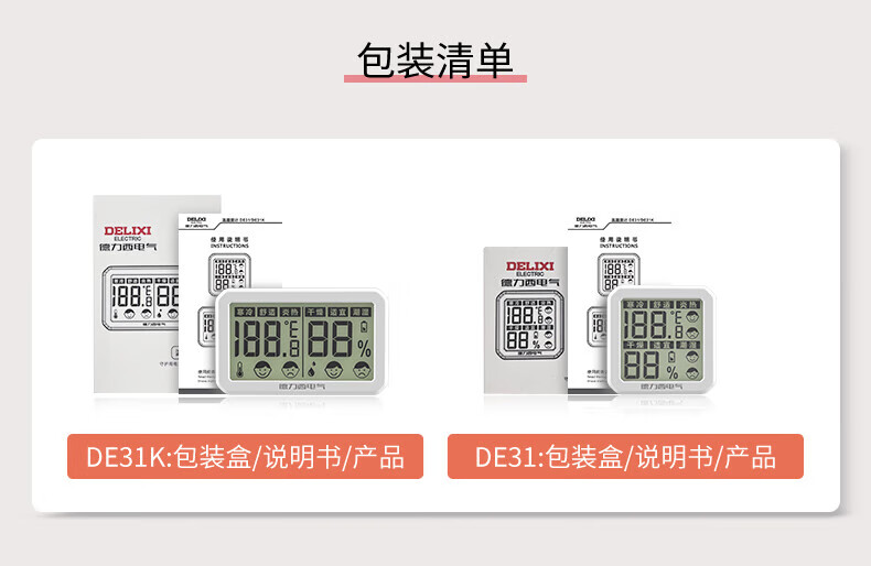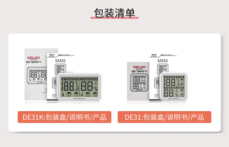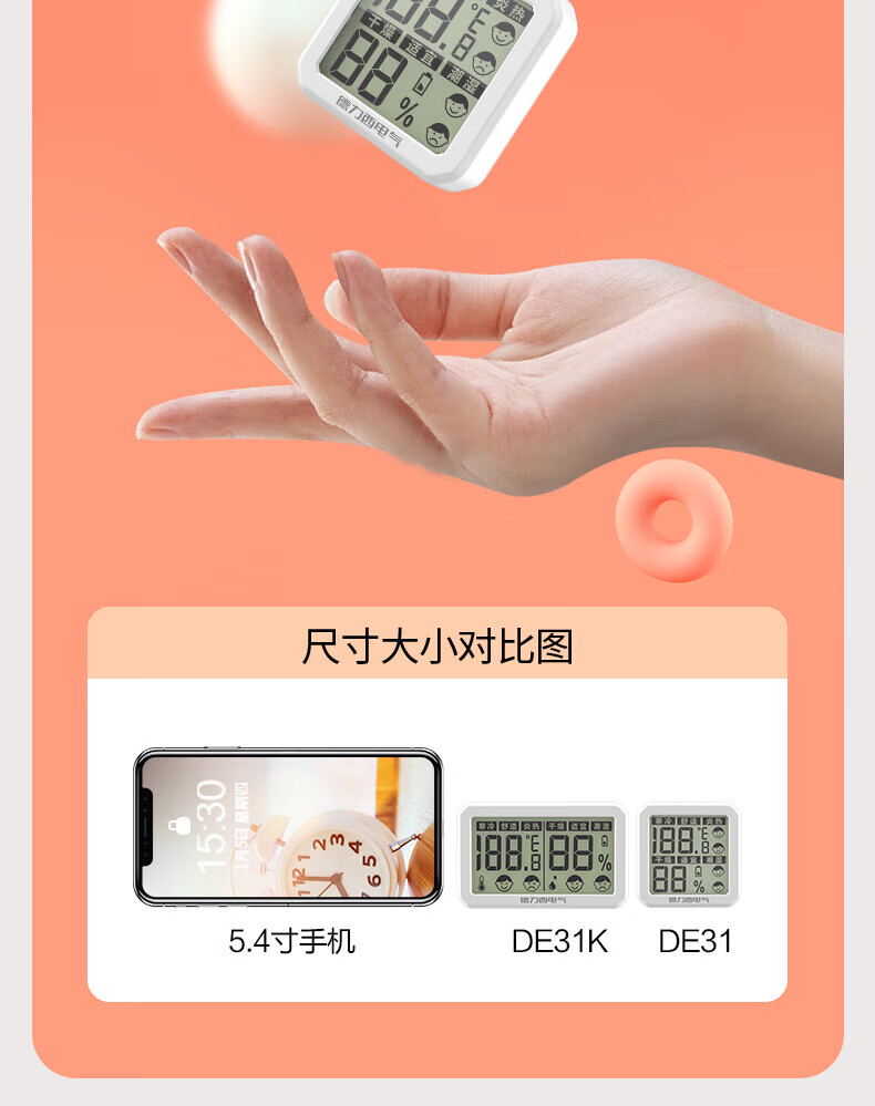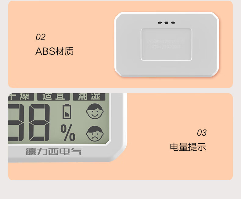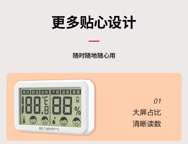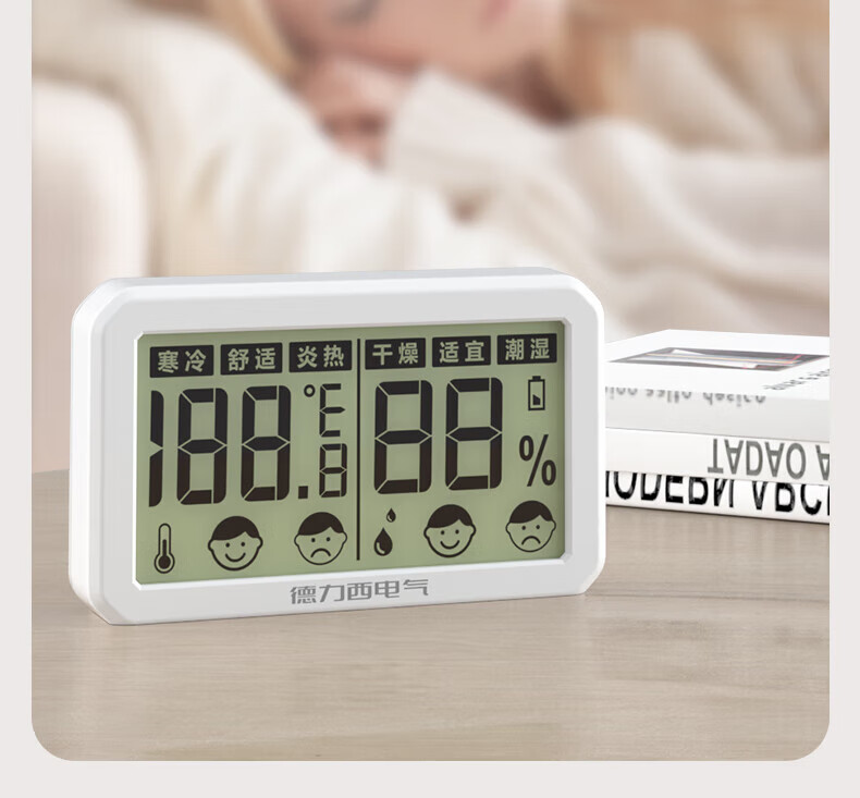 德力西(DELIXI)温湿度计家用电子温度计可测客厅房间高精度多功能创意干温湿度计 【大屏】灵敏机芯