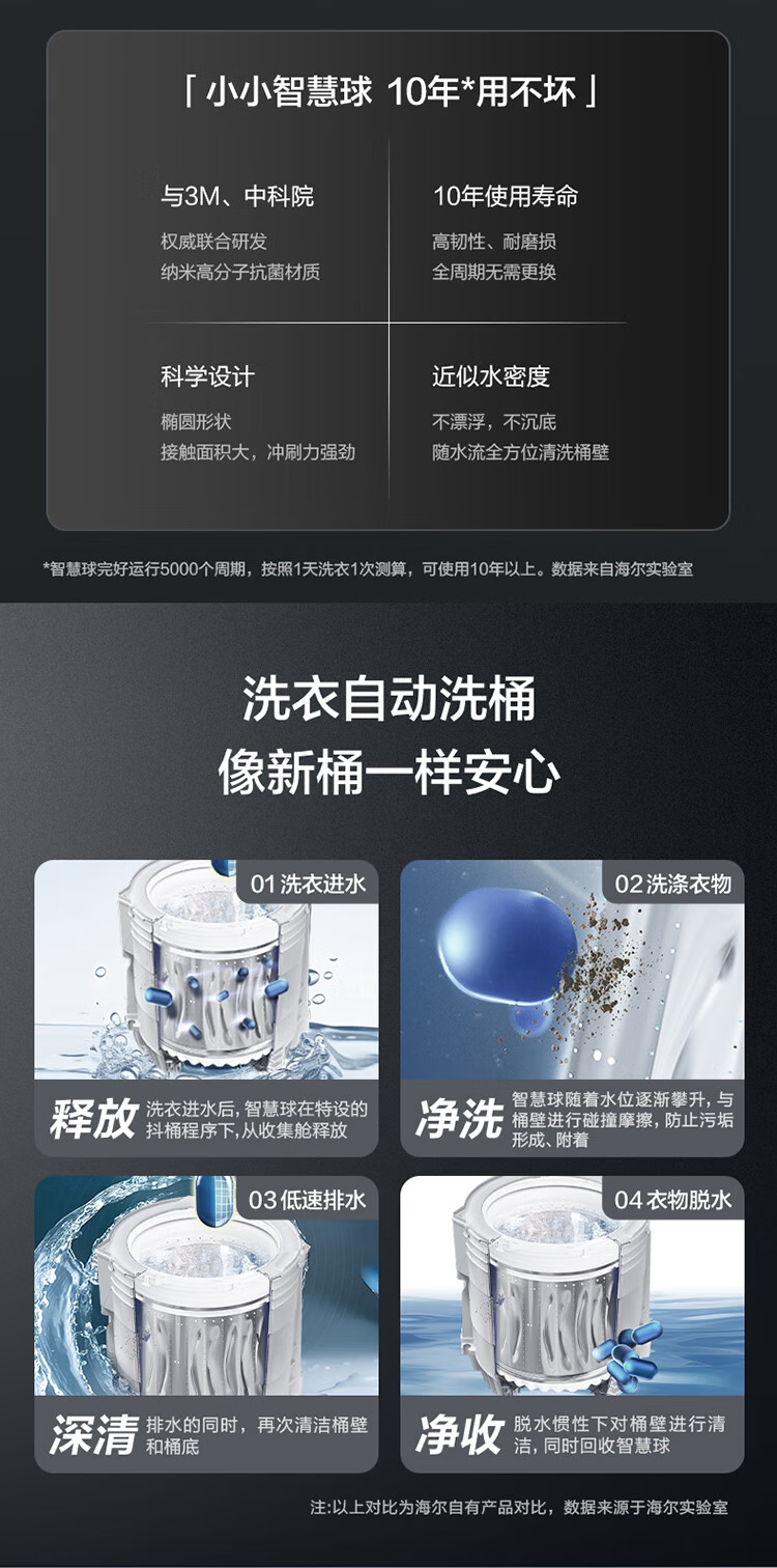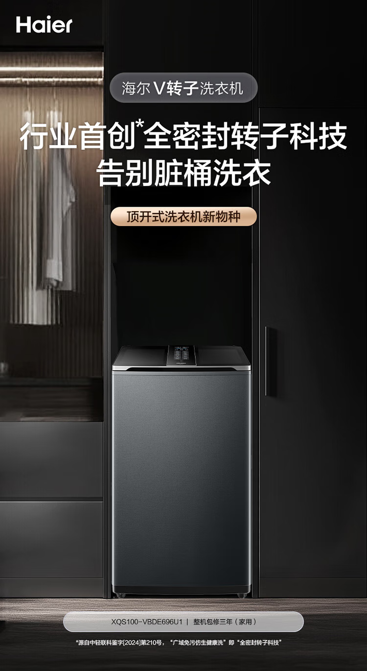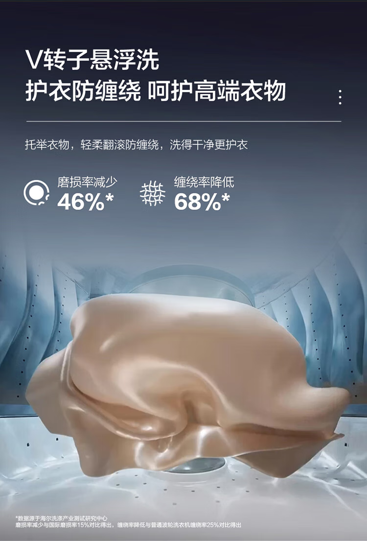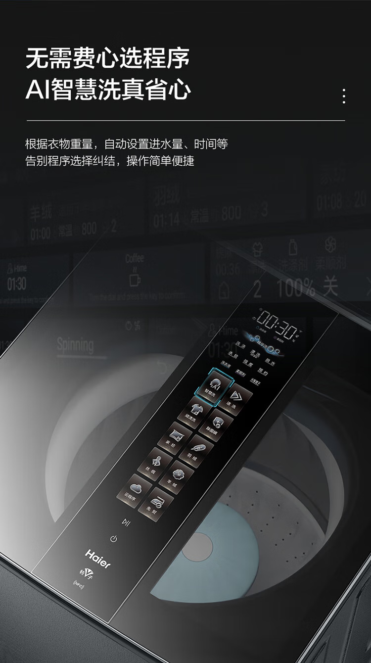 海尔(Haier)双动力波轮洗衣机全自动10kg免清洗V转子悬浮洗1.12双智能投放超薄除菌螨VBDE696U1 极夜灰布纹理-光等除菌+NFC智控+中控悬浮屏