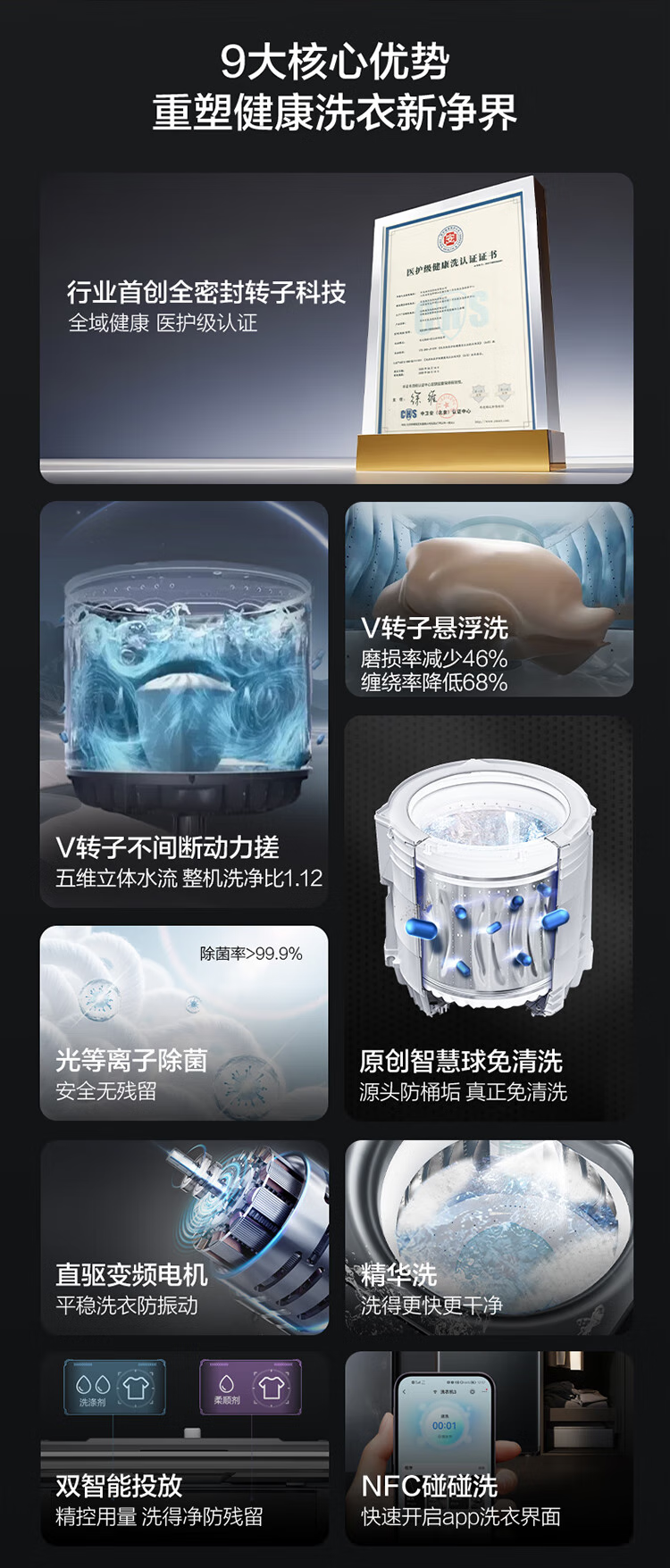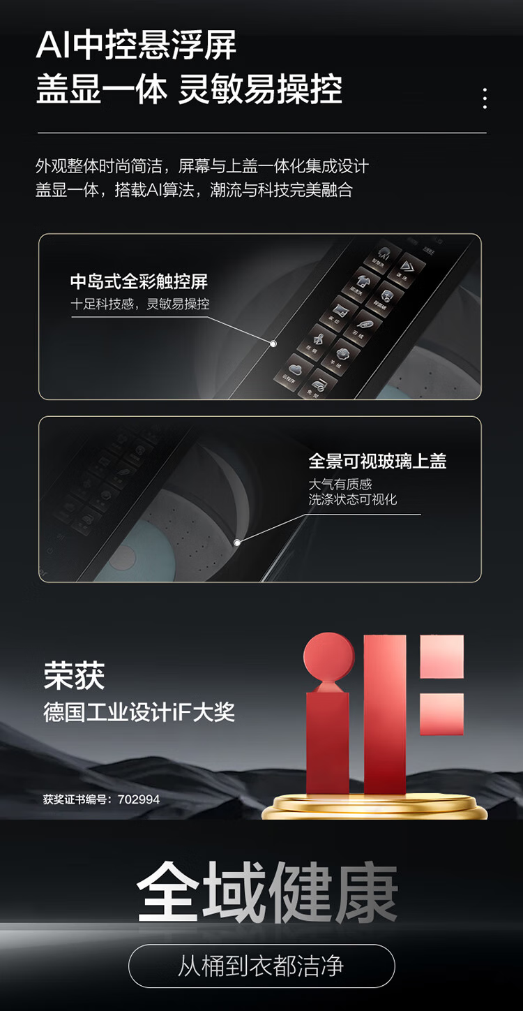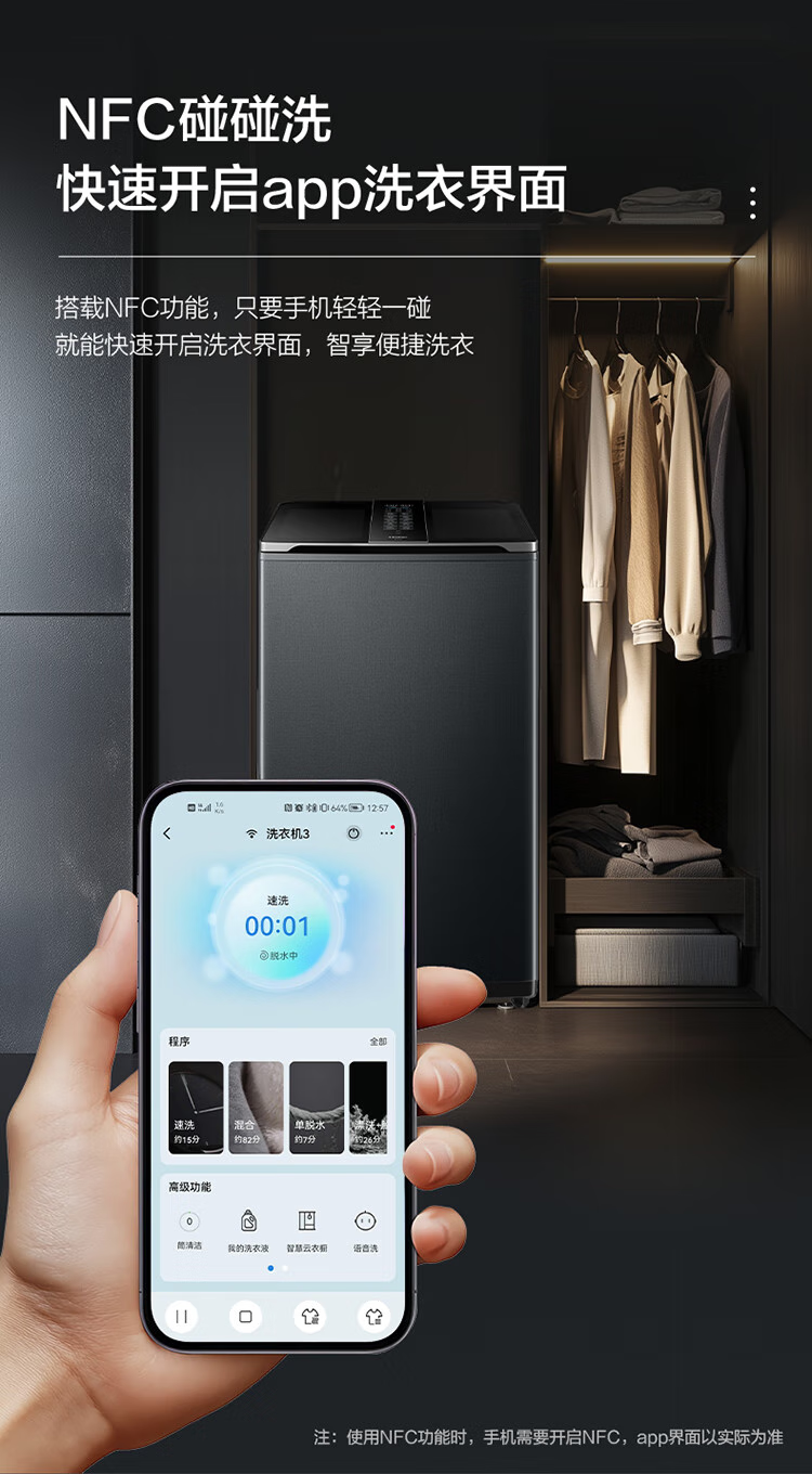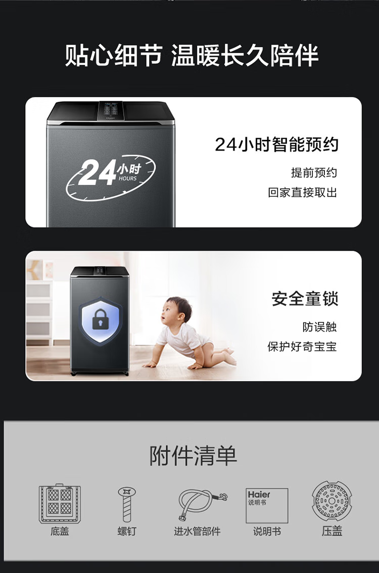海尔(Haier)双动力波轮洗衣机全自动10kg免清洗V转子悬浮洗1.12双智能投放超薄除菌螨VBDE696U1 极夜灰布纹理-光等除菌+NFC智控+中控悬浮屏