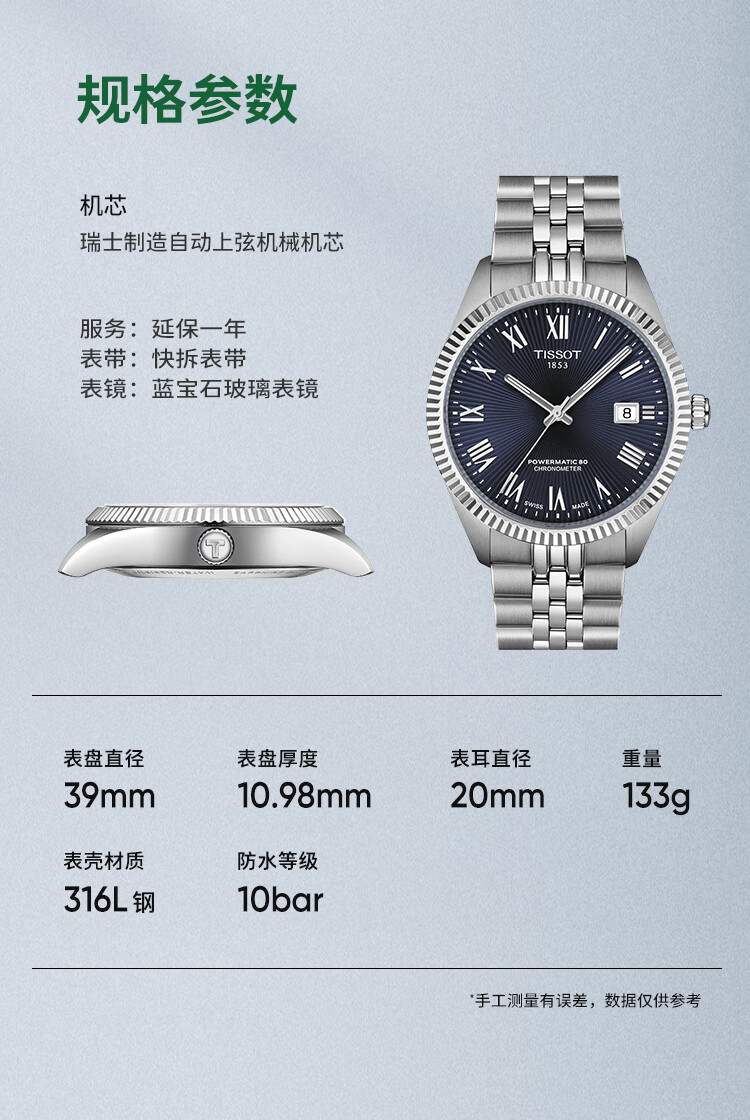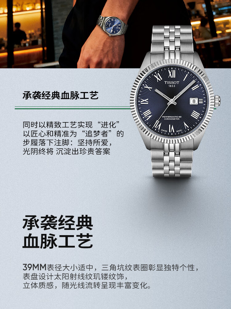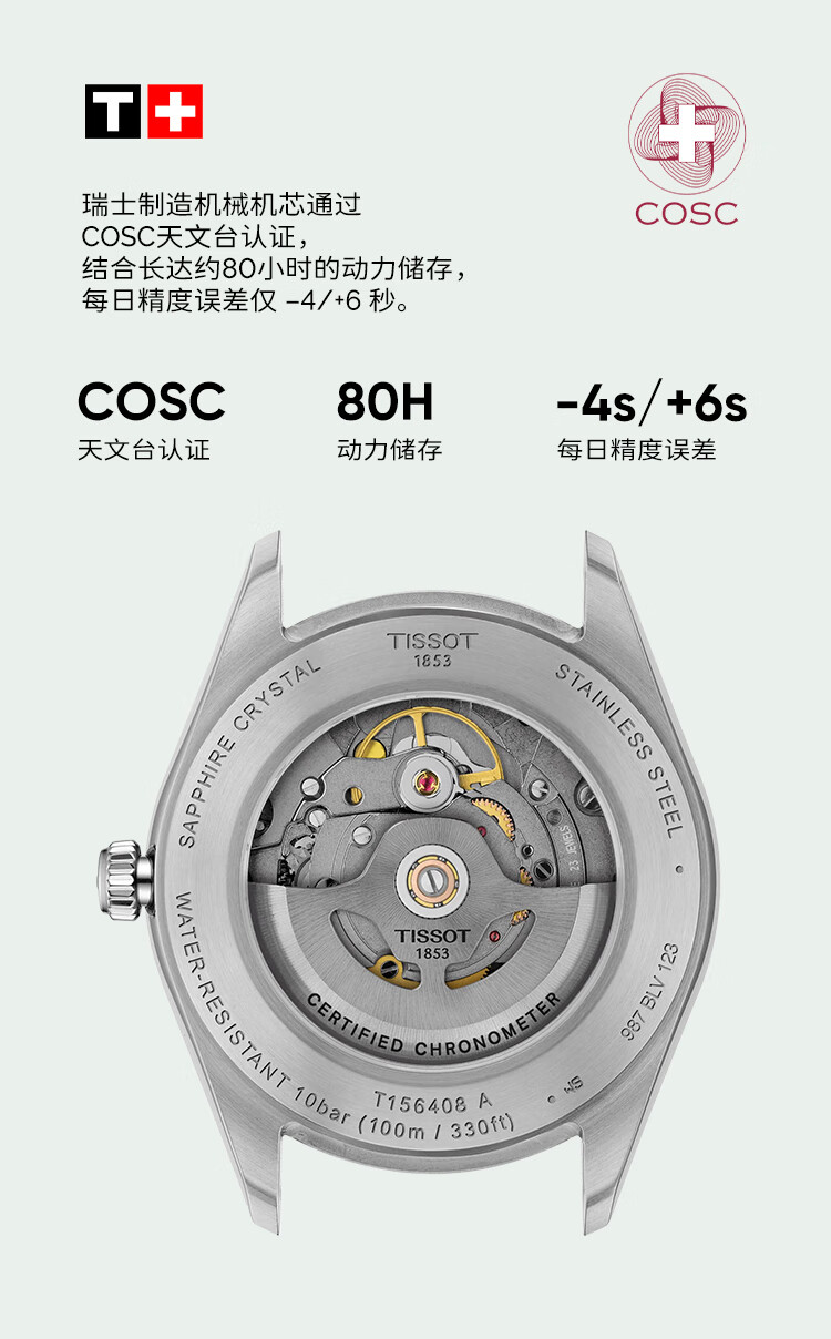 天梭(TISSOT)手表 全新宝环系列男表 天文台认证款瑞士机械男士钢带腕表商务表