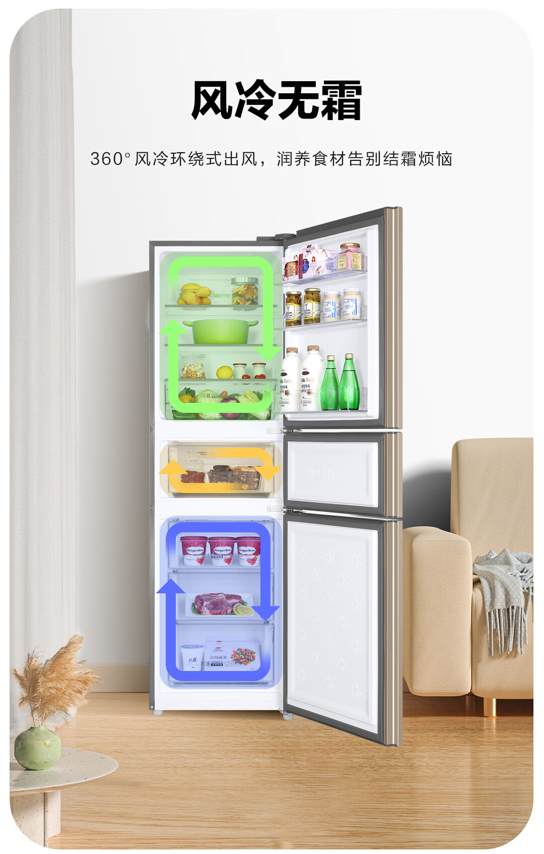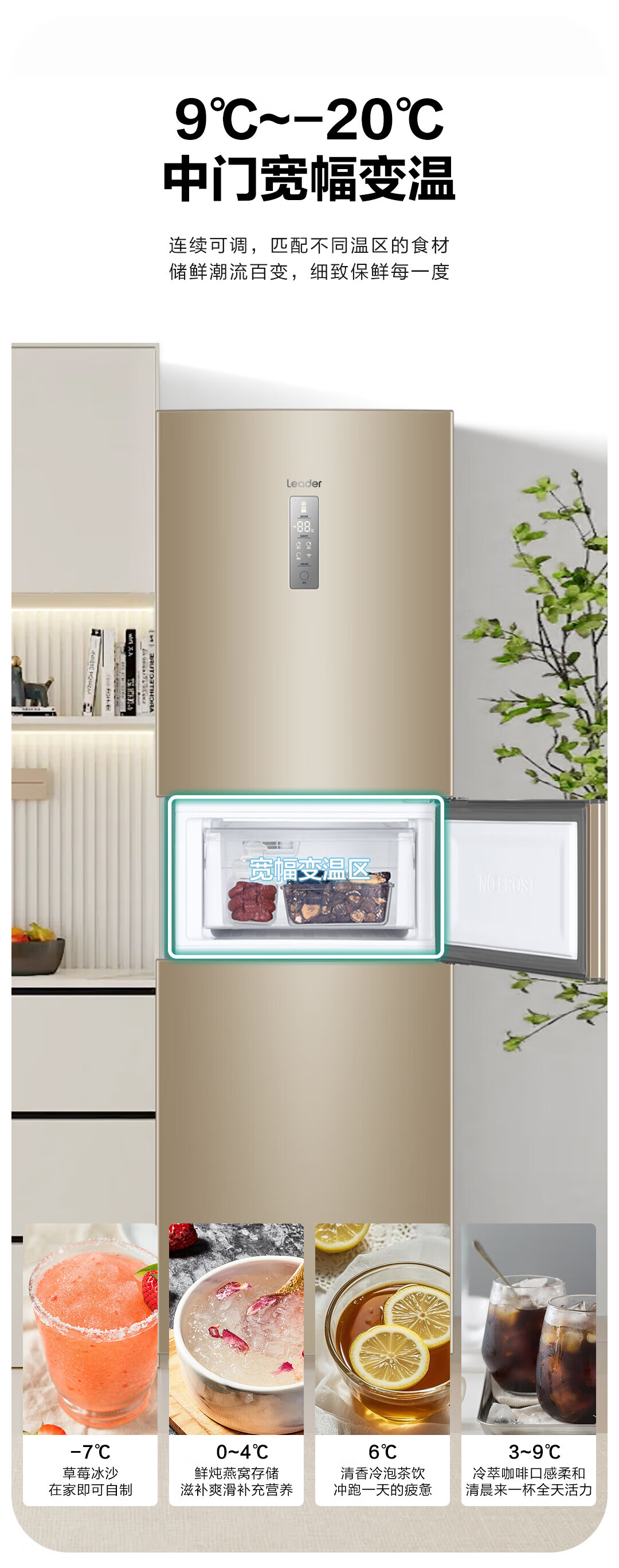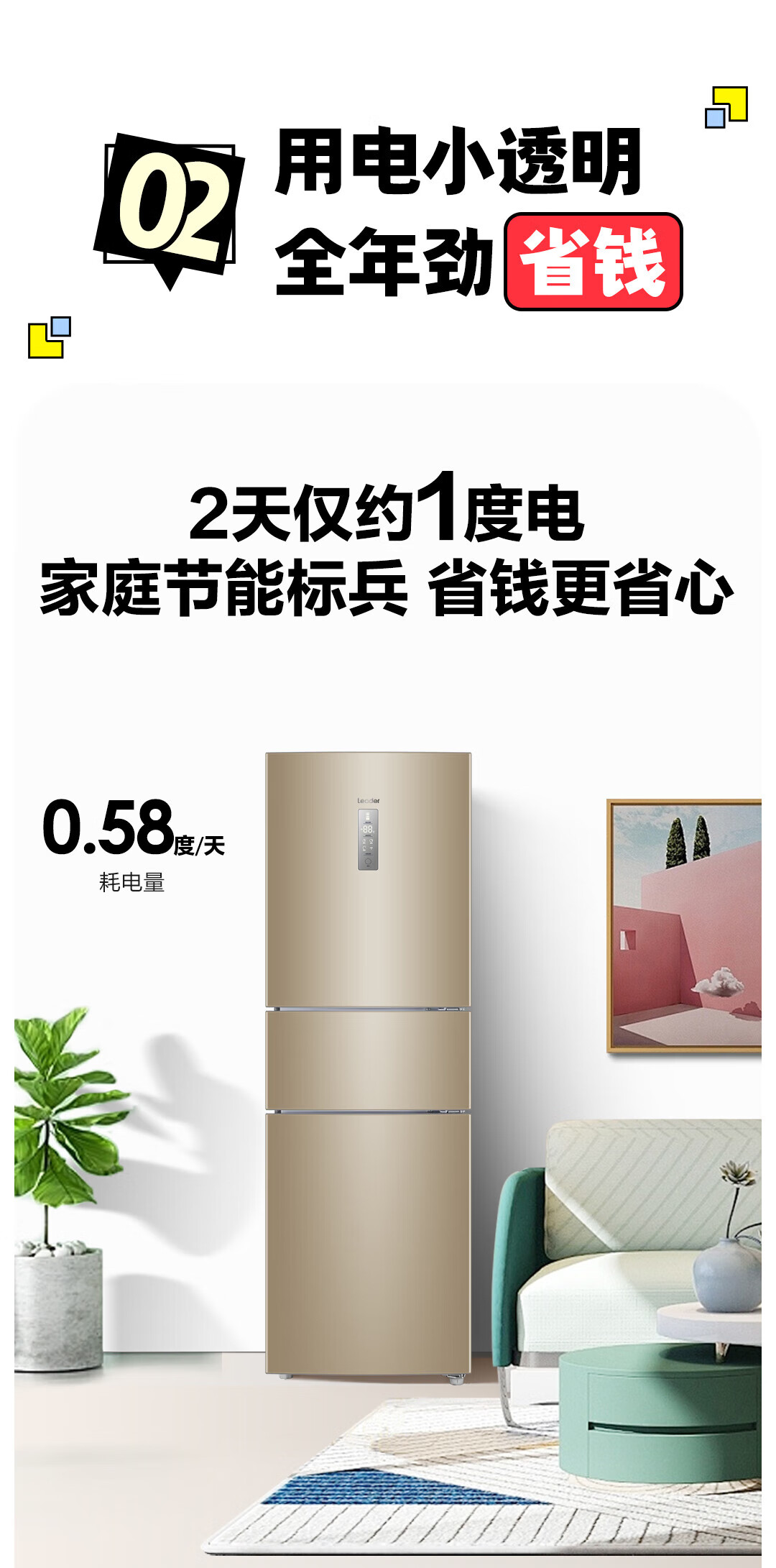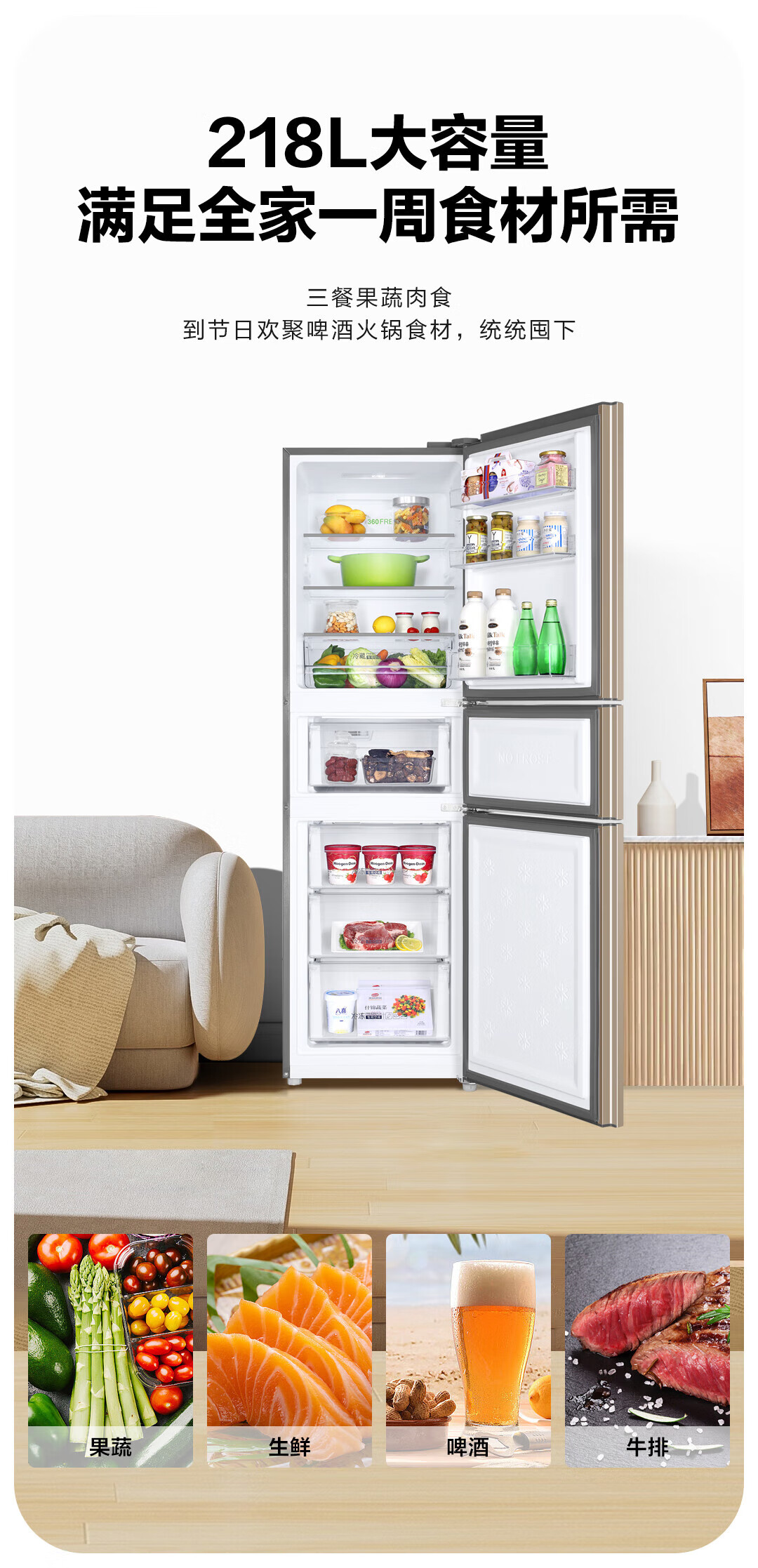 统帅(Leader)海尔出品三门电冰箱218升家用一级双变频巨省电中门宽幅变温风冷无霜适用宿舍租房办公室国家补贴 一级变频+宽幅变温+风冷无霜218L