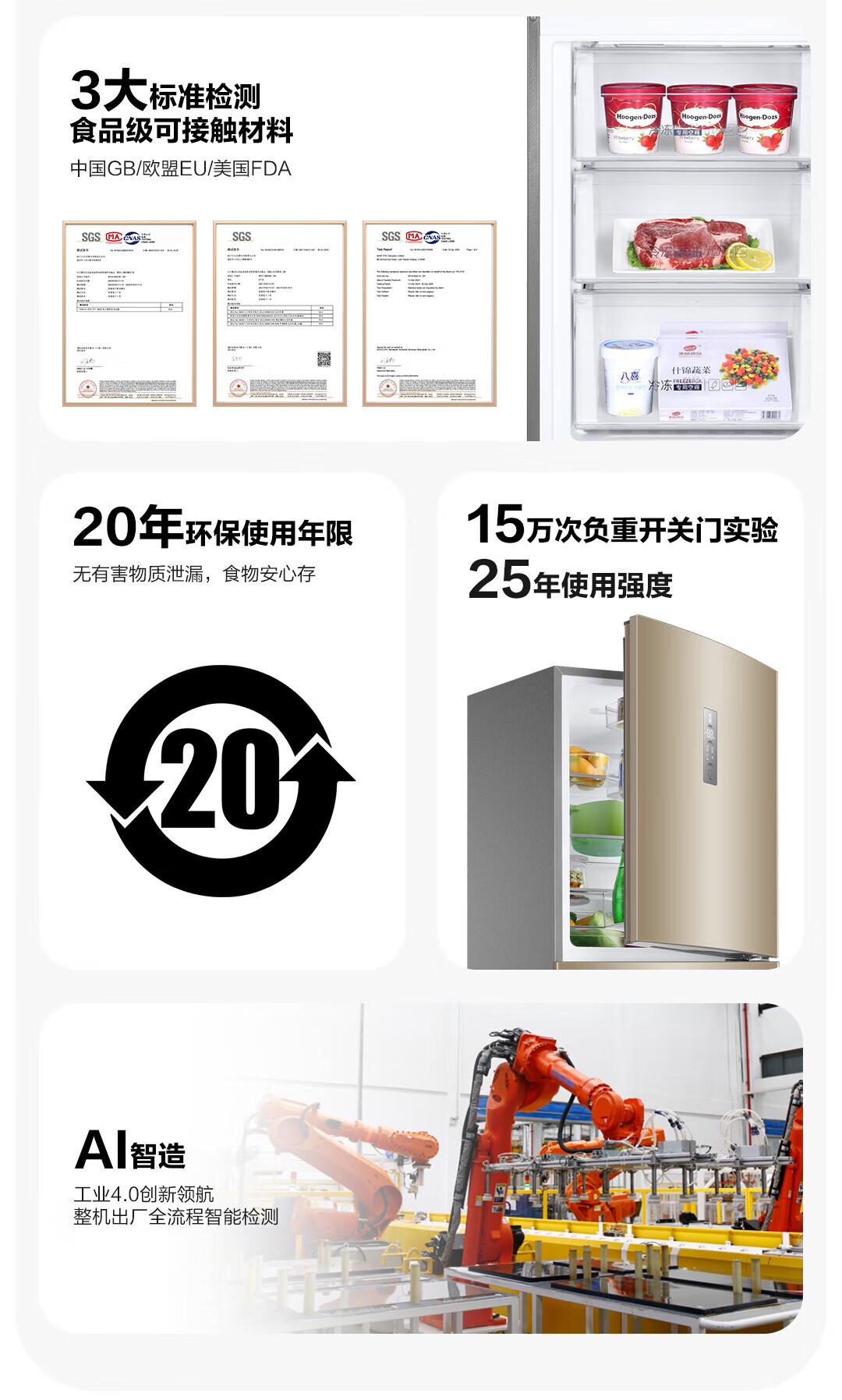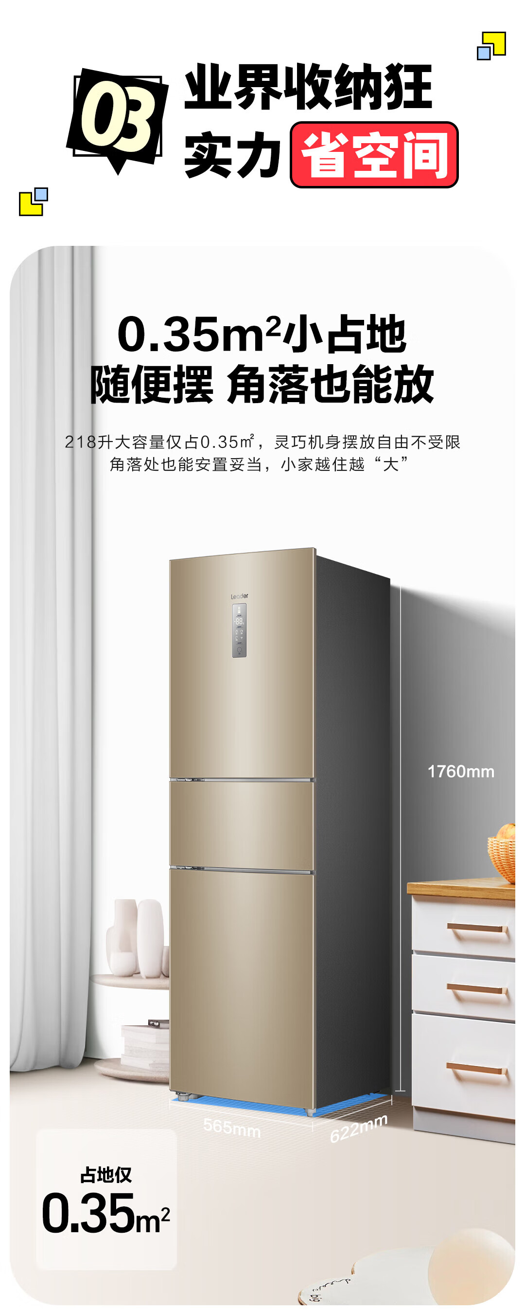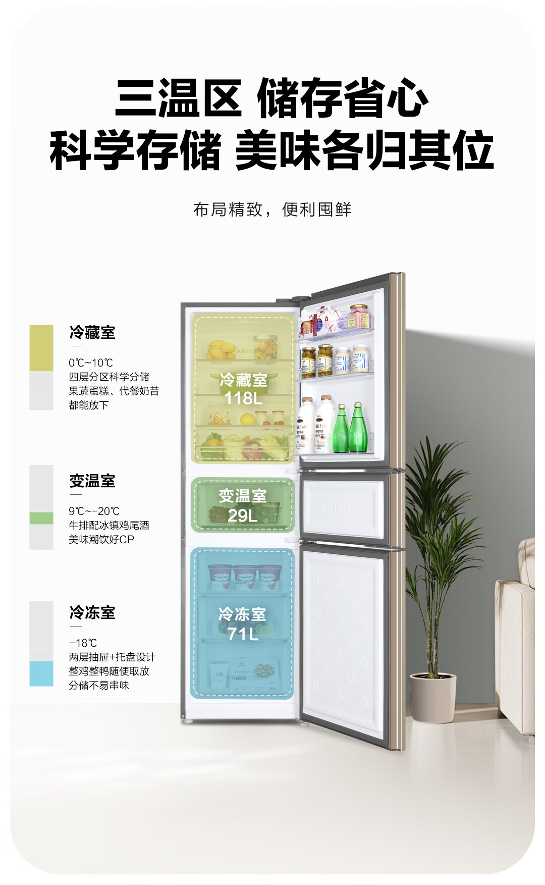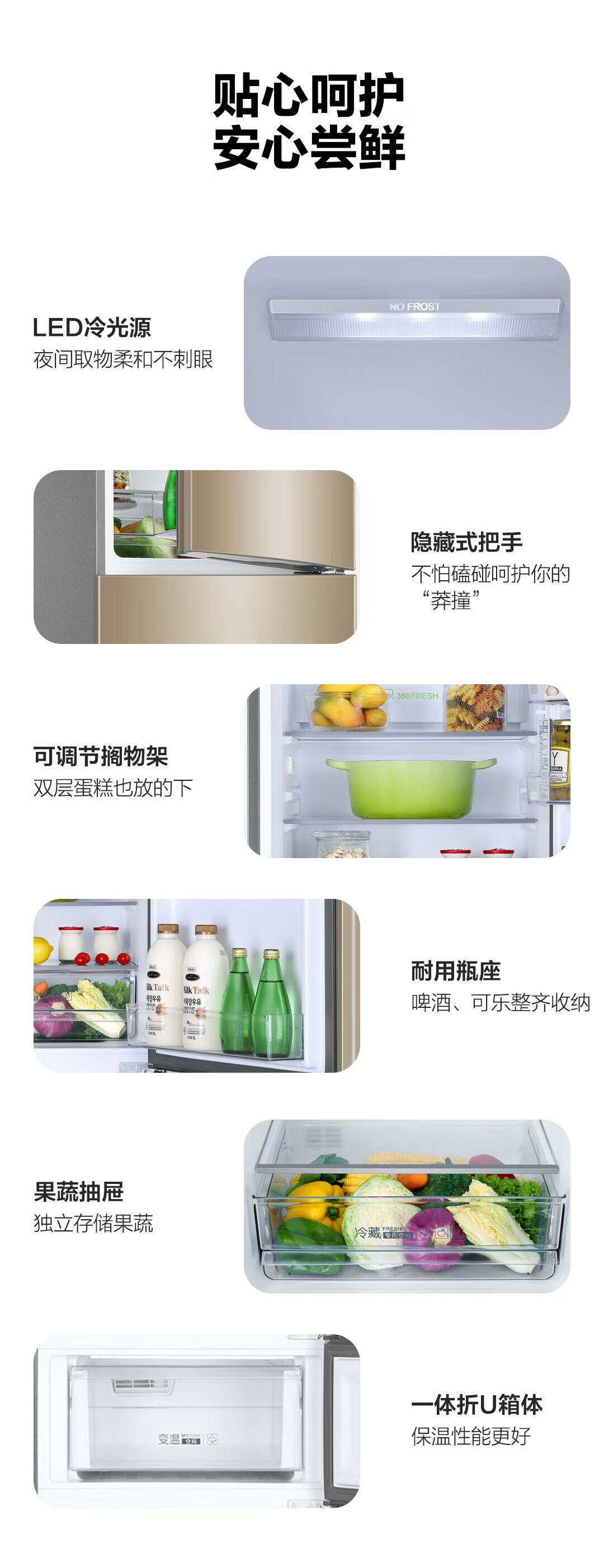 统帅(Leader)海尔出品三门电冰箱218升家用一级双变频巨省电中门宽幅变温风冷无霜适用宿舍租房办公室国家补贴 一级变频+宽幅变温+风冷无霜218L