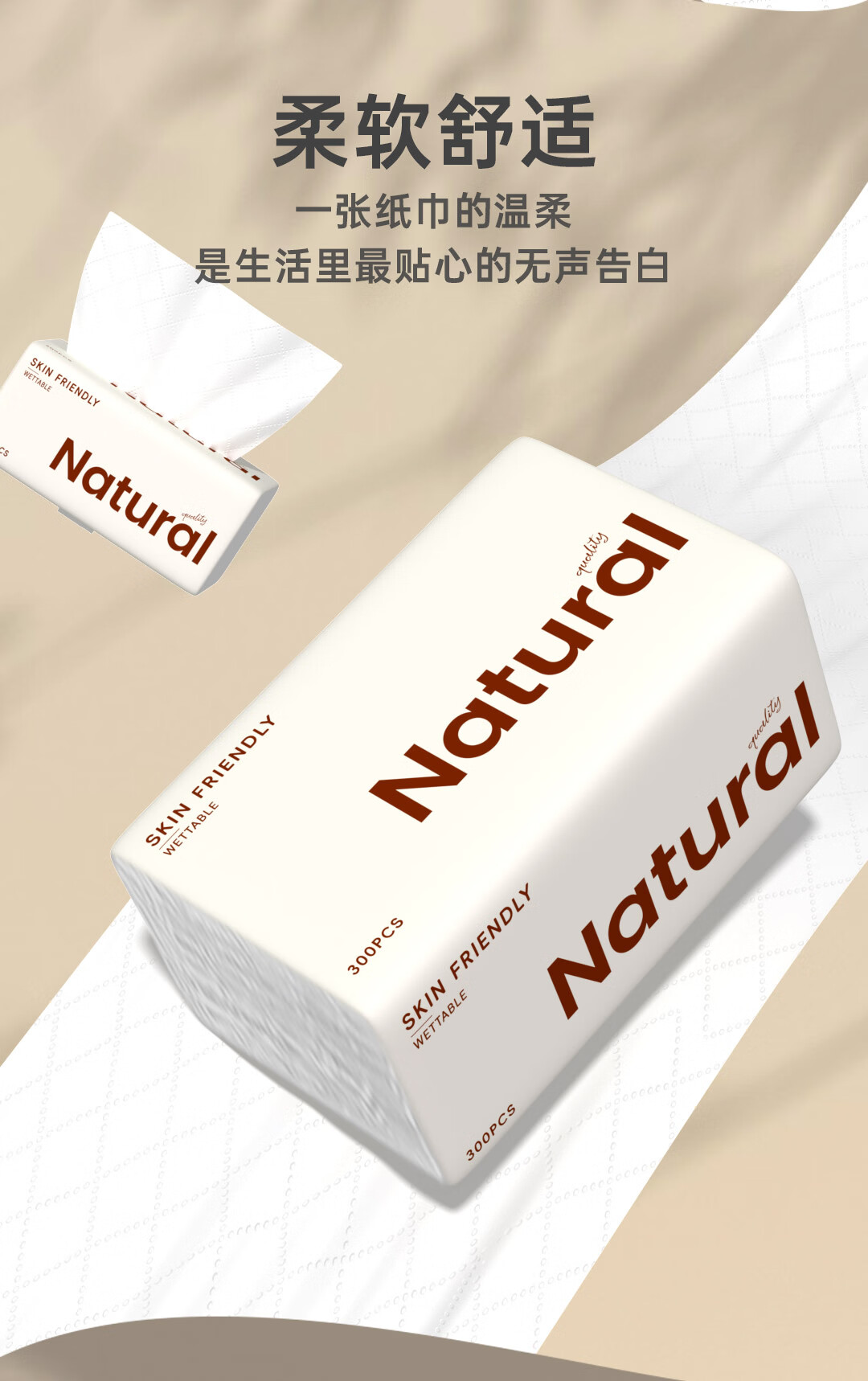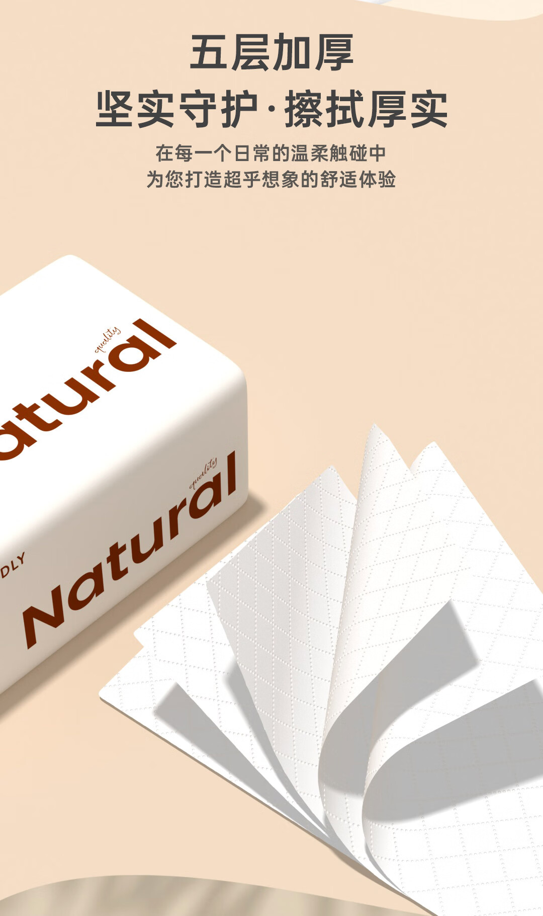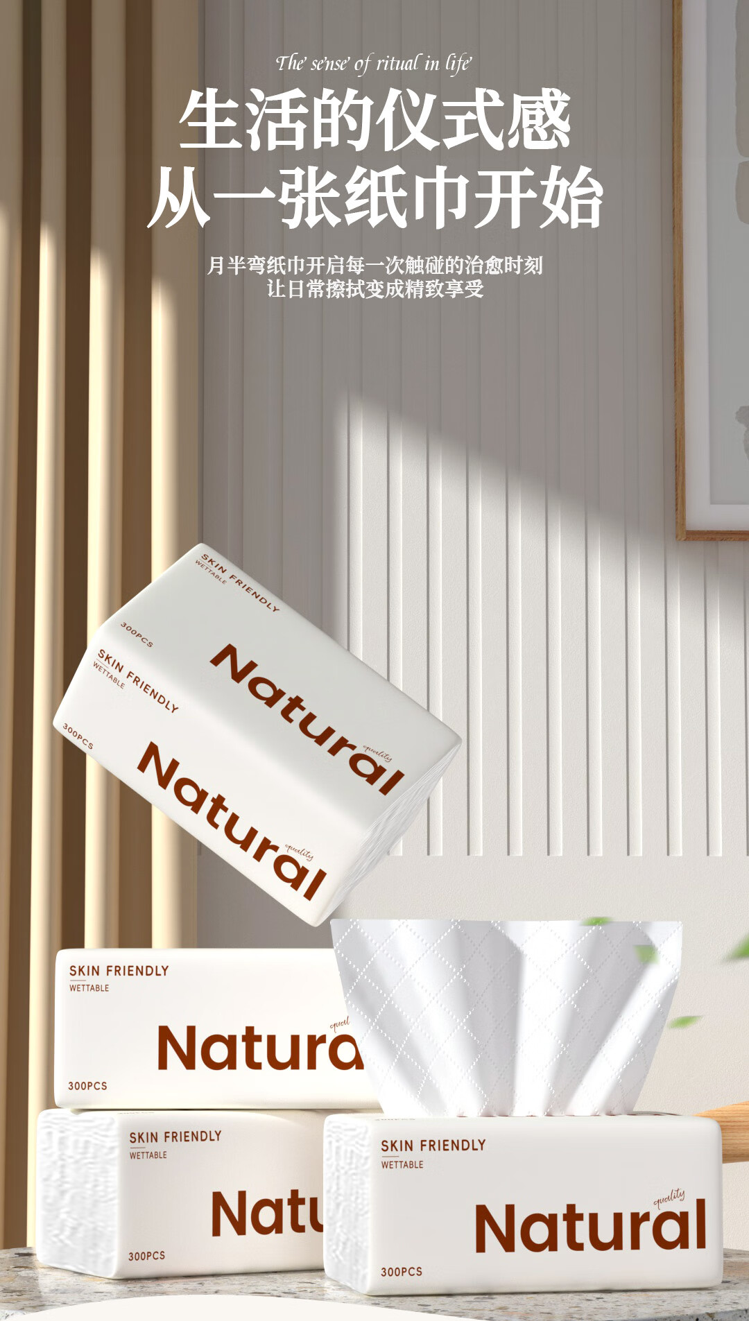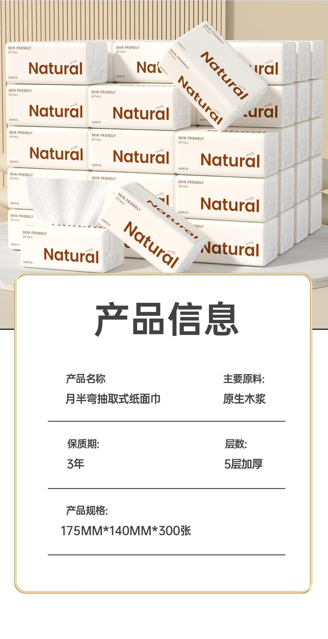 月半弯原木自然抽纸5层300张60包家用餐巾纸巾面巾纸卫生纸厕纸整箱批发