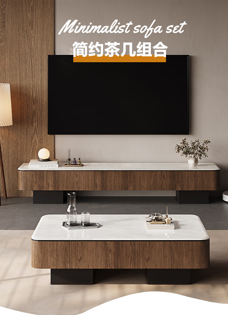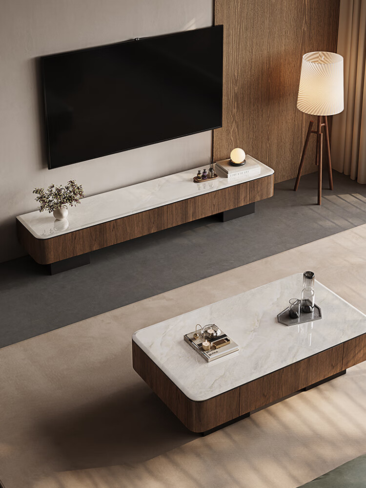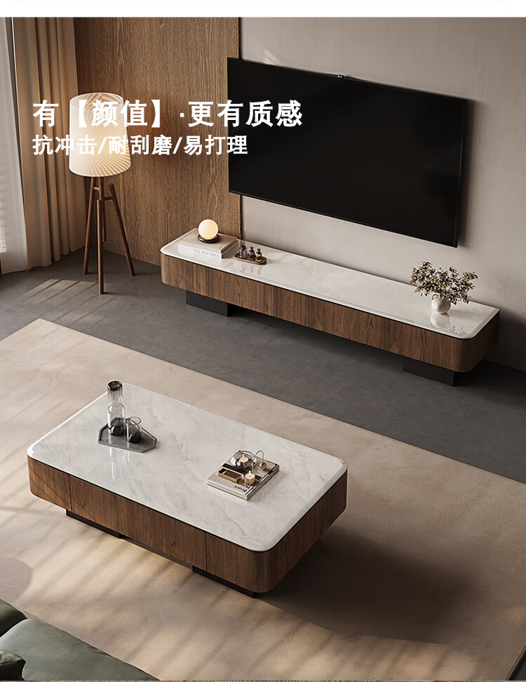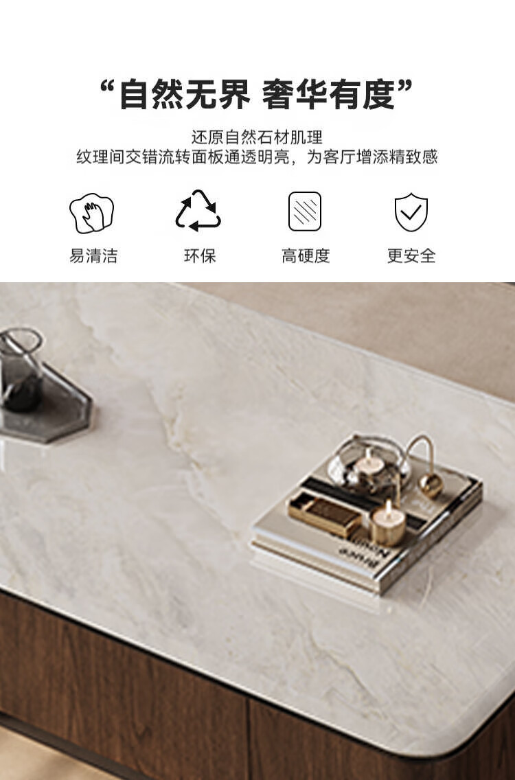 布特莱顿新款意式极简家用落地电视柜组合轻奢高级感大小户型微晶石茶几 1.25M微晶石茶几
