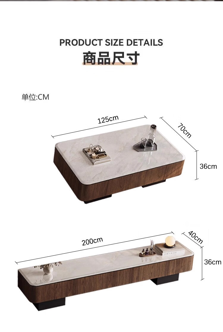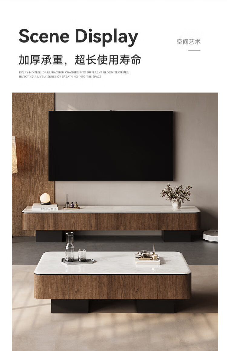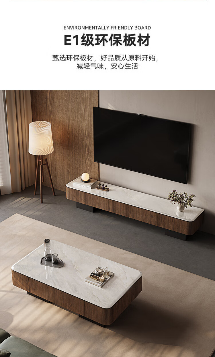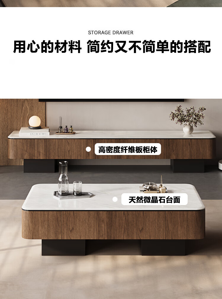 布特莱顿新款意式极简家用落地电视柜组合轻奢高级感大小户型微晶石茶几 1.25M微晶石茶几