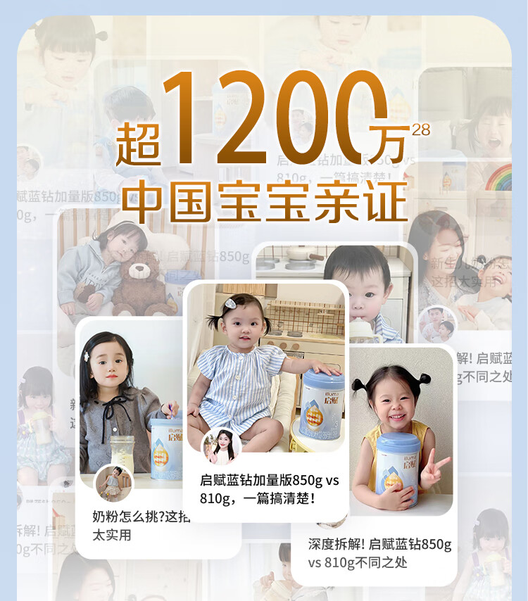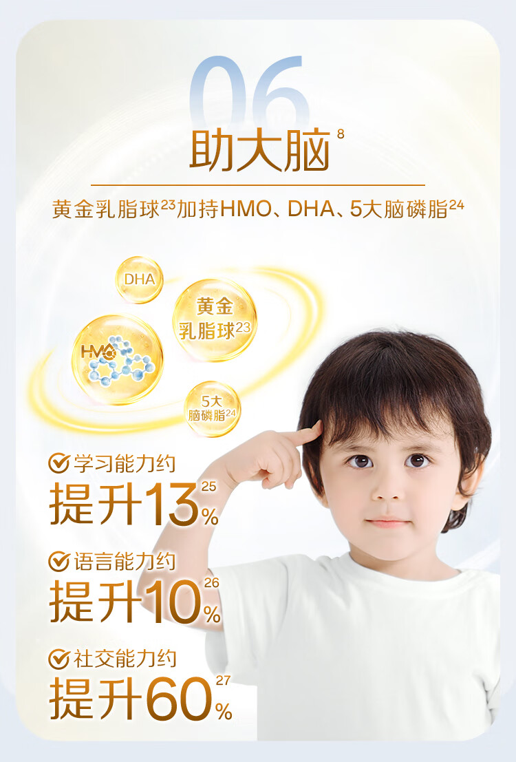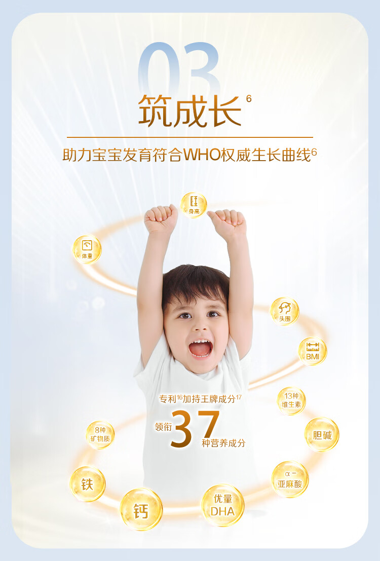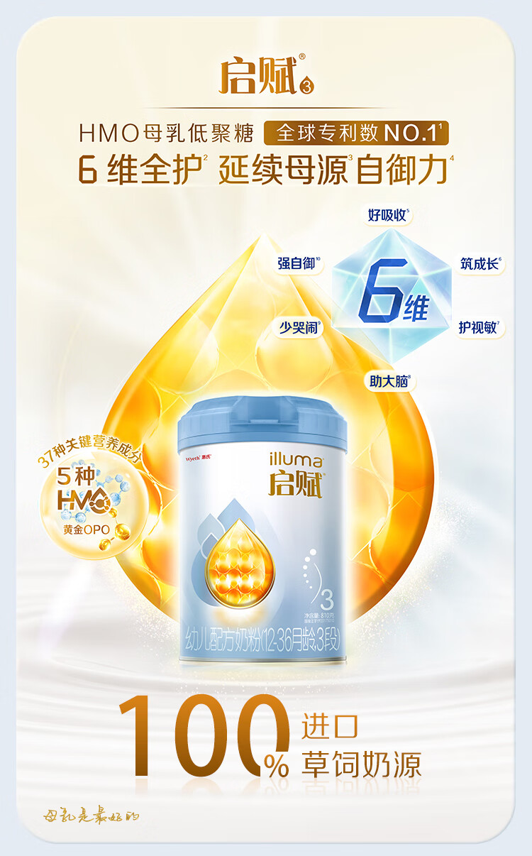 惠氏(Wyeth)启赋蓝钻HMO幼儿配方奶粉3段(12-36月)810g*6罐