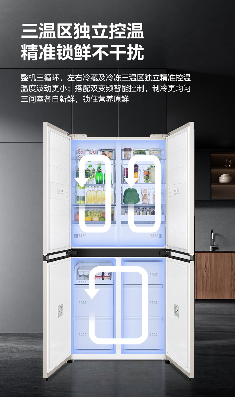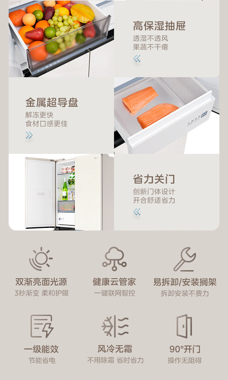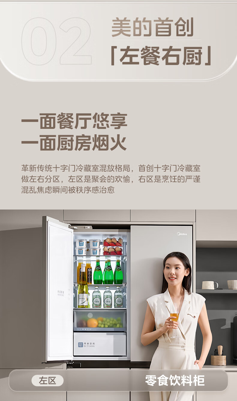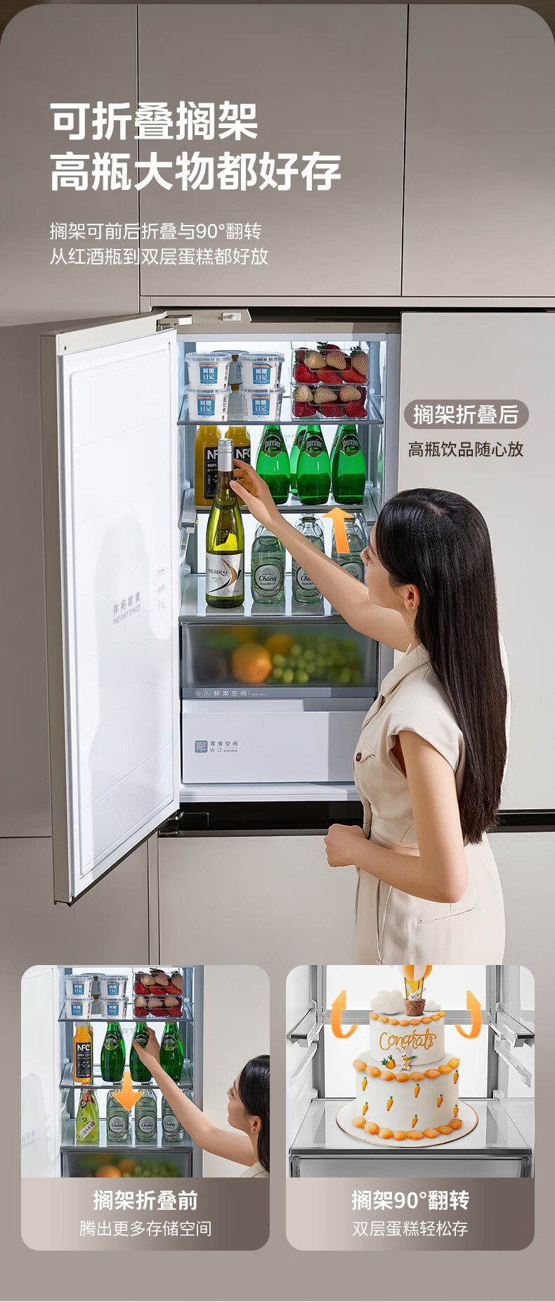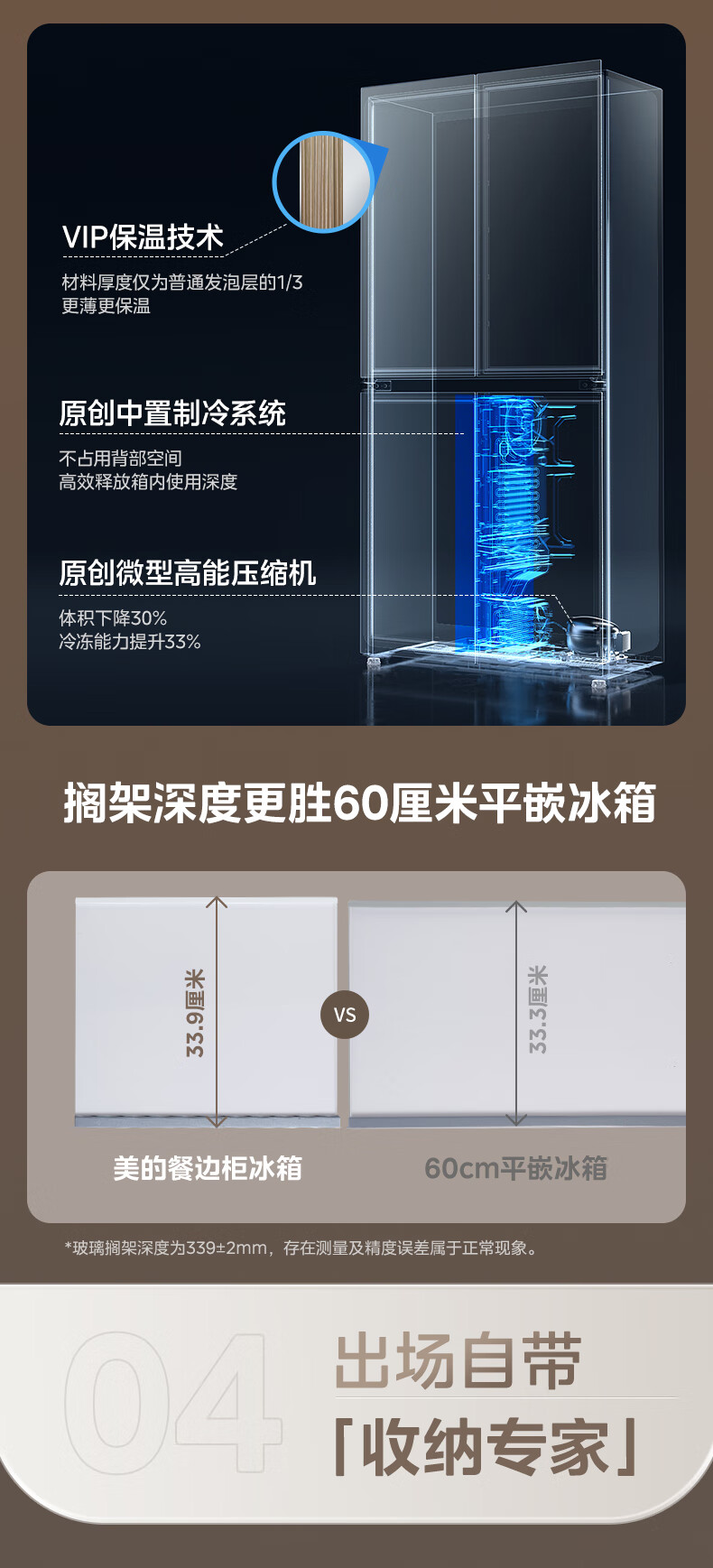 美的(Midea)首创45cm超薄嵌入餐边柜家用客厅冰箱左餐右厨大容量底部散热十字四开门国家补贴BCD-427WUSGPZM