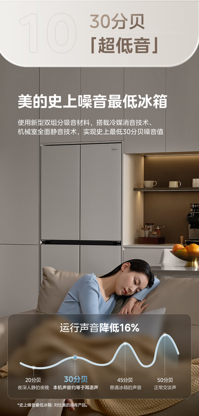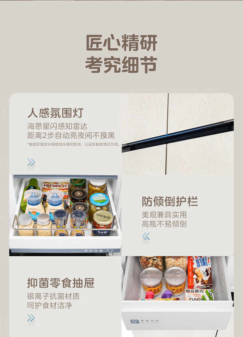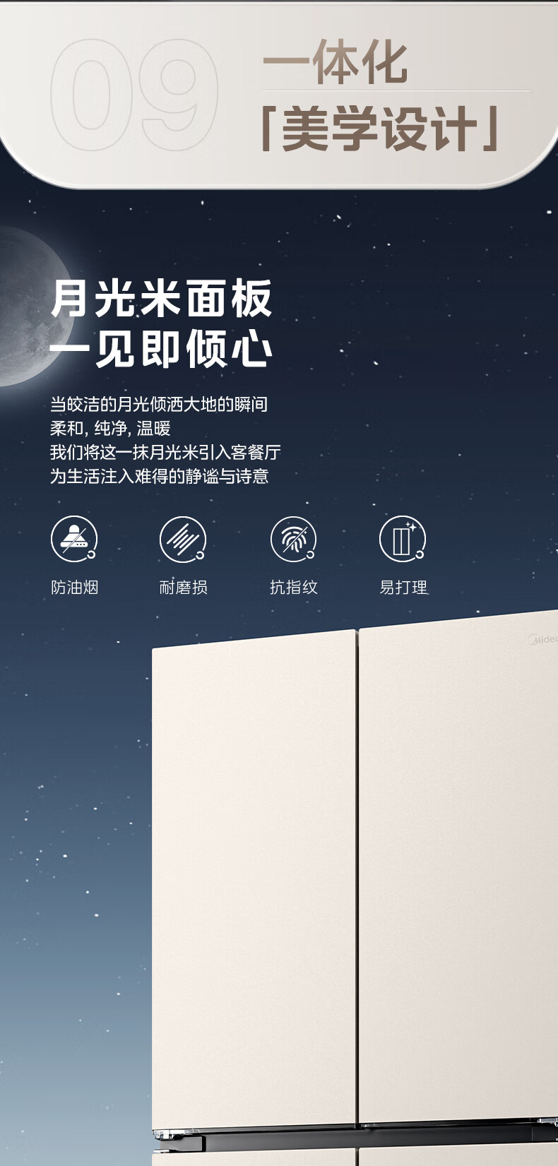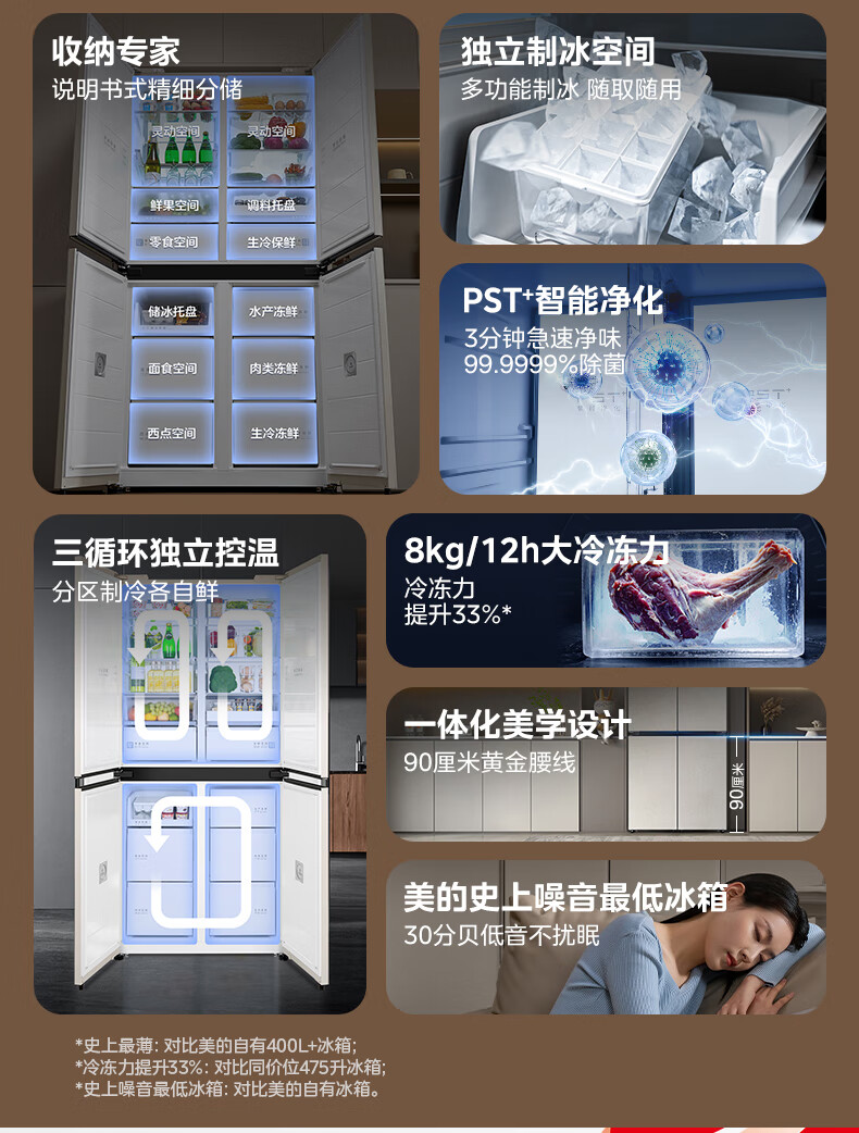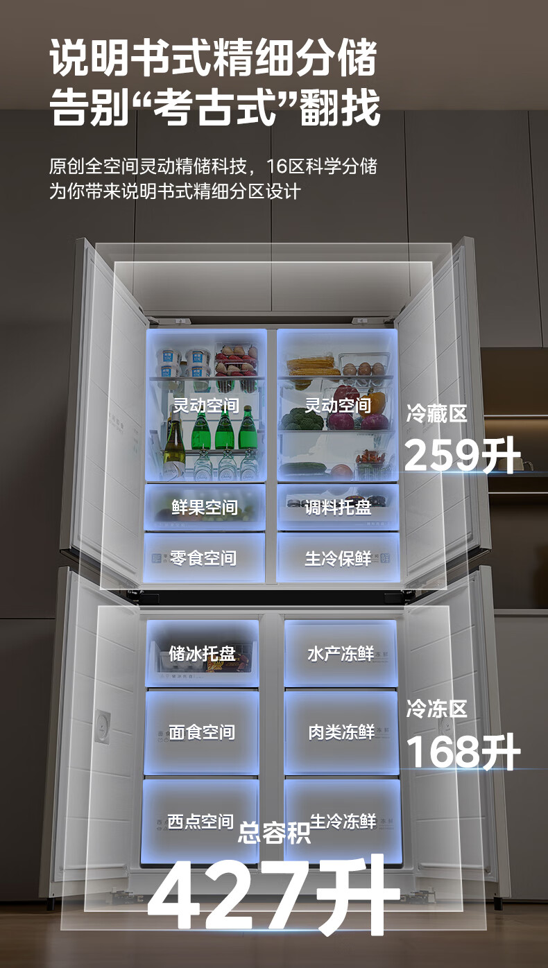 美的(Midea)首创45cm超薄嵌入餐边柜家用客厅冰箱左餐右厨大容量底部散热十字四开门国家补贴BCD-427WUSGPZM