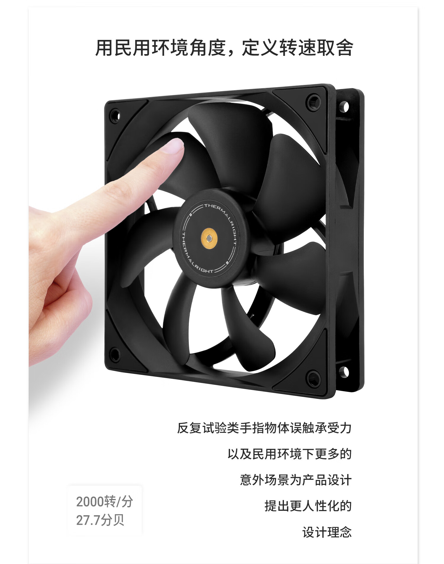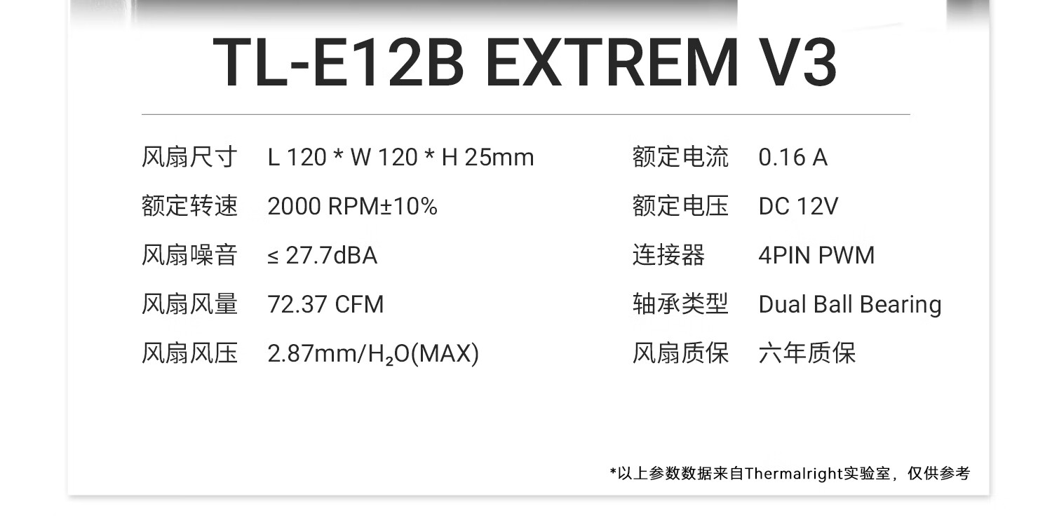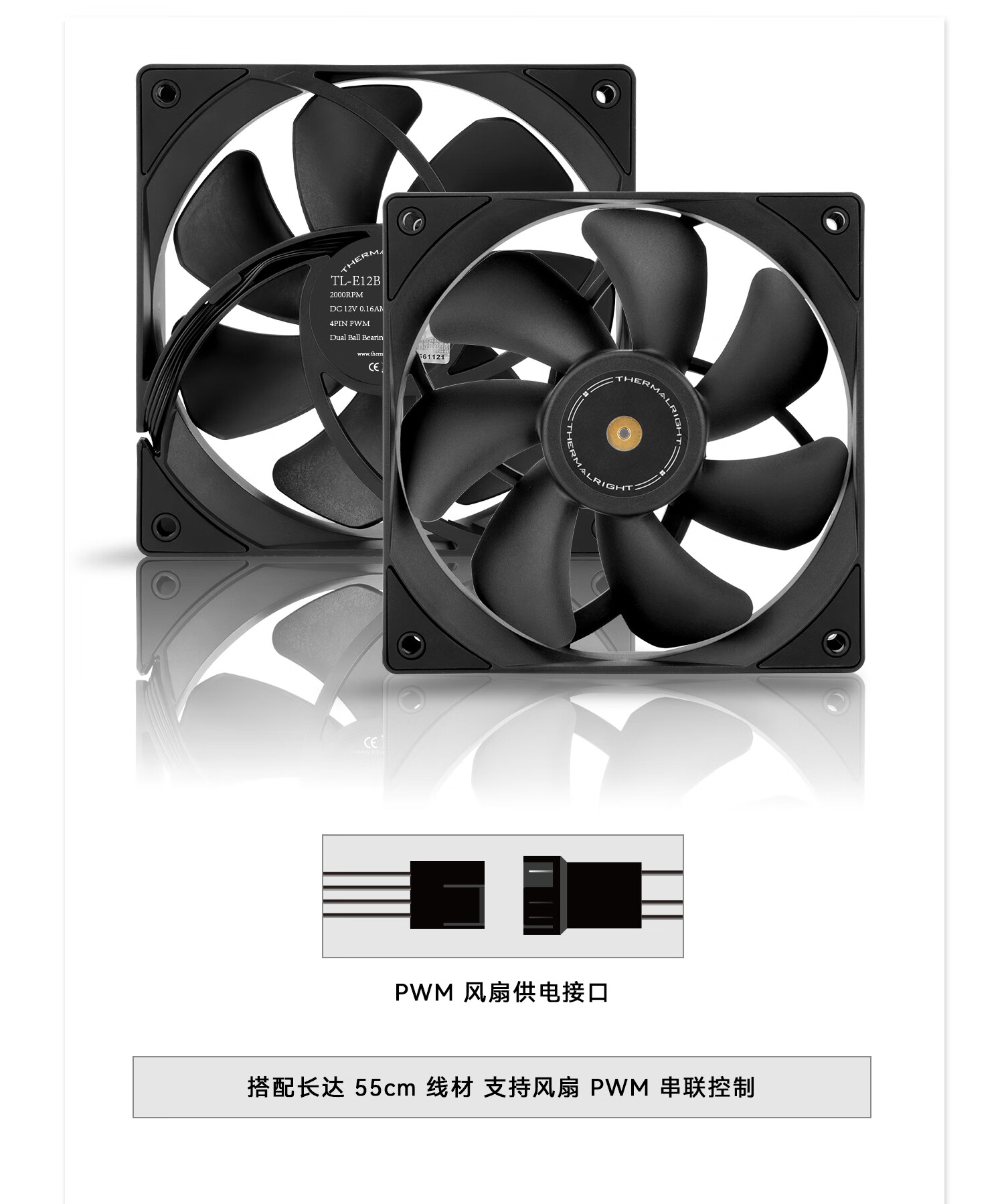 Thermalright(利民) TL-E12B EXTREM V3 12cm PWM机箱散热风扇 2000转速 双滚珠轴承 4PIN PWM