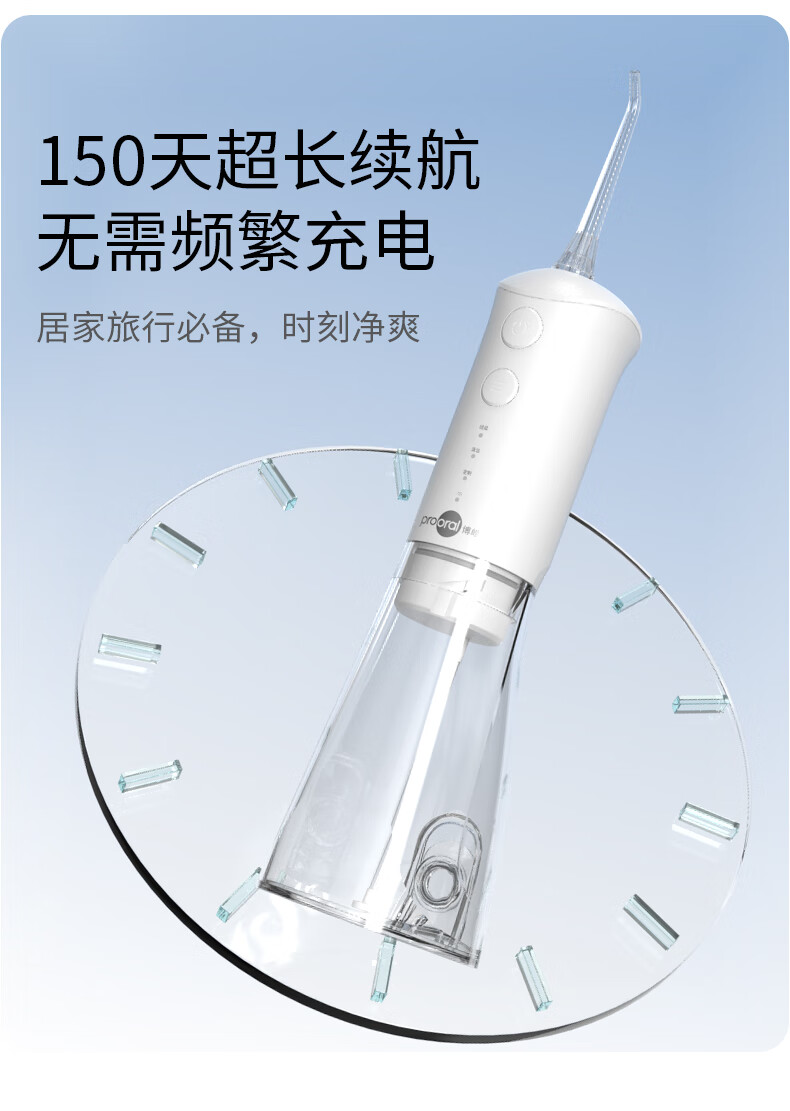 博皓(prooral)冲牙器便携式洗牙器家用牙齿冲洗器洁牙器水牙线正畸清洁器除牙垢预防牙结石 送朋友父母礼物 F38 象牙白 标配 2支喷头
