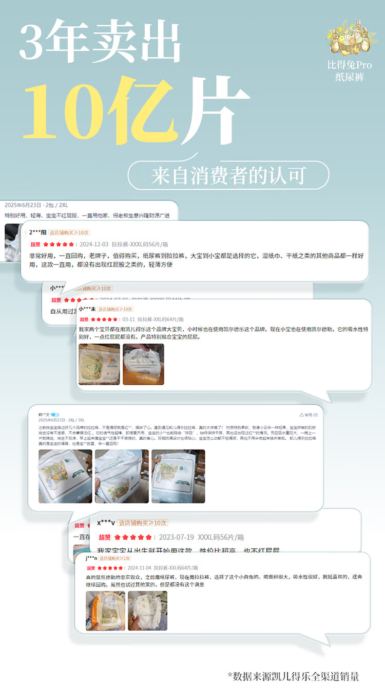 凯儿得乐比得兔拉拉裤XL72片(12-17kg)婴儿学步裤大码成长裤尿不湿