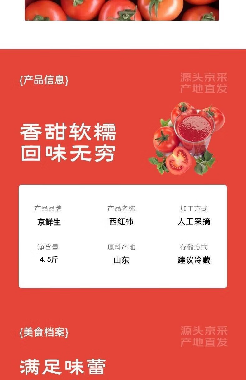 京鲜生 山东普罗旺斯西红柿 净重4.5斤 单果115g+ 沙瓤番茄 源头直发