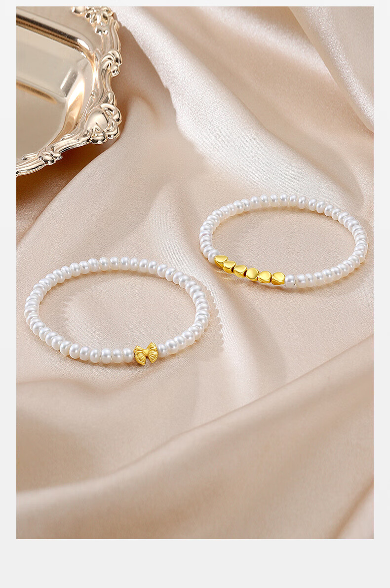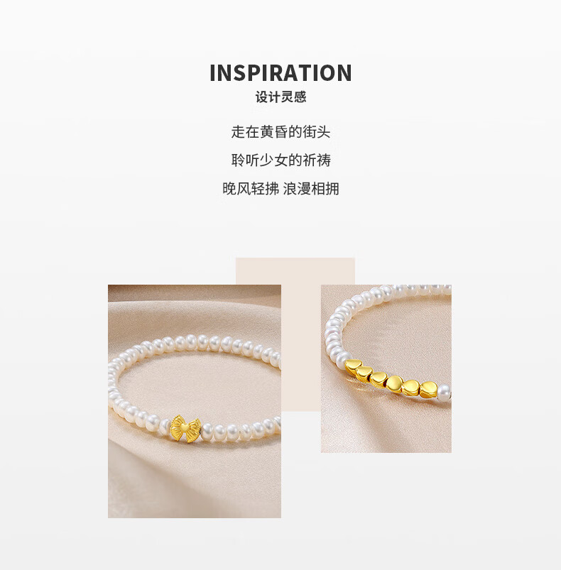 周大生足金珍珠手链淡水珠手串蝴蝶结黄金手饰送女生生日礼物