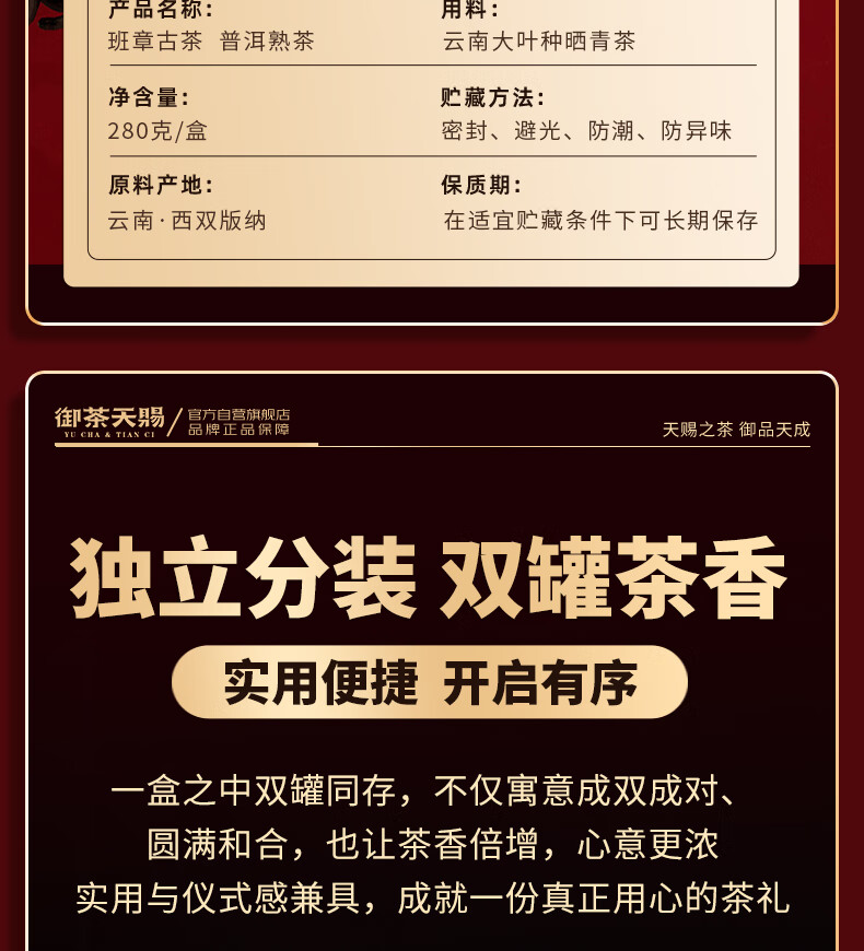 御茶天赐茶叶普洱茶熟茶10年以上老班章 古树茶熟普洱散茶礼盒装可泡陈皮