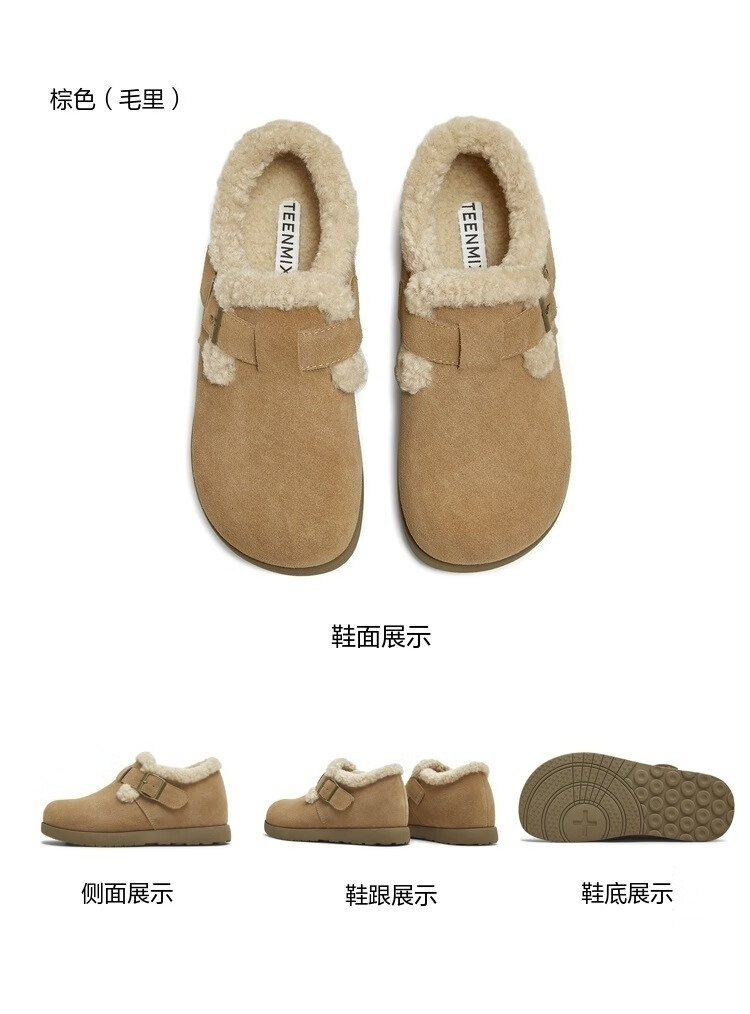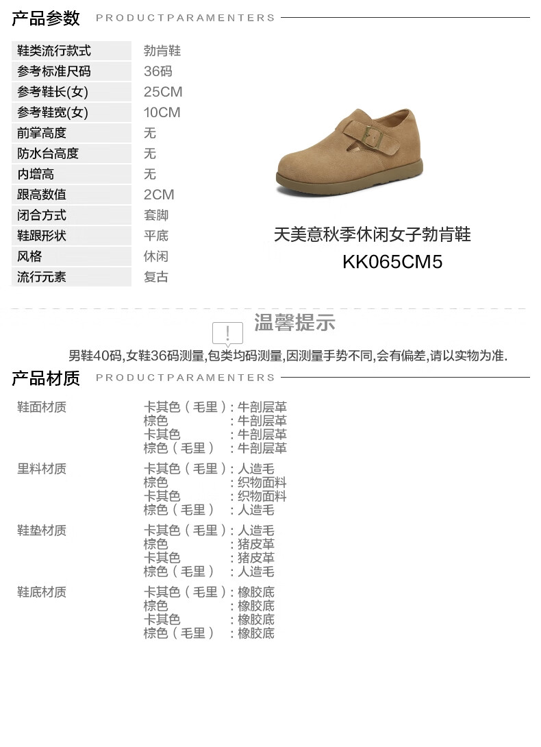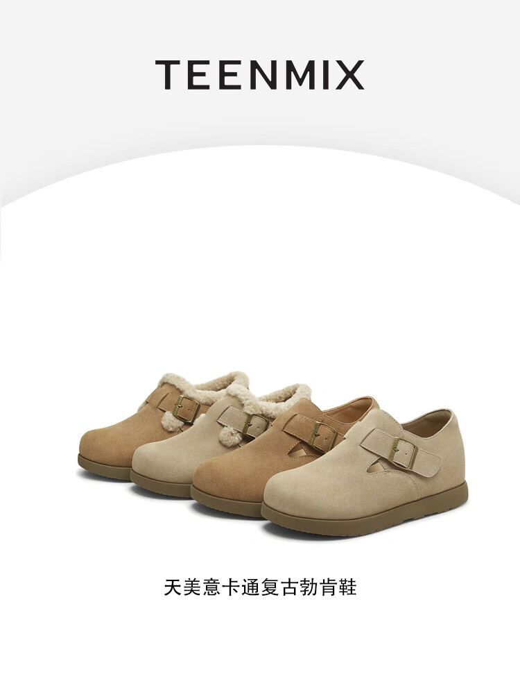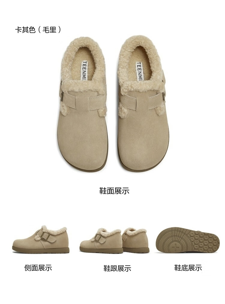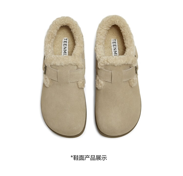 天美意勃肯鞋复古百搭休闲通勤一脚蹬半拖女鞋2025秋新款KK065CM5 卡其色(毛里) 36