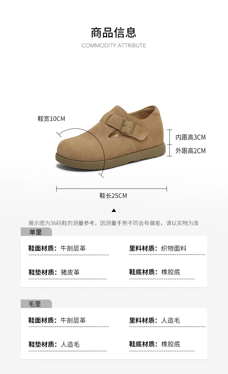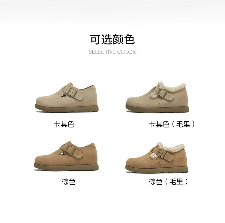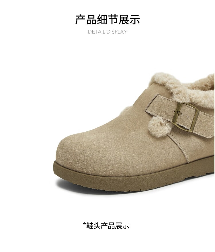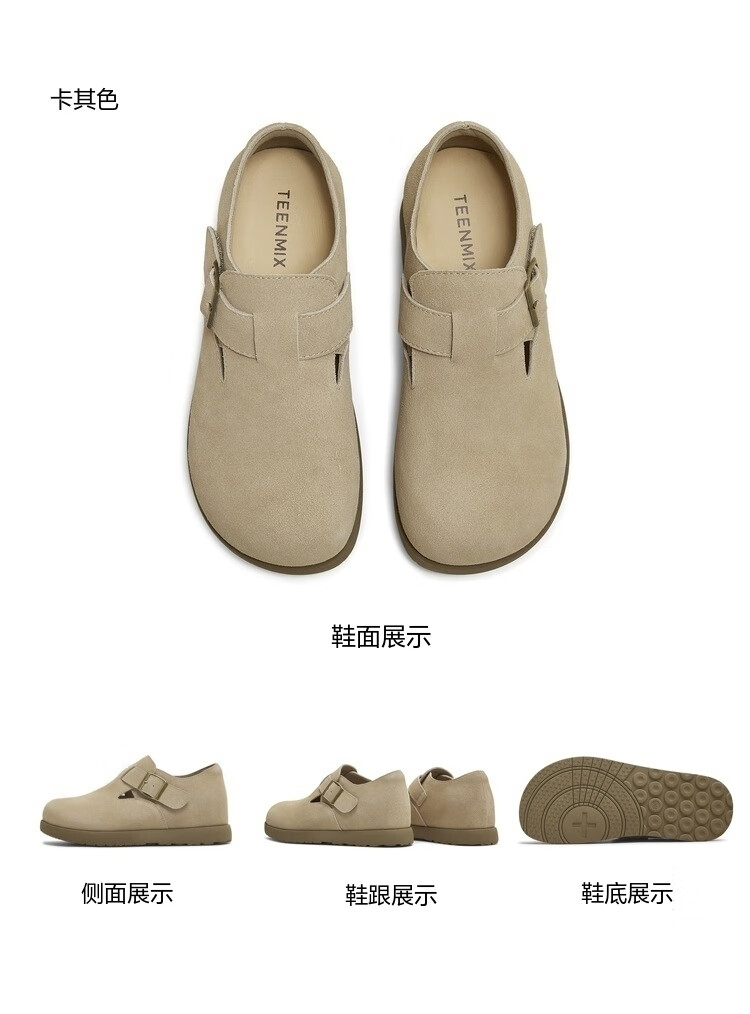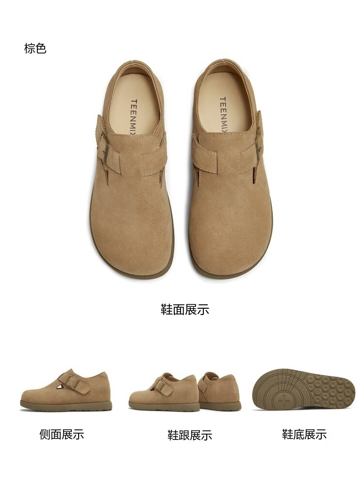 天美意勃肯鞋复古百搭休闲通勤一脚蹬半拖女鞋2025秋新款KK065CM5 卡其色(毛里) 36