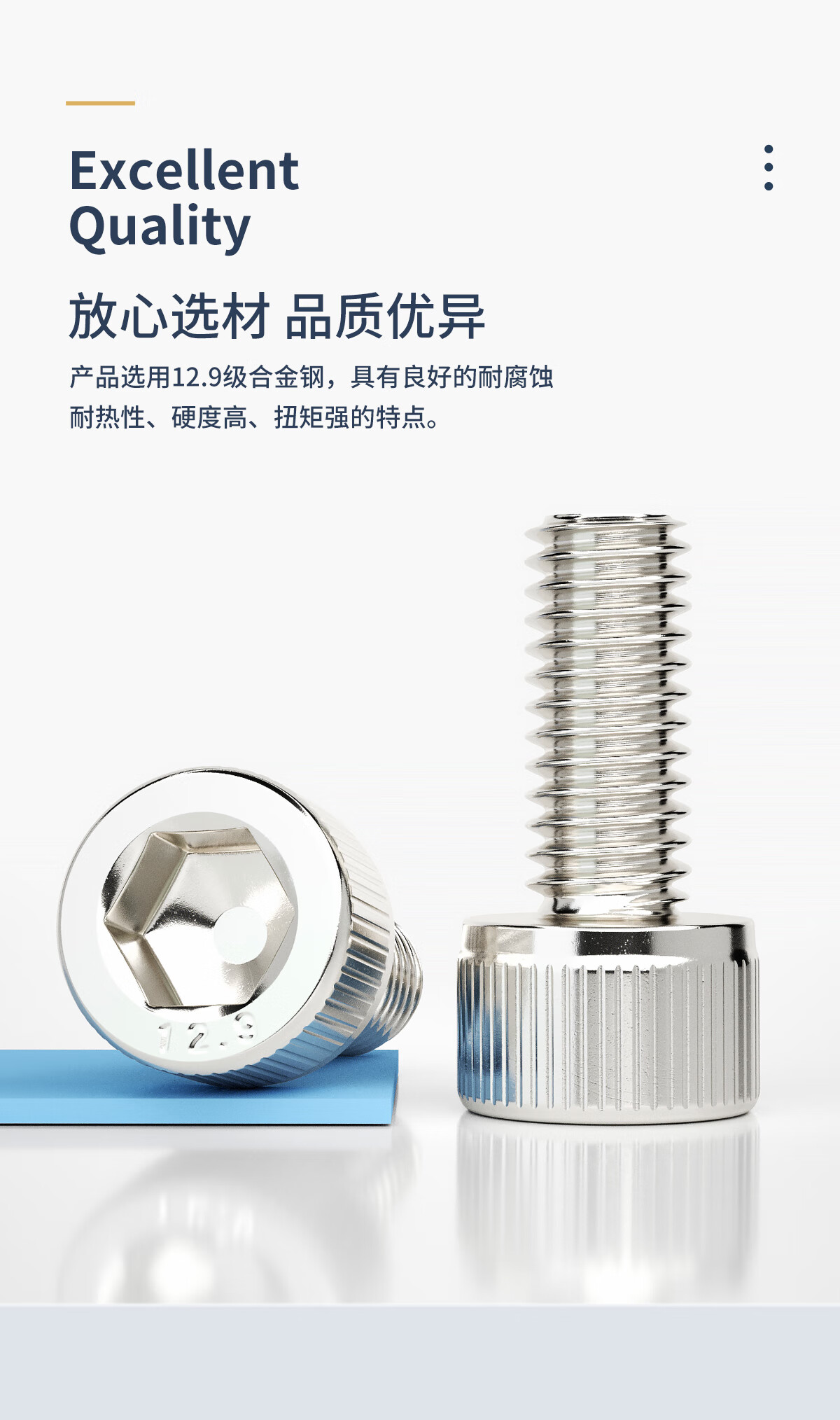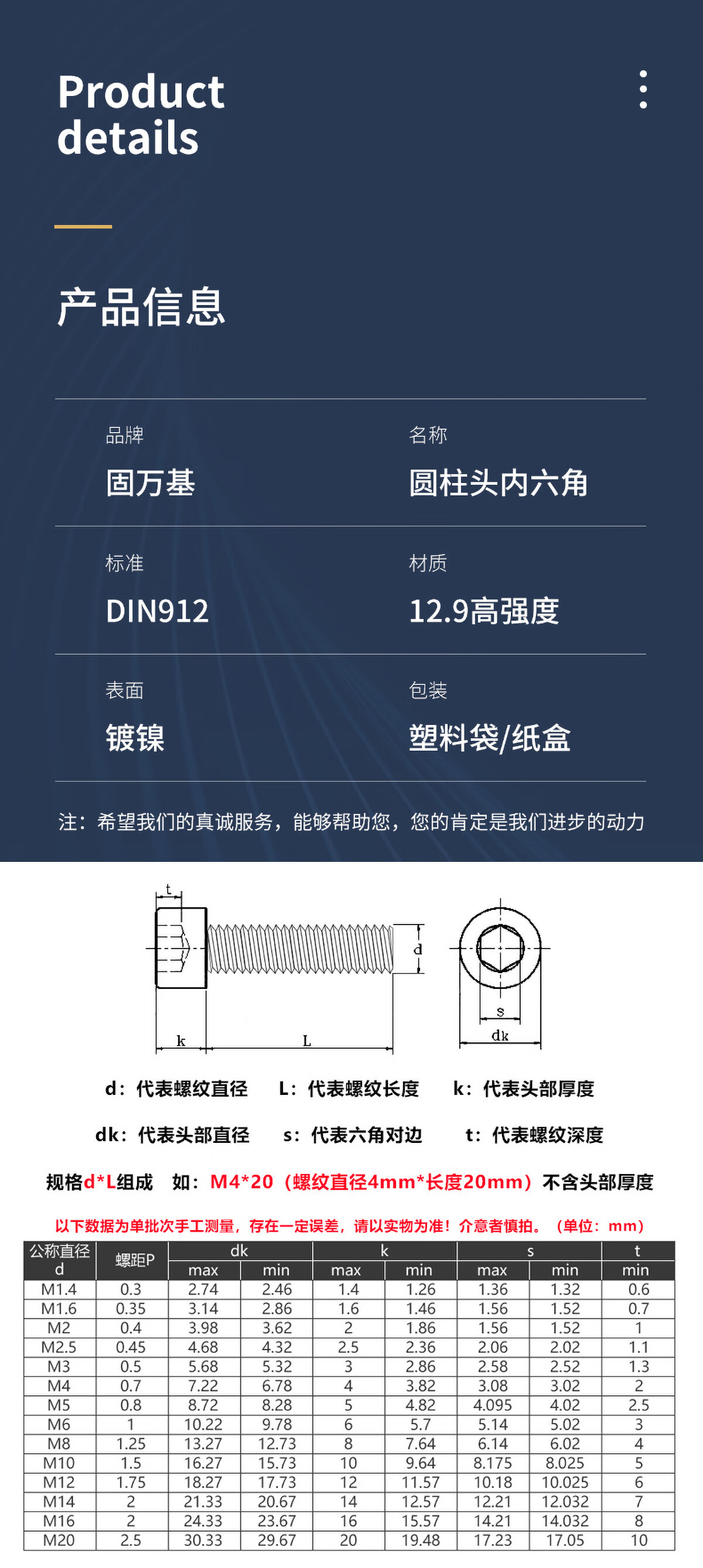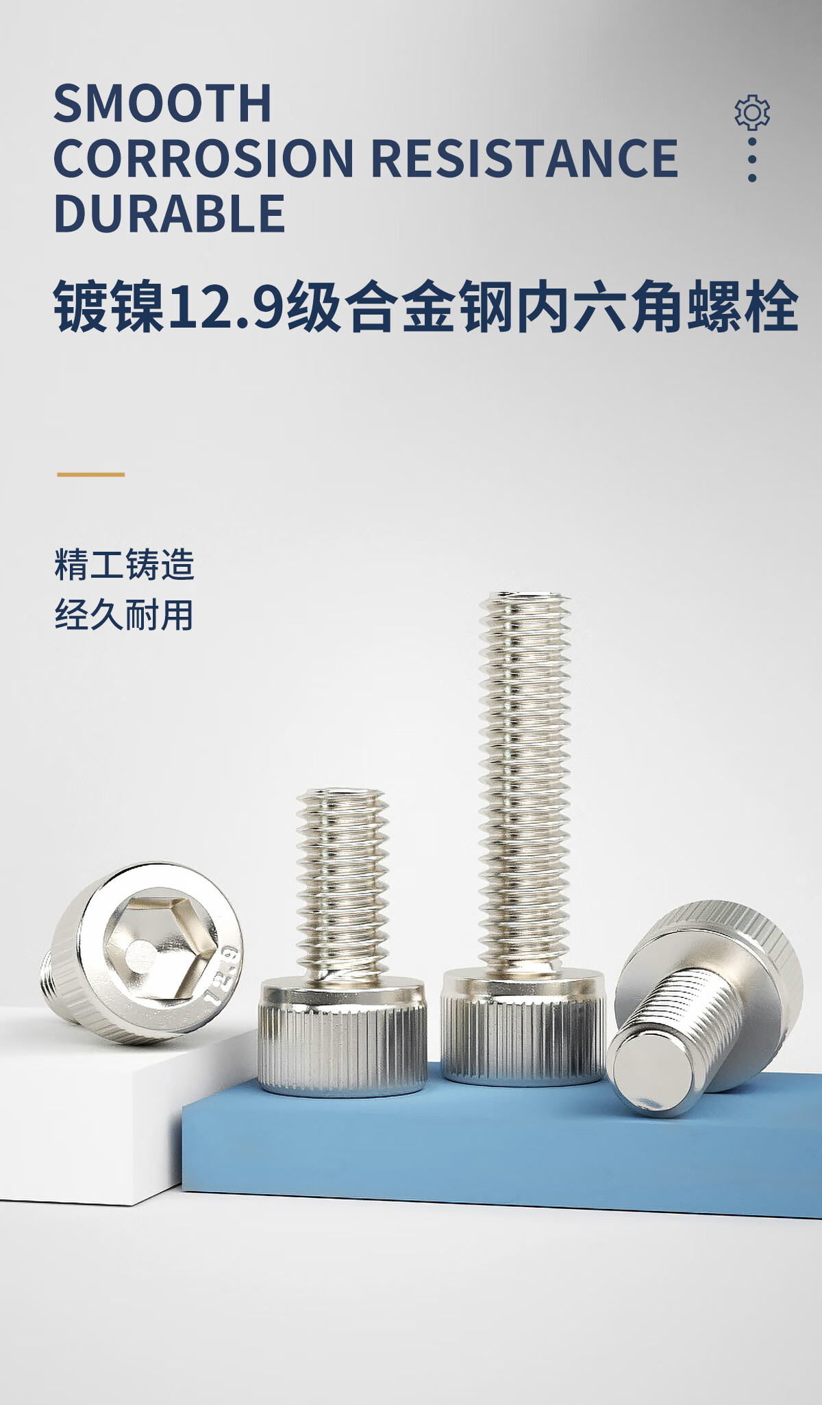 GUWANJI12.9级镀镍内六角螺丝钉圆柱头高强度DIN912杯头螺栓螺钉M1.6-M20 M3x30[50粒]