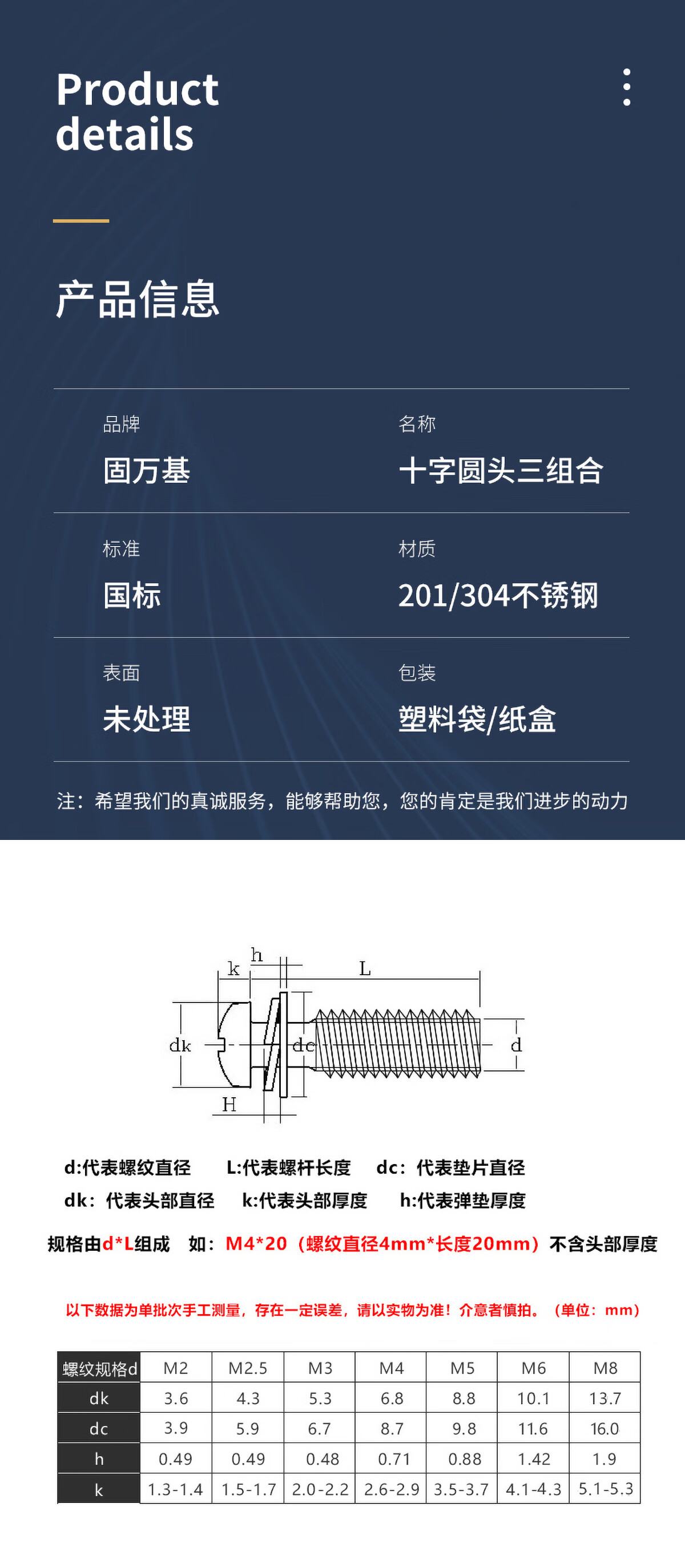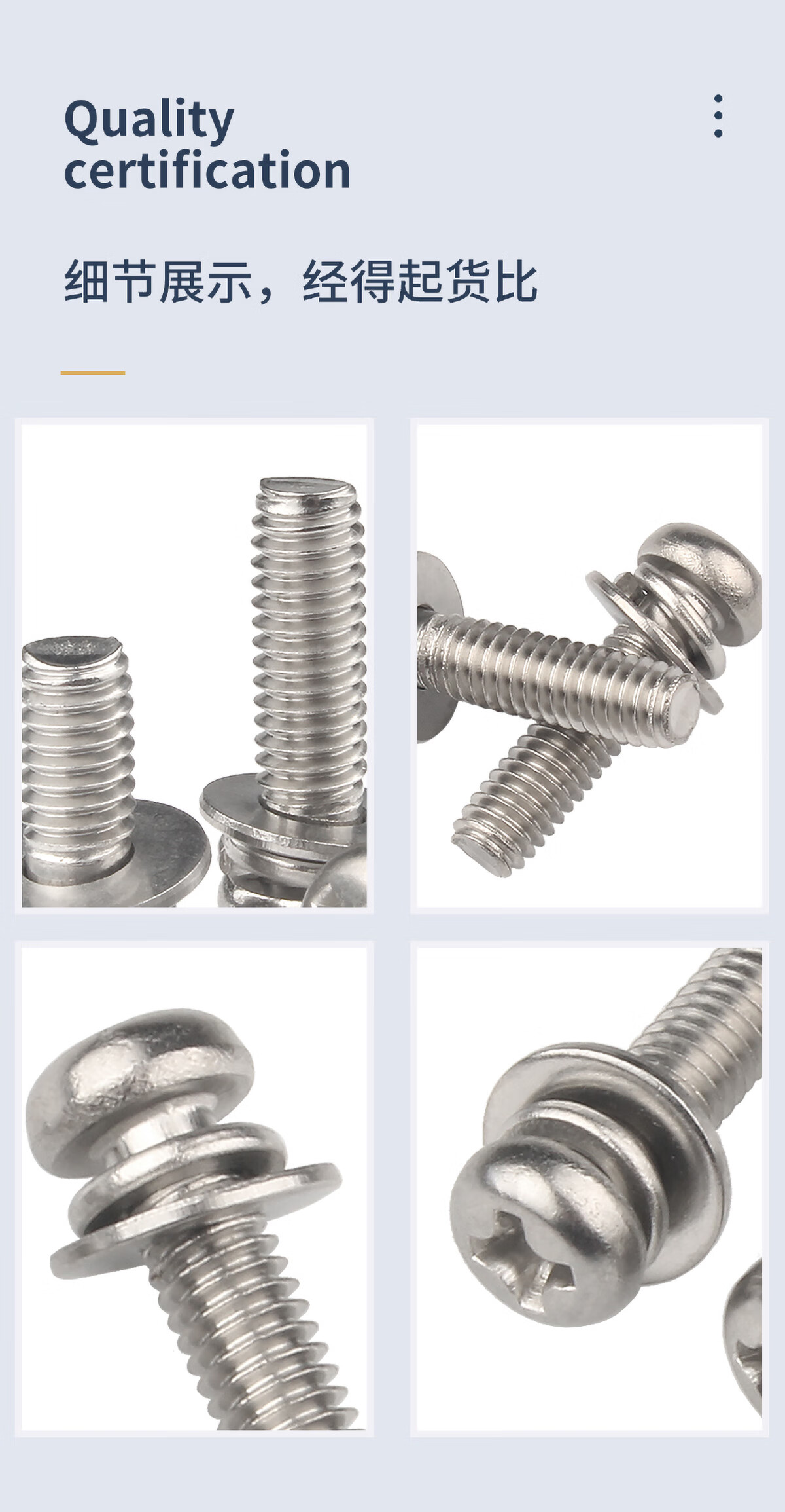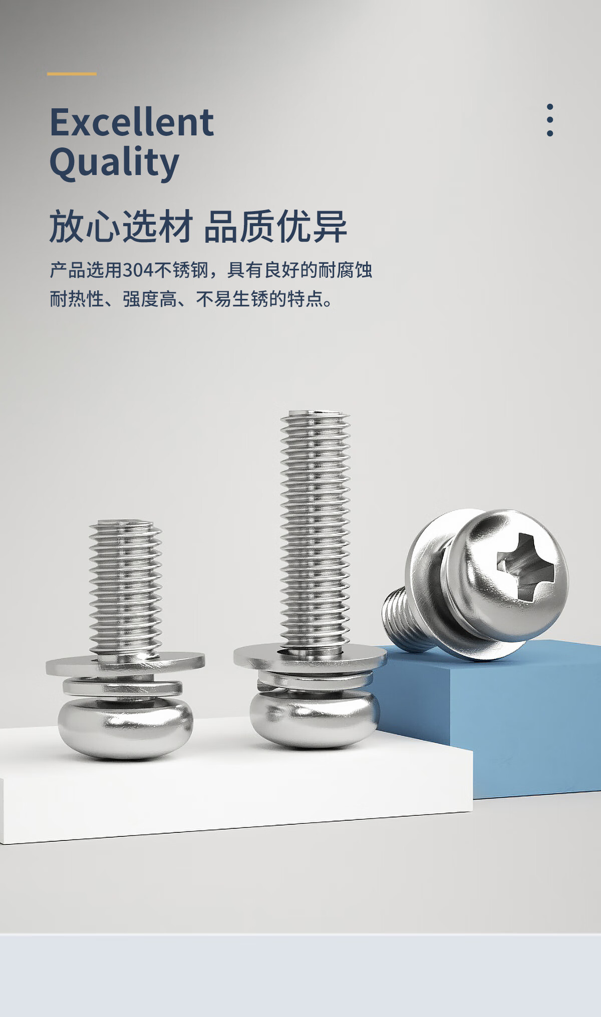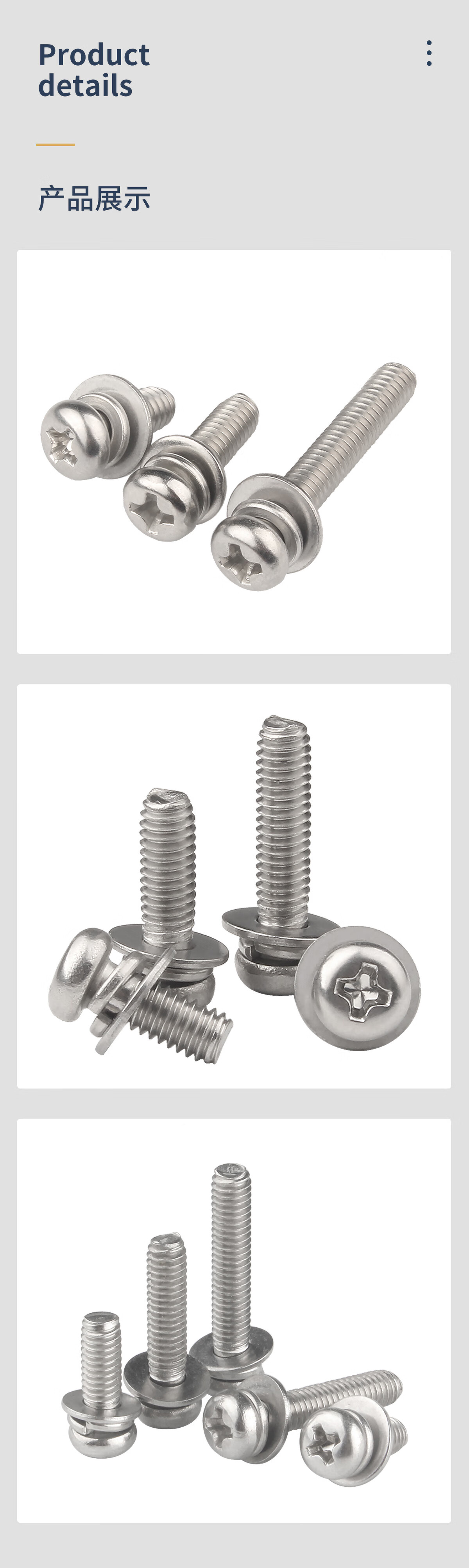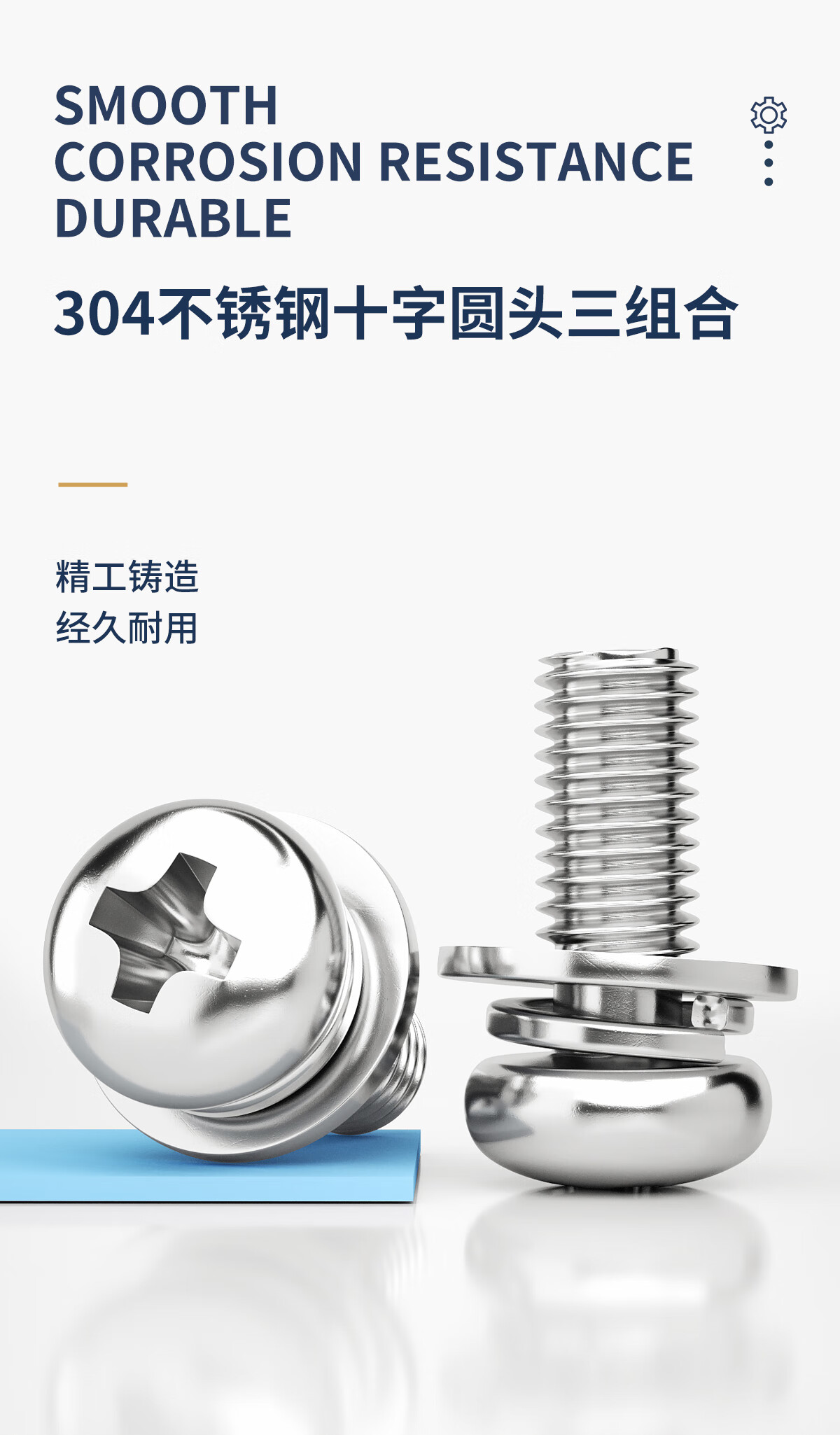 固万基304不锈钢十字圆头三组合螺丝GB9074.4盘头螺栓带垫组合M1.6M2-M8 M3x10x7[100套]